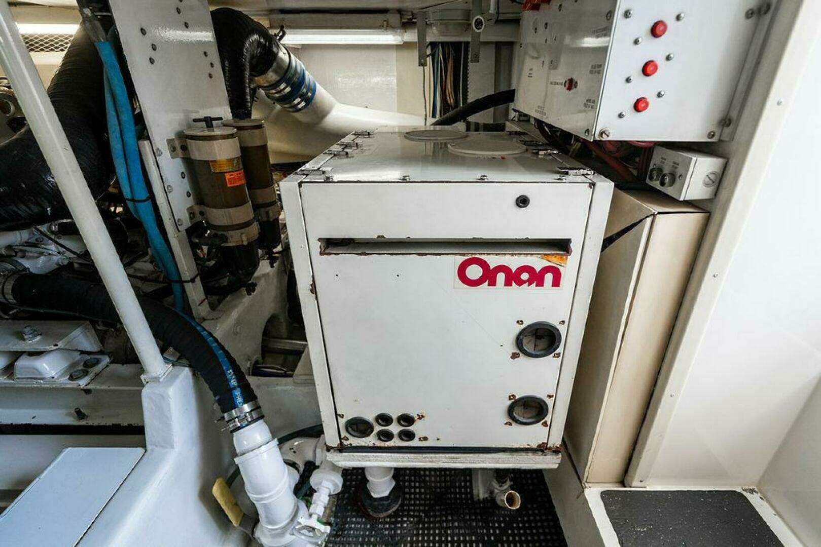 Additional equipment includes a Splendide washer/dryer, four Cruisair air conditioning units (Salon replaced in 2023), and a 20kw Onan generator with approximately 5,893 hours. The vessel has a fuel capacity of 1,250 gallons in two tanks and a freshwater capacity of 250 gallons. With an overall length of 55 feet 10 inches, a beam of 17 feet 4 inches, and a draft of 4 feet 10 inches, this yacht is Bahamas duty-paid.
