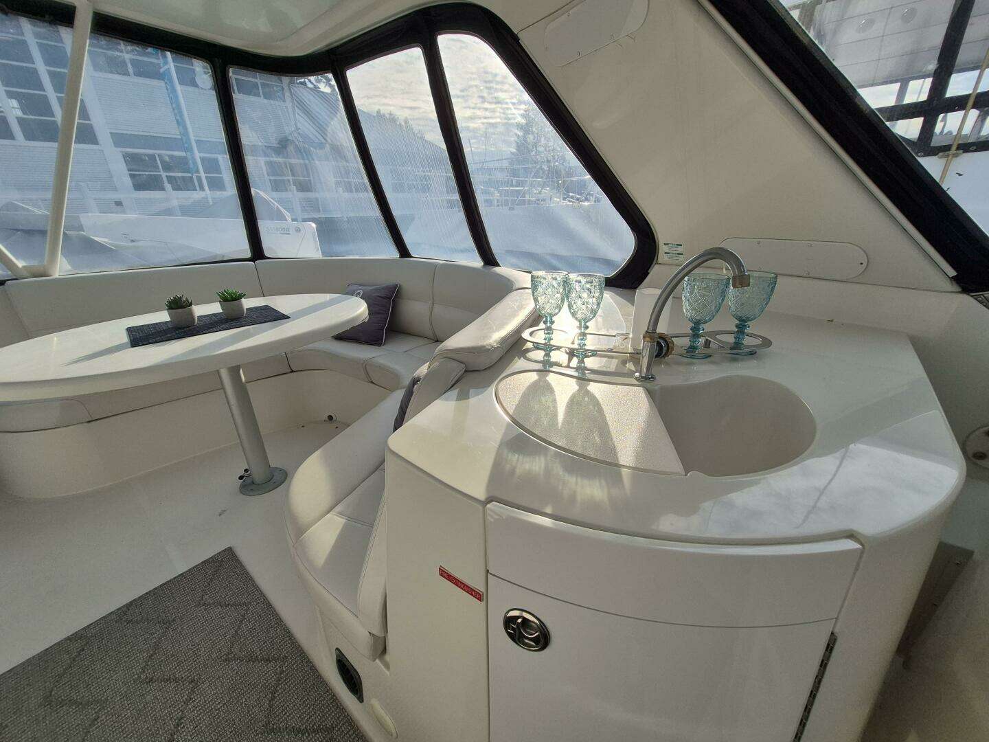 Wide side decks, a generous teak covered cockpit and large swim platform with stainless staples make movement aboard safe and effortless. A proven pilothouse design and thoughtful layout make the Carver 560 Voyager an excellent choice for coastal cruising, extended stays, or comfortable liveaboard living.