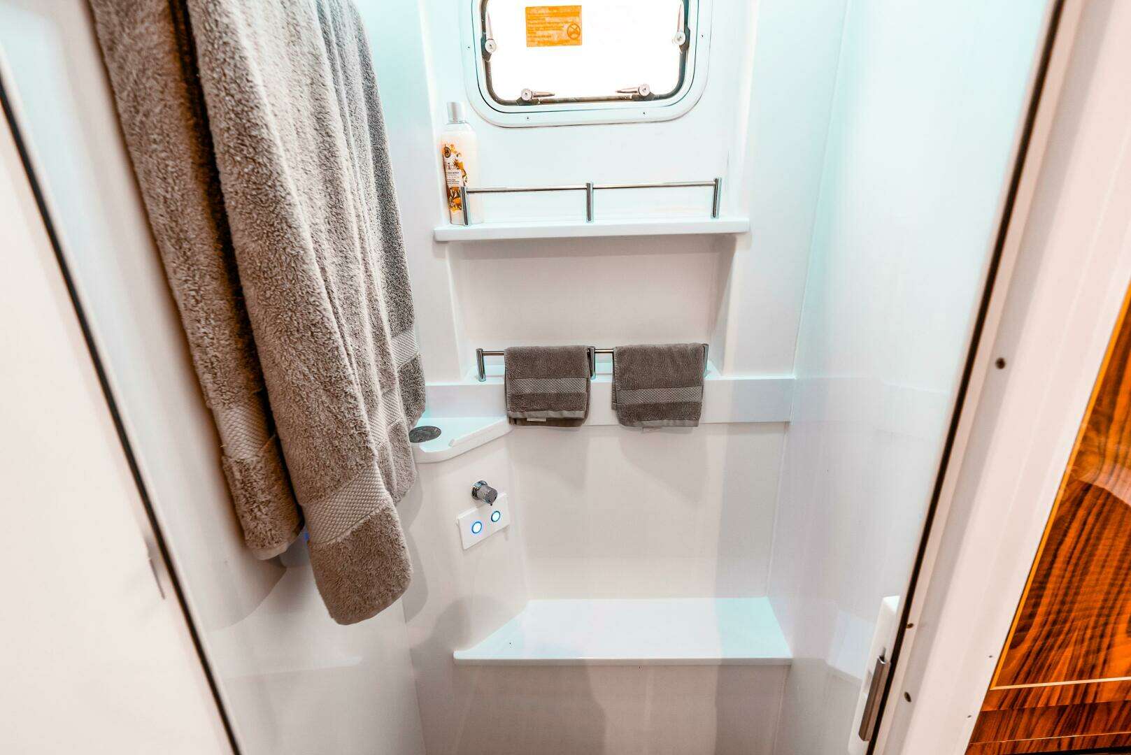 - Walk-In Machine Room – Dedicated space for generator, systems, and service access, giving owners and crew true yacht-level convenience and maintainability.