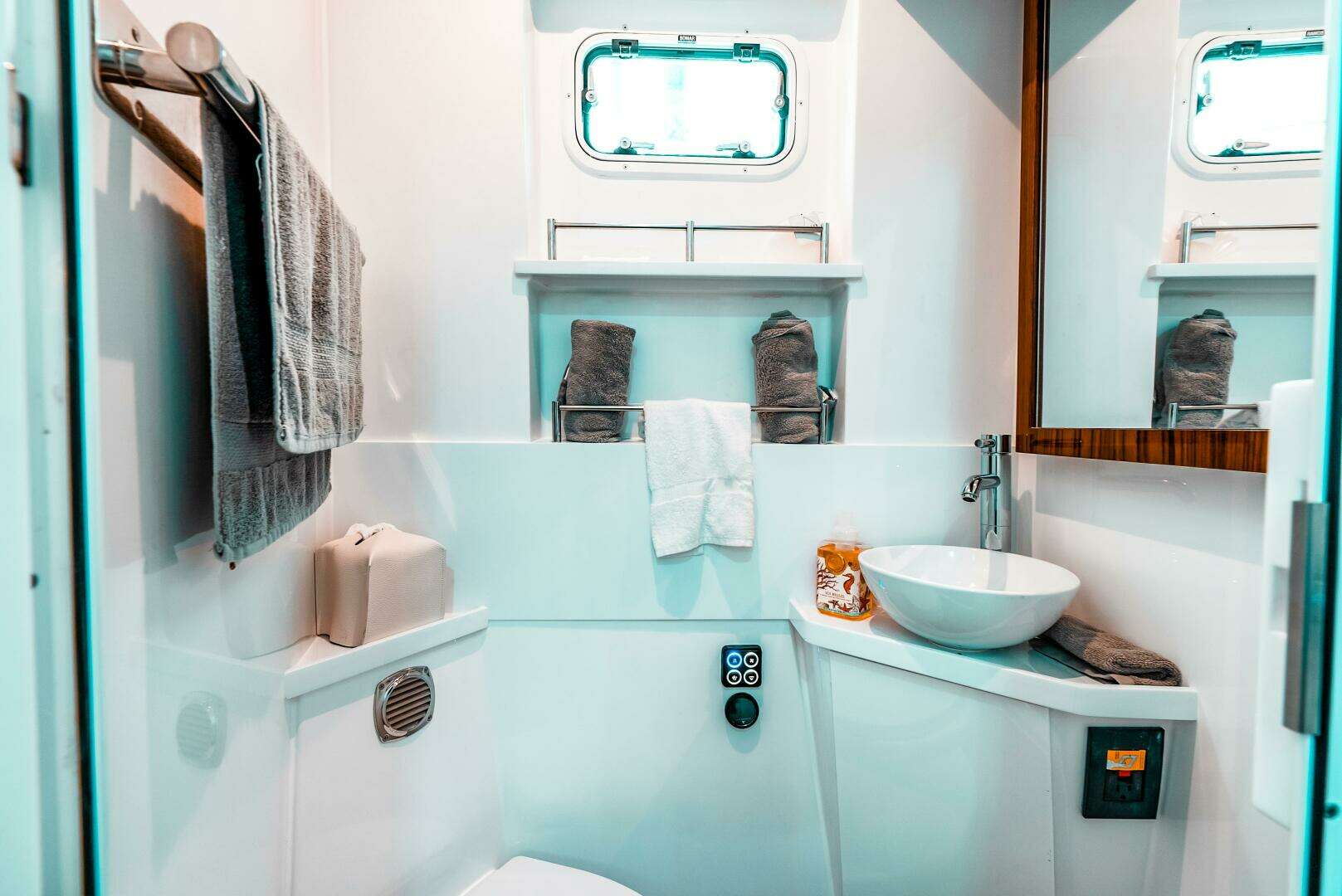 - Starboard side head with vanity vessel sink, hot/cold faucet