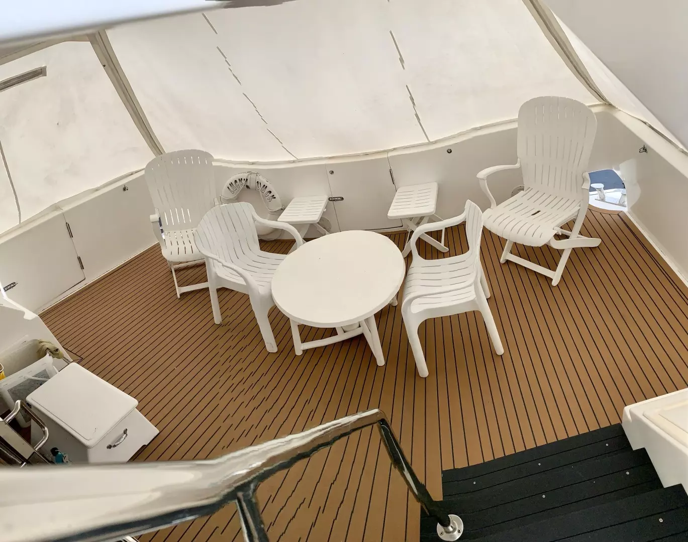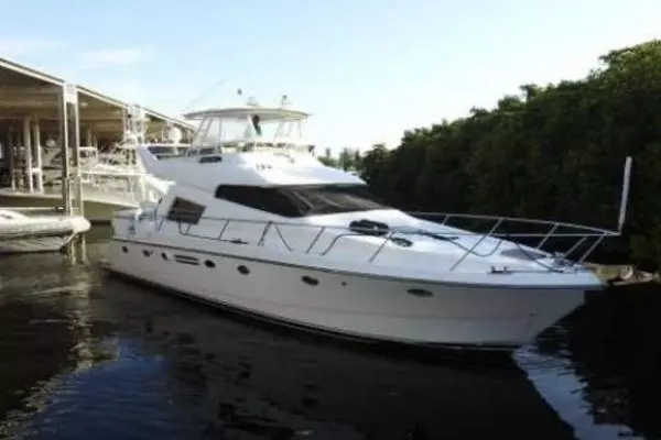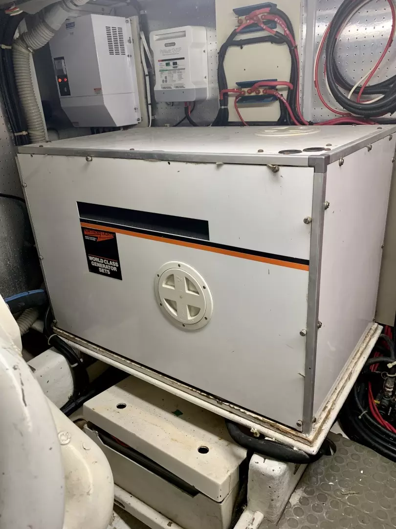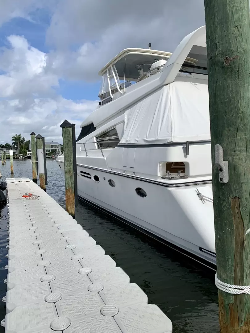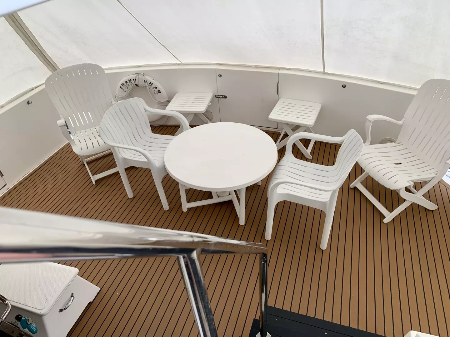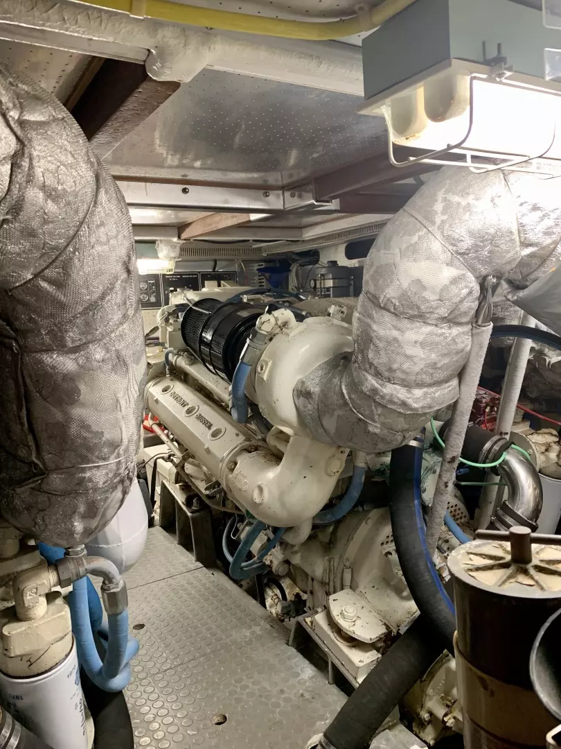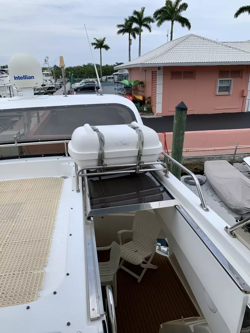 Lucky Duck features an oversized and easily accessible swim platform for great access to the water. When entering the vessel from shore you can't help but notice the brand new teak sole and the oversized cockpit area which is protected by an overhead bridge extension. You enter the large main salon through double glass doors and the flow od the room lends itself to a great entertainment area as well as a perfect place to relax after a day on the water. Forward to starboard is your lower helm complete with electronics and comfortable seating for that rainy day when you prefer to be indoors. To the port side and down a few steps is the well equipped galley offering all the conveniences of home. Forward you will find the Guest Staterooms, first with twin beds, ensuite head and shower. Forward of that is the VIP stateroom with Island Queen Berth and ensuite head and shower. The bright, large full beam master stateroom is aft with night tables on both sides. She has generous drawer space and hanging lockers and all the comforts you need for extended cruising. The Master is accessed by a staircase aft in the salon on the port side. East access to the large bridge is via a molded staircase from the aft deck. The captain will have comfortable seating, electronics at the bridge helm and outstanding visibility. Lucky Duck is a great performer and together with her bow thruster she is a pleasure to run.