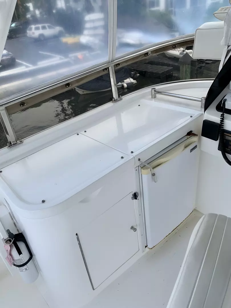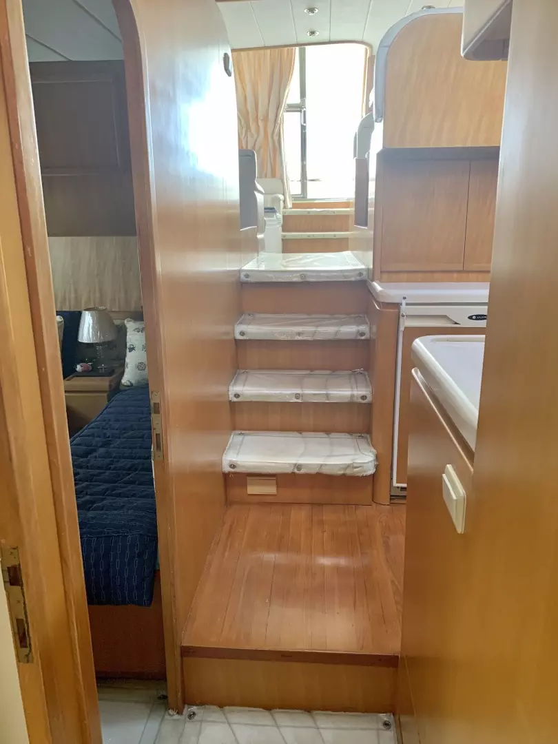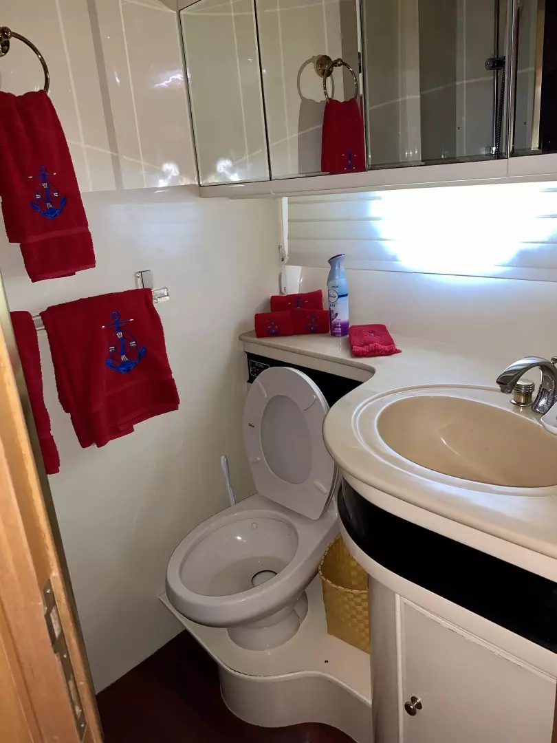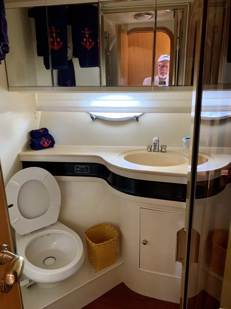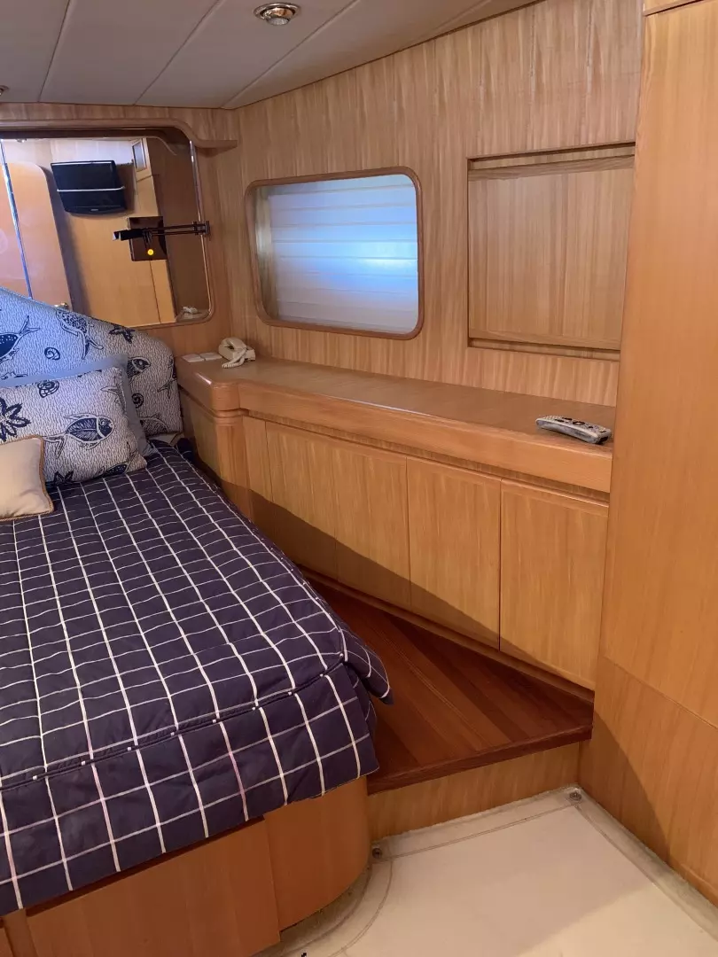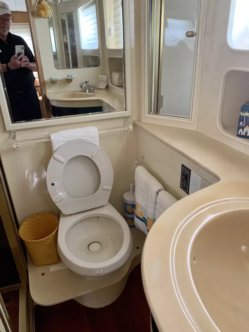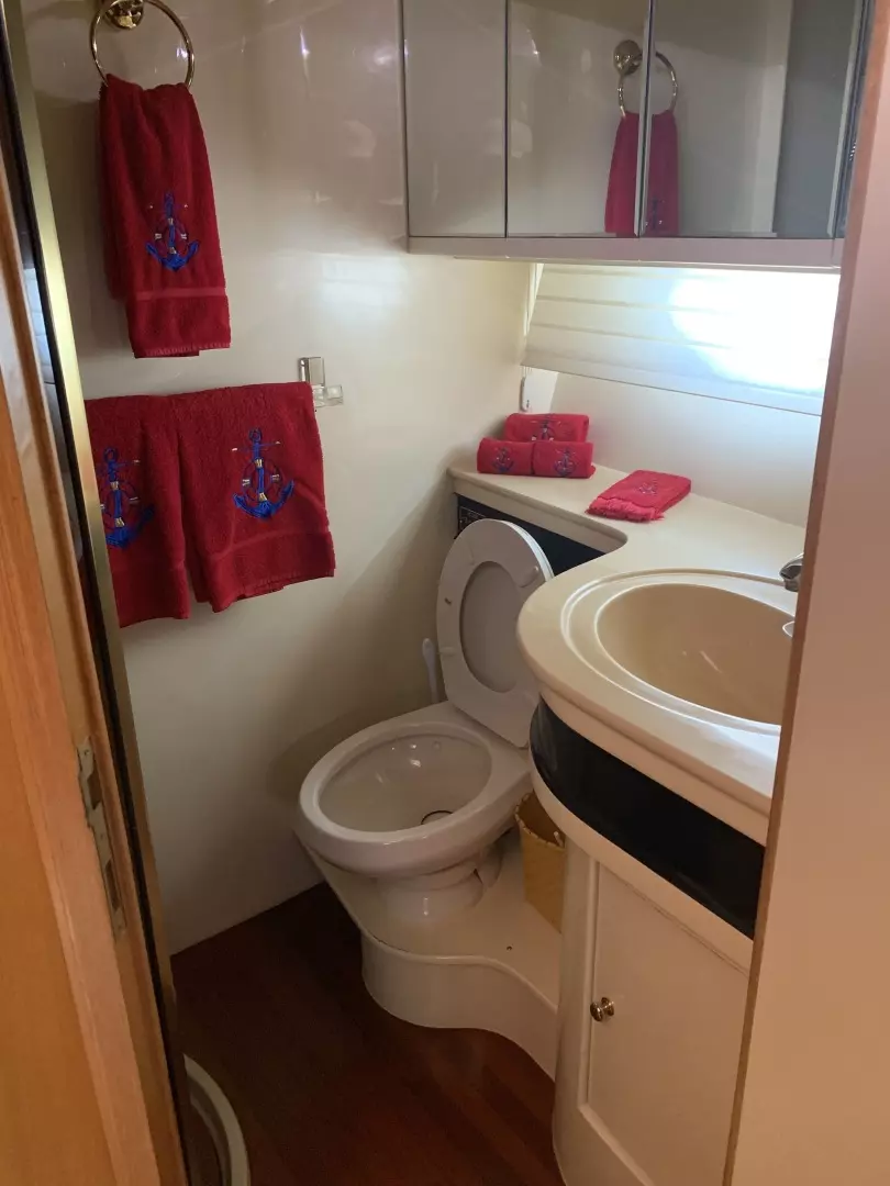 Lucky Duck features an oversized and easily accessible swim platform for great access to the water. When entering the vessel from shore you can't help but notice the brand new teak sole and the oversized cockpit area which is protected by an overhead bridge extension. You enter the large main salon through double glass doors and the flow od the room lends itself to a great entertainment area as well as a perfect place to relax after a day on the water. Forward to starboard is your lower helm complete with electronics and comfortable seating for that rainy day when you prefer to be indoors. To the port side and down a few steps is the well equipped galley offering all the conveniences of home. Forward you will find the Guest Staterooms, first with twin beds, ensuite head and shower. Forward of that is the VIP stateroom with Island Queen Berth and ensuite head and shower. The bright, large full beam master stateroom is aft with night tables on both sides. She has generous drawer space and hanging lockers and all the comforts you need for extended cruising. The Master is accessed by a staircase aft in the salon on the port side. East access to the large bridge is via a molded staircase from the aft deck. The captain will have comfortable seating, electronics at the bridge helm and outstanding visibility. Lucky Duck is a great performer and together with her bow thruster she is a pleasure to run.