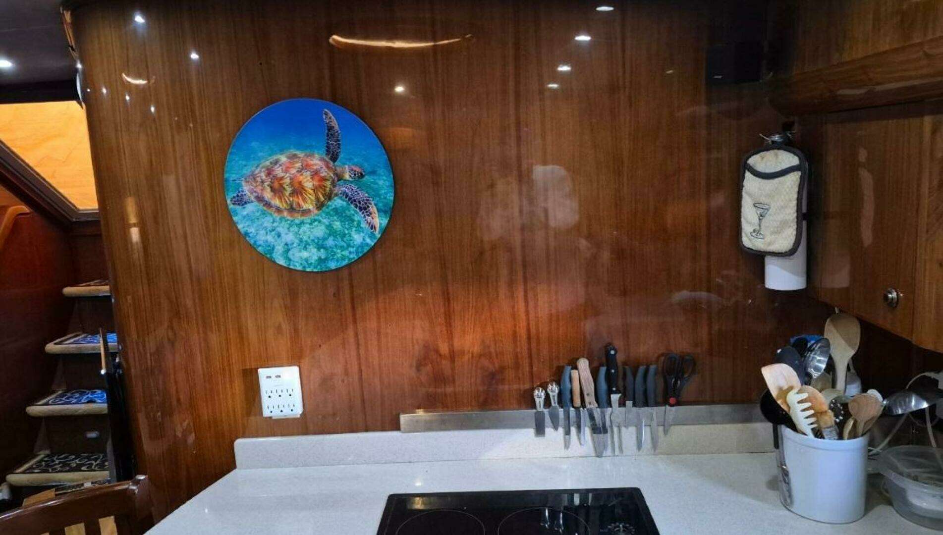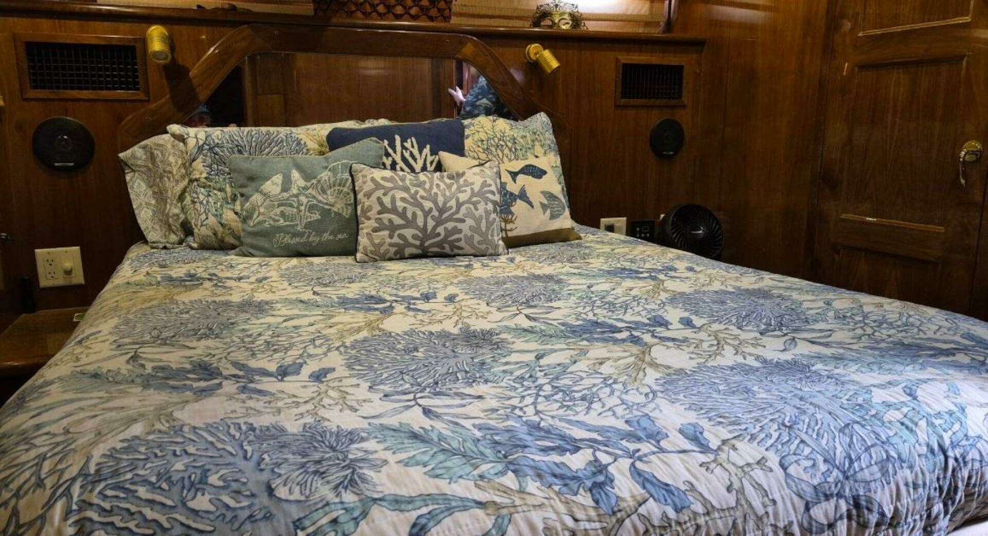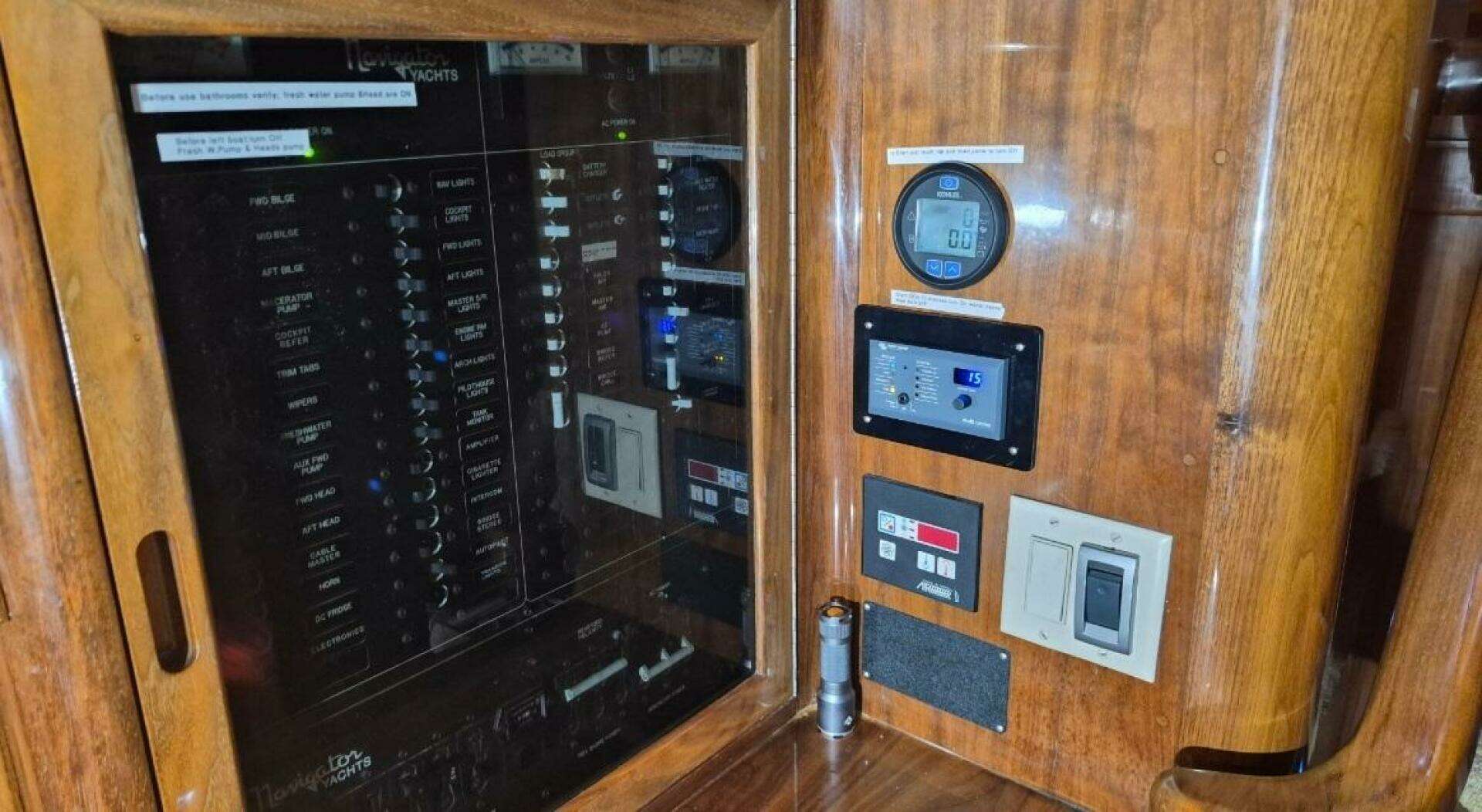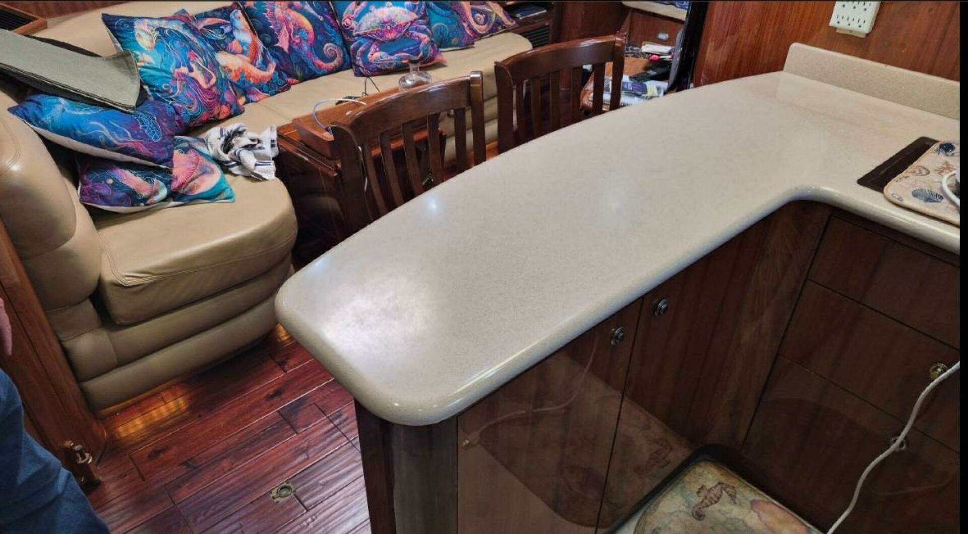 The Navigator Californian 56 Veneti is a luxurious , American built motor yacht from Navigator Yachts, known for it's European styling, quality construction spacious interior with high gloss walnut, and excellent cruising performance, featuring two staterooms with ensuite heads, a port side galley with starboard salon.