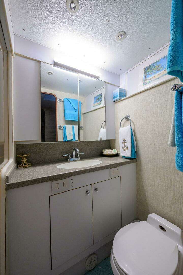 Member’s Only is a classic example of the highly successful Ocean Yachts 56 Super Sportfish, a model respected for her wide beam, generous interior volume, and reliable offshore performance. Powered by twin MAN 1050 HP diesel engines, she delivers strong cruising capability while maintaining the comfort and layout that Ocean Yachts is known for.