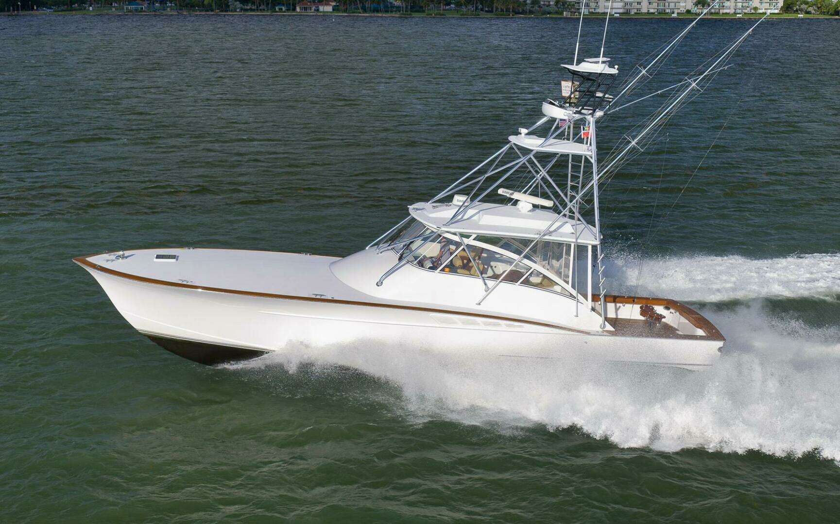One-of-a-kind 56’ 2015 Ritchie Howell Custom Express is one of the largest express of its kind. Recent paint and faux teak, low hours, great engines, and meticulously maintained. Turn-key and tournament ready.