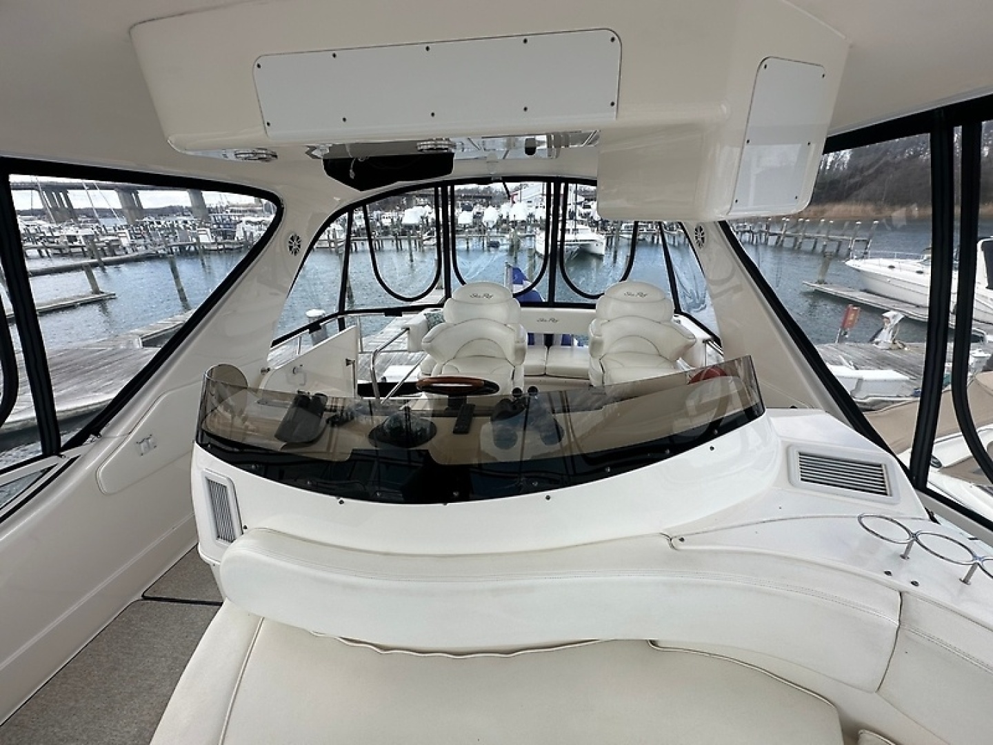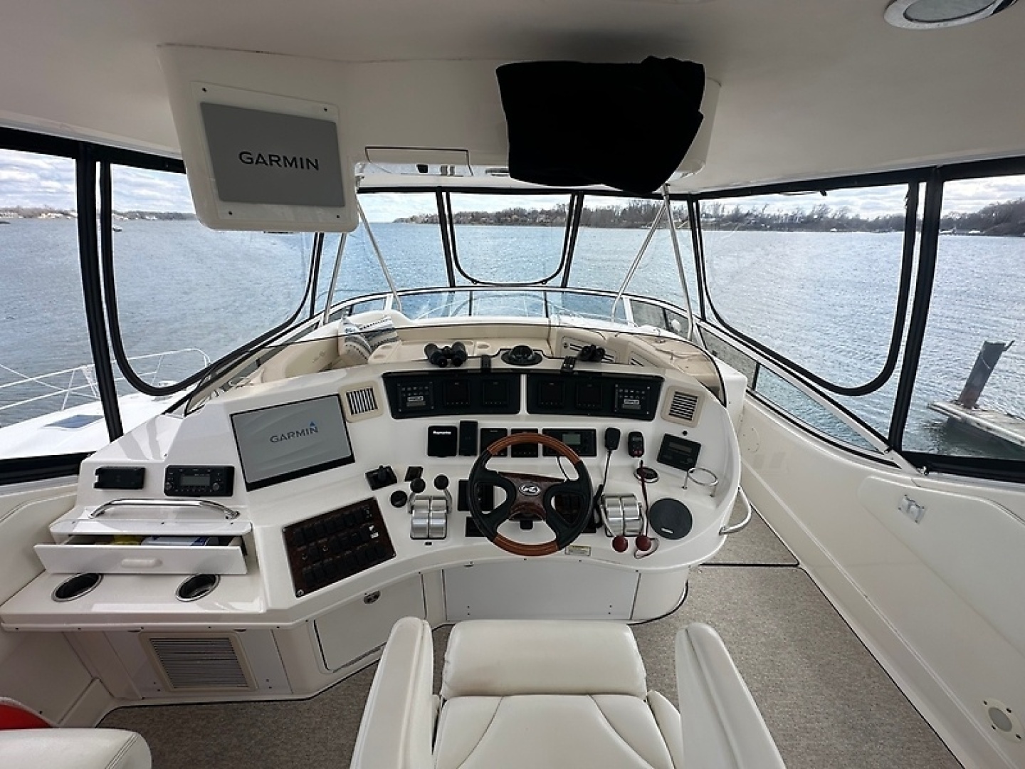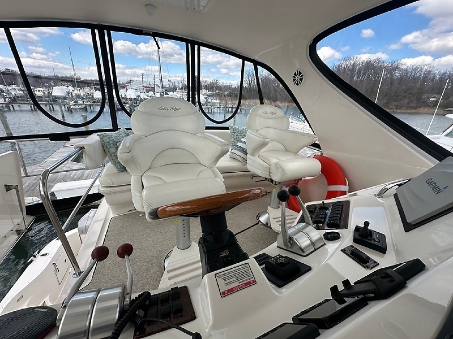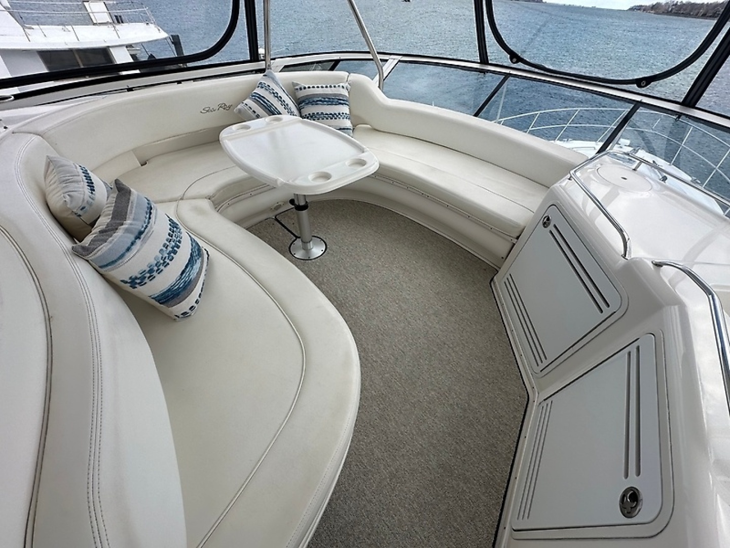 '4 FROGS' is a beautiful 2002 Sea Ray 560 Sedan Bridge offering the perfect blend of luxury cruising, spacious accommodations, and proven diesel performance. Powered by twin Caterpillar 3406E engines rated at 776 HP each with approximately 2,300 hours. The sought after galley up layout provides exceptional visibility, a bright salon, and an ideal platform for entertaining. With three staterooms and two heads, this yacht comfortably accommodates family and guests for extended cruising.