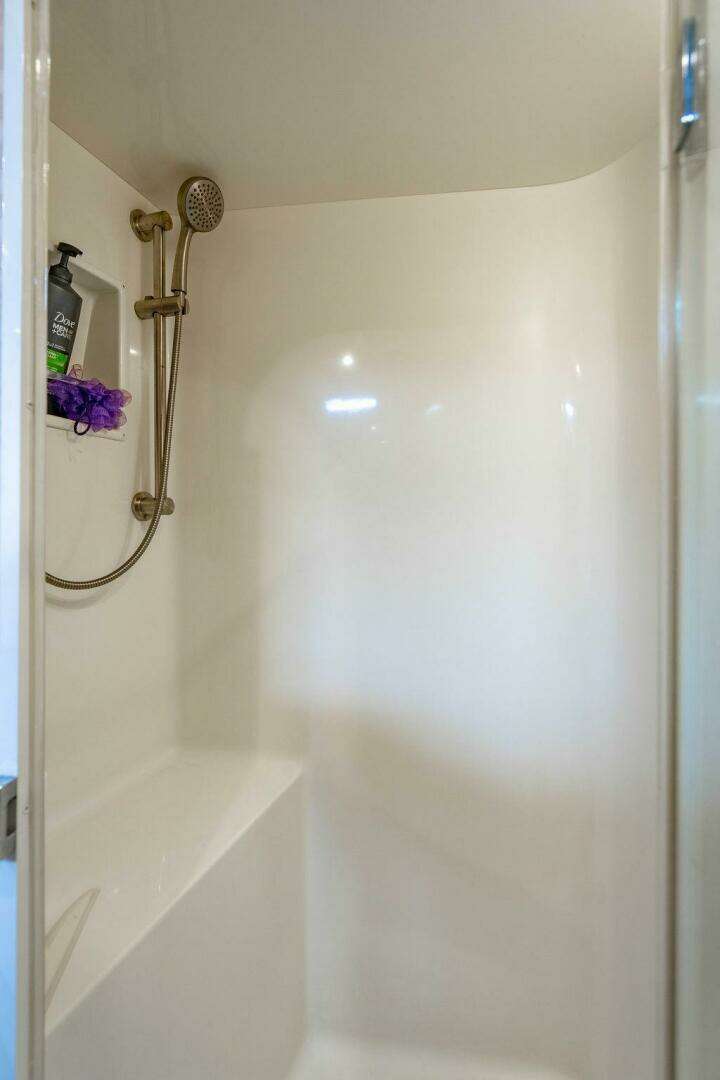 - Updated brushed nickel shower fixtures replacing dated gold fixtures