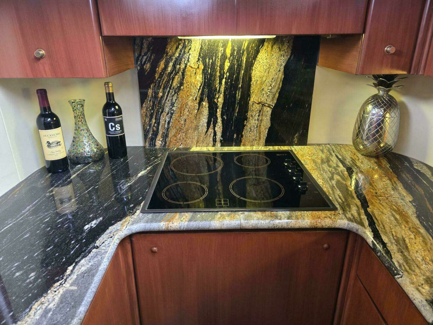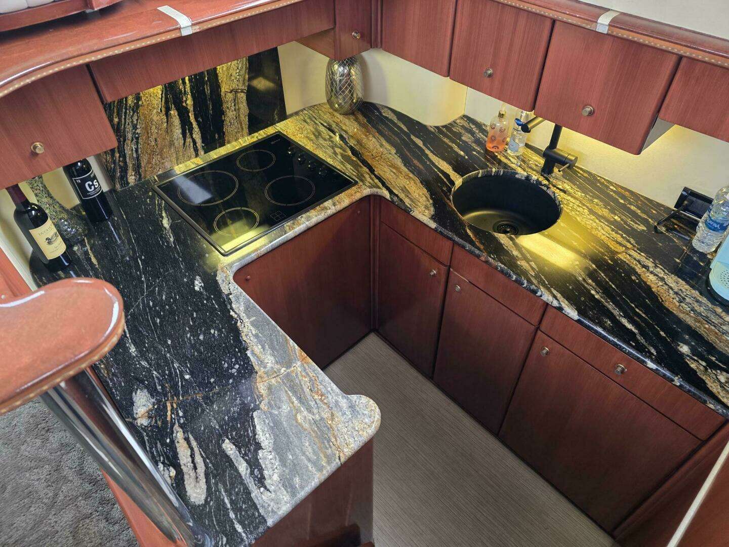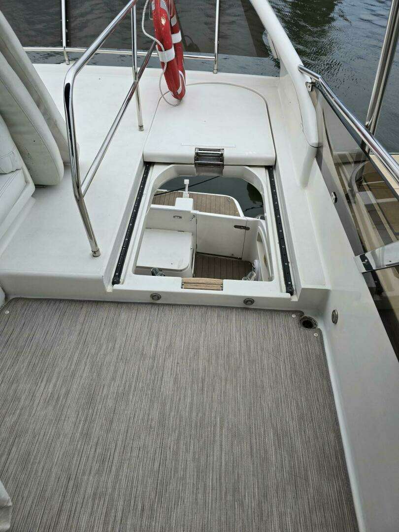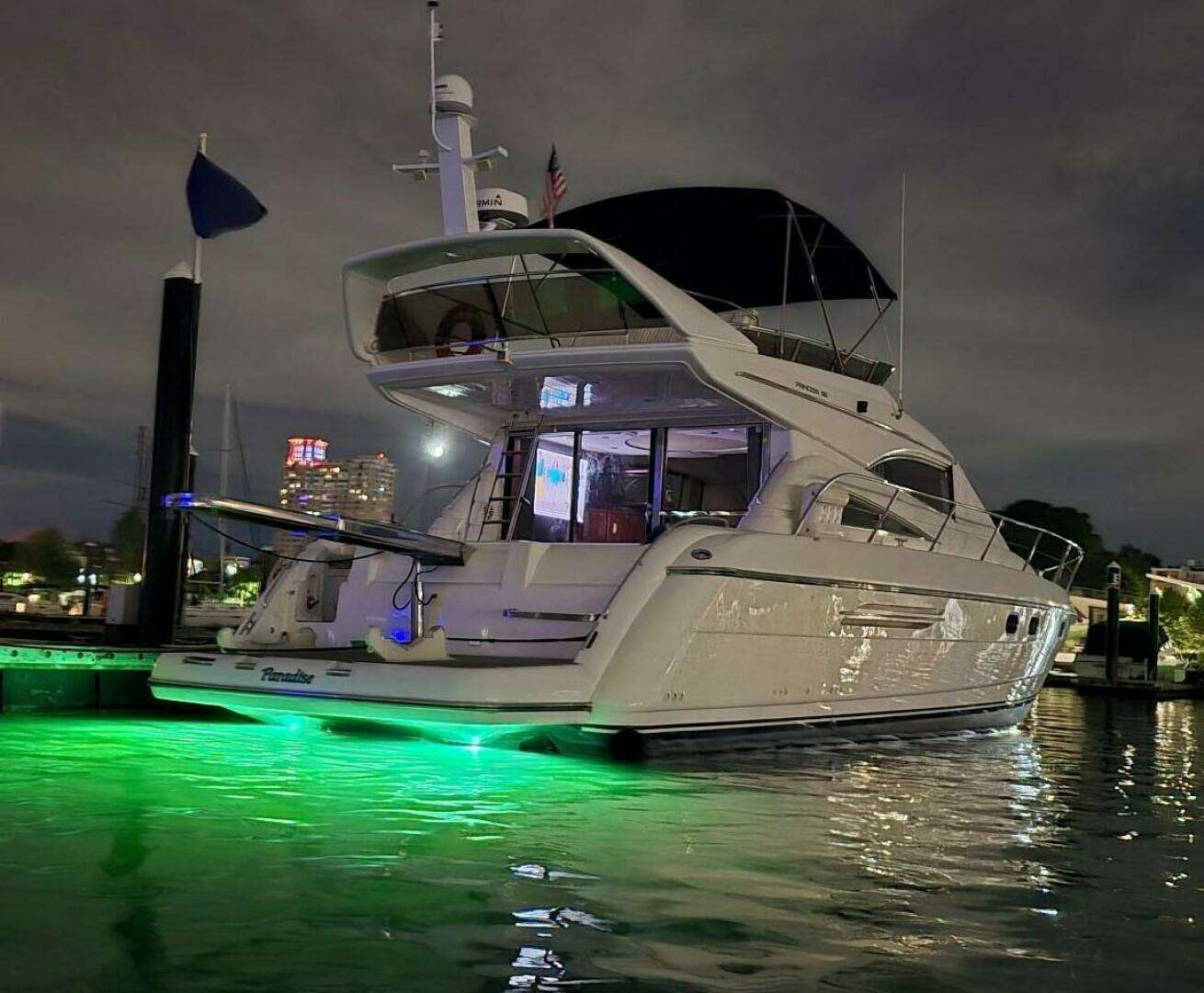 The boat has Garmin electronics at the helm and on the flybridge, an updated audio system with Fusion head unit and JL Audio amps and speakers. The seller has also added new underwater lights. Other upgrades include: