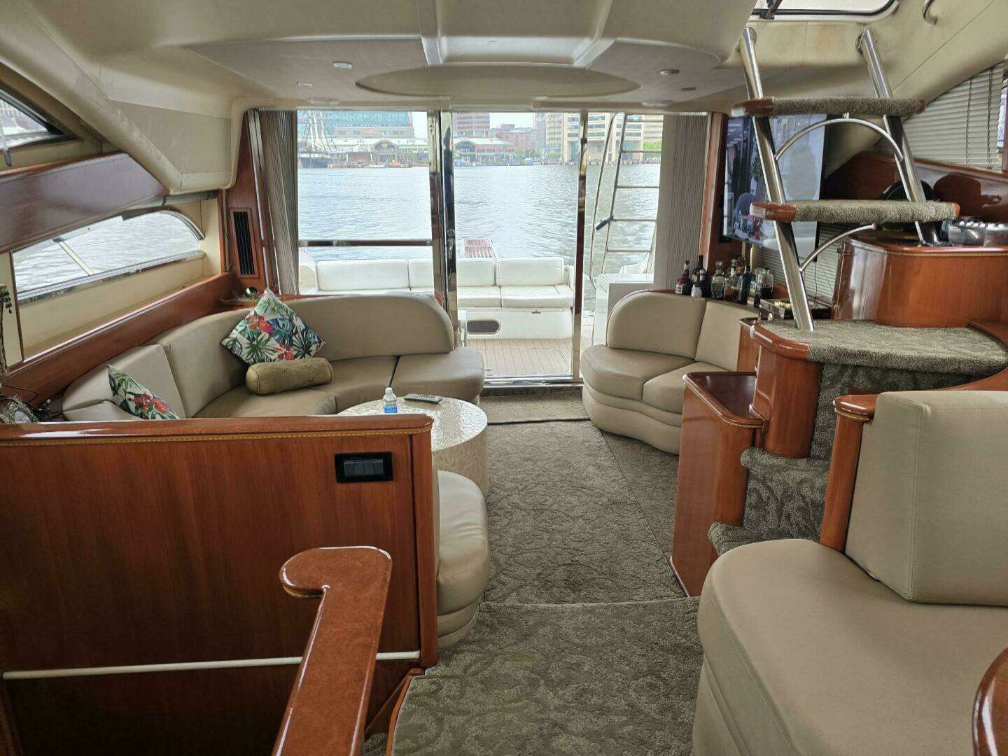 This 1999 Viking Princess 56 Sport Cruiser, "Paradise", is a well-maintained and upgraded cruiser that is ready for a new home. Having been kept in the mostly fresh water of the Upper Chesapeake for the last 10+ years, this boat is clean and features some nice-to-have upgrades. The boat features a 3 Stateroom/2 Head layout with a Master Cabin, VIP Cabin, and Twin-Bunk Cabin. The salon features a U-Shaped settee to starboard with love seat, bar with wine fridge, TV and storage to port. Stepping forward, the galley is on the starboard side with a 4-Burner cooktop and updated Granite countertops. Down the companionway and forward is the Master Stateroom and head, to port is the VIP Stateroom, and to starboard is the twin bunkroom.