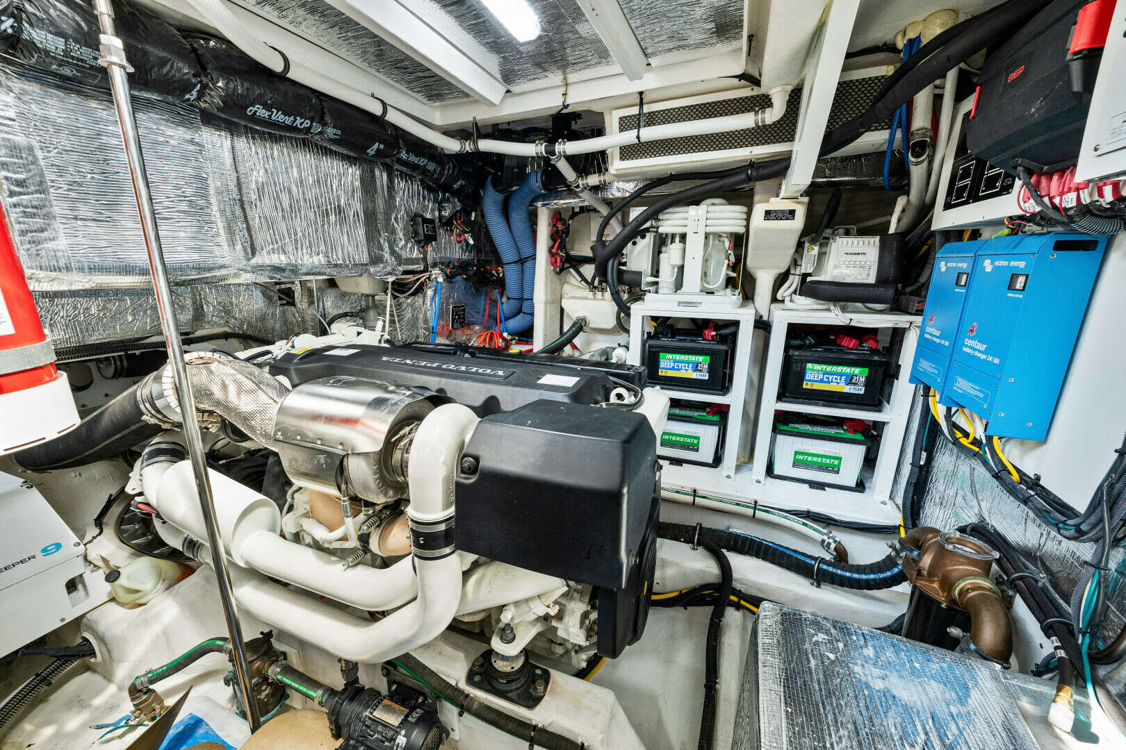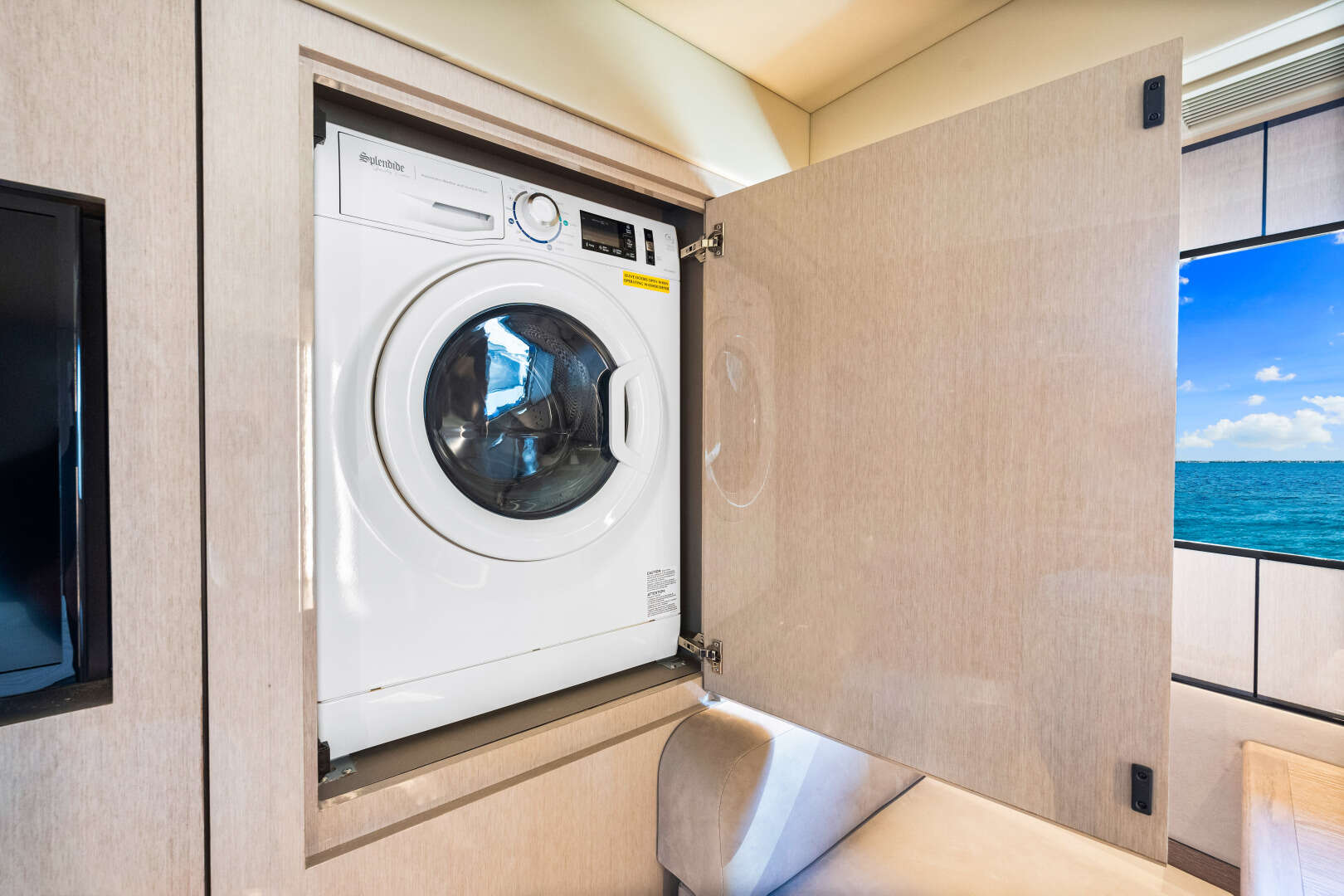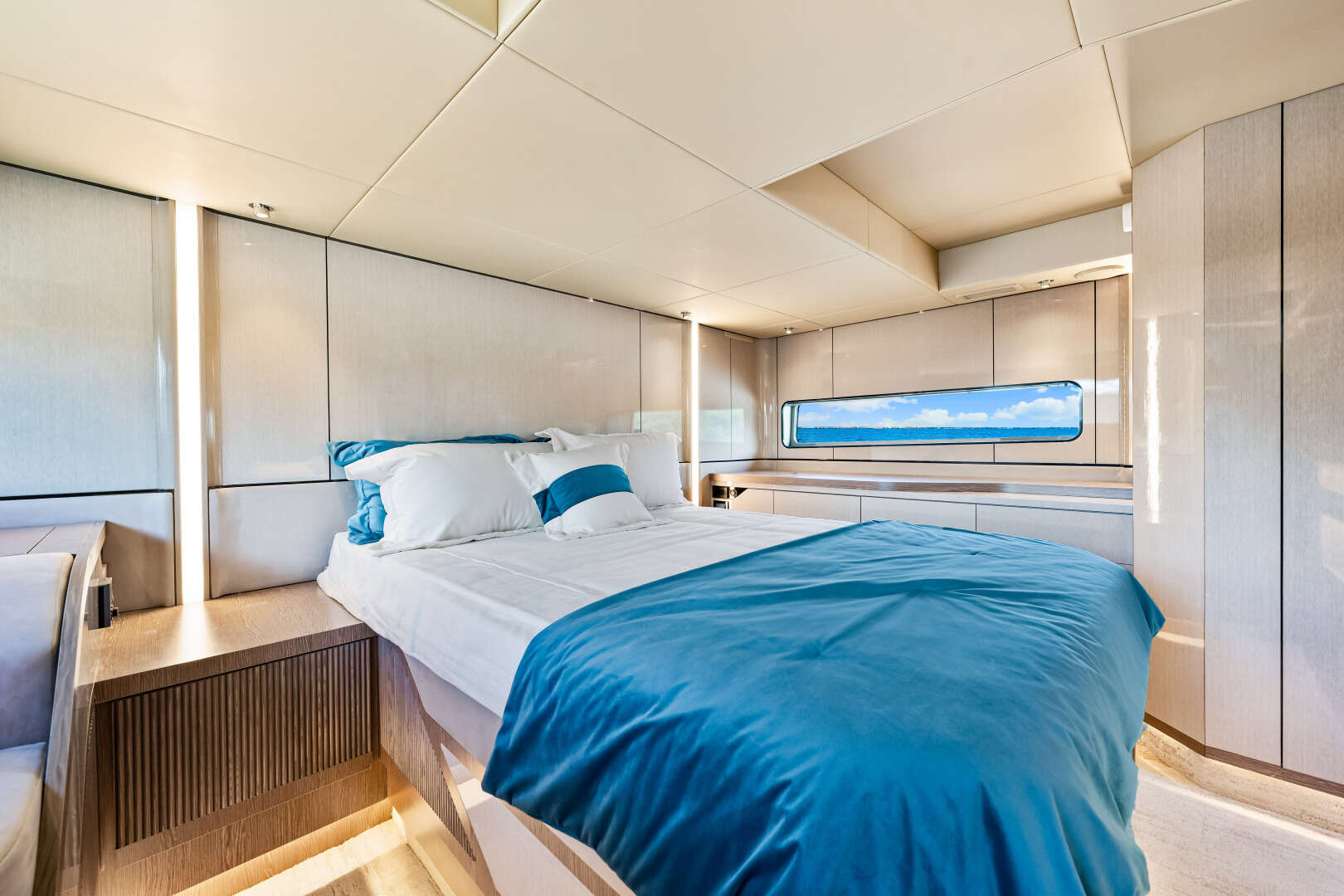 Powered by two VOLVO D11 950 IPS engines providing a total power of 725 Hp, this masterpiece effortlessly combines power and precision for an exhilarating cruising experience. Whether cutting through waves or gliding along the coastline, the performance of the 57 Fly is unparalleled.