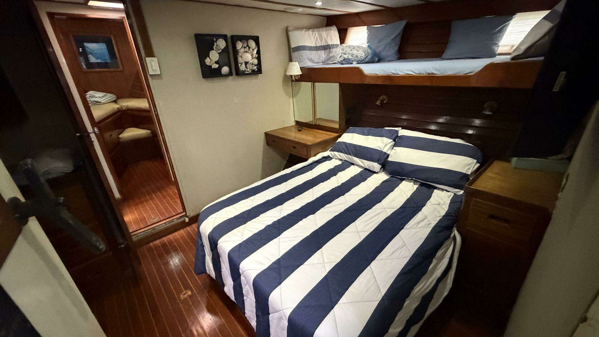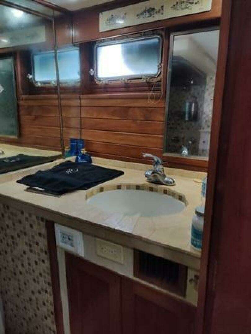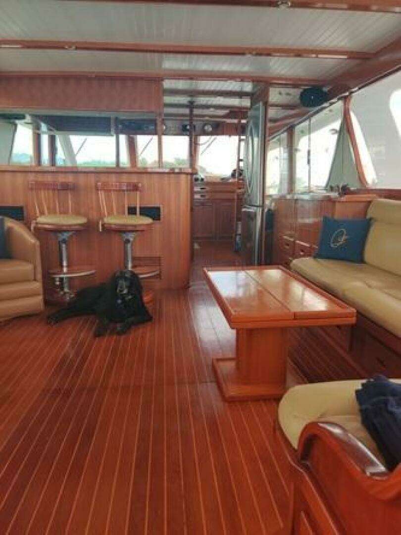 Powered by twin Volvo Penta TAMD61A diesels (repowered 1995) and supported by two generators, Queen Jeannine delivers reliable performance and onboard autonomy. She features five Webasto air conditioning units with heat, two water heaters, and updated 120/240V AC systems with isolation transformers and new main breakers.