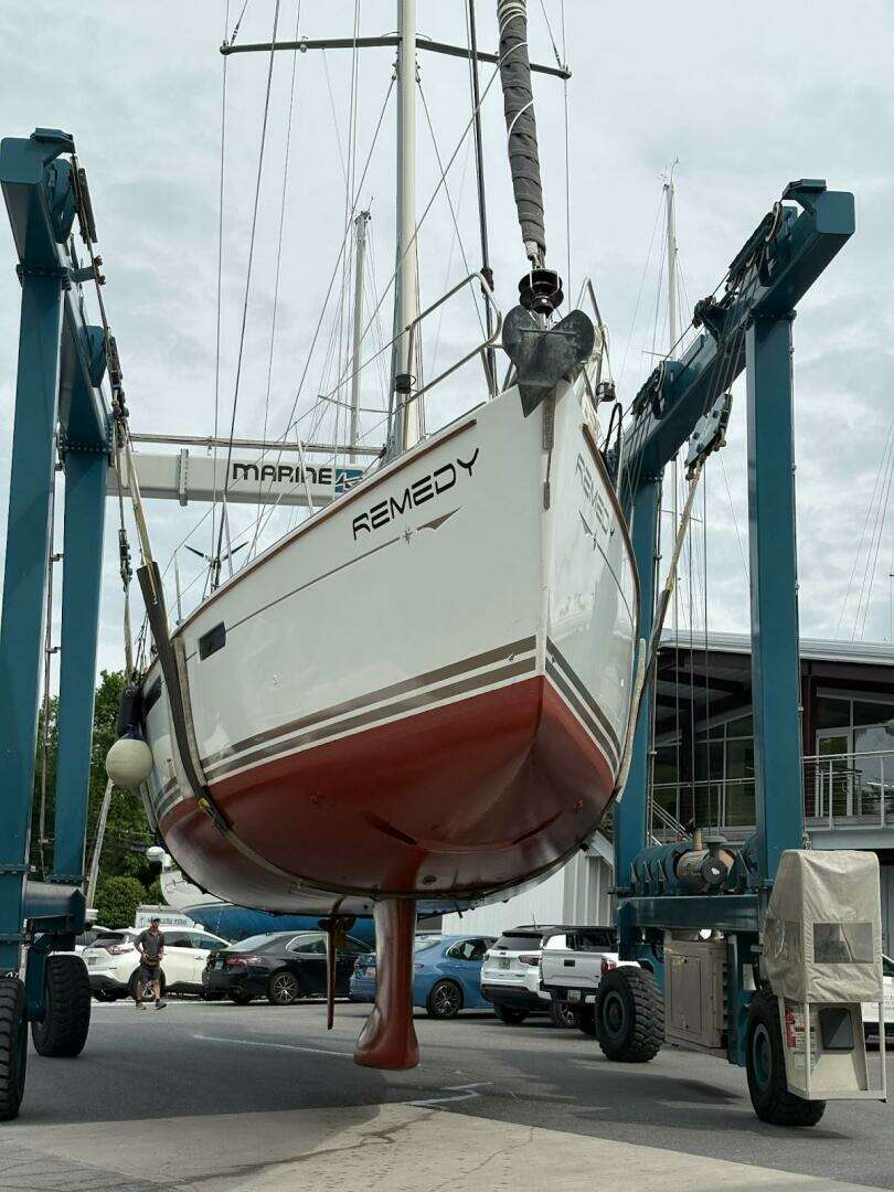 Remedy’s hull received a full strip to gelcoat, barrier coat, and new antifouling system.