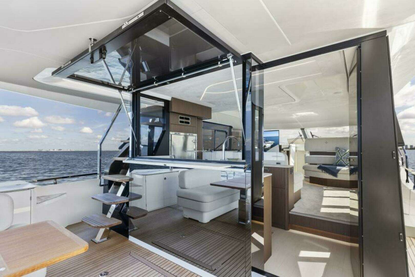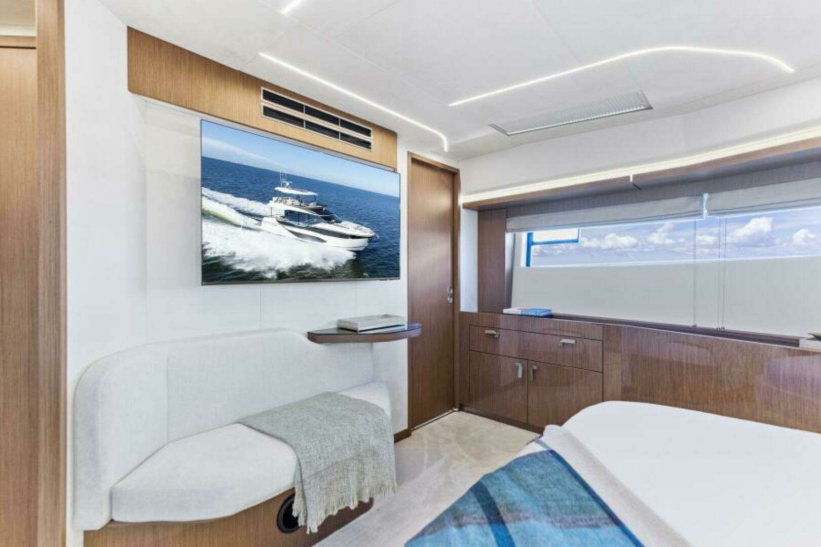 - Inside, the Prestige F5.7 boasts a spacious and elegantly appointed interior.