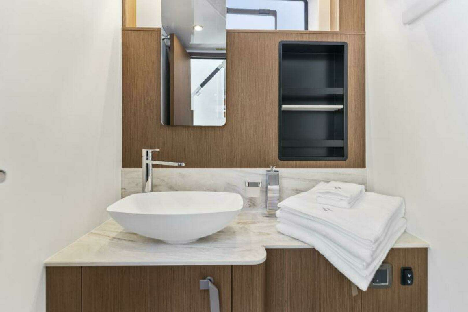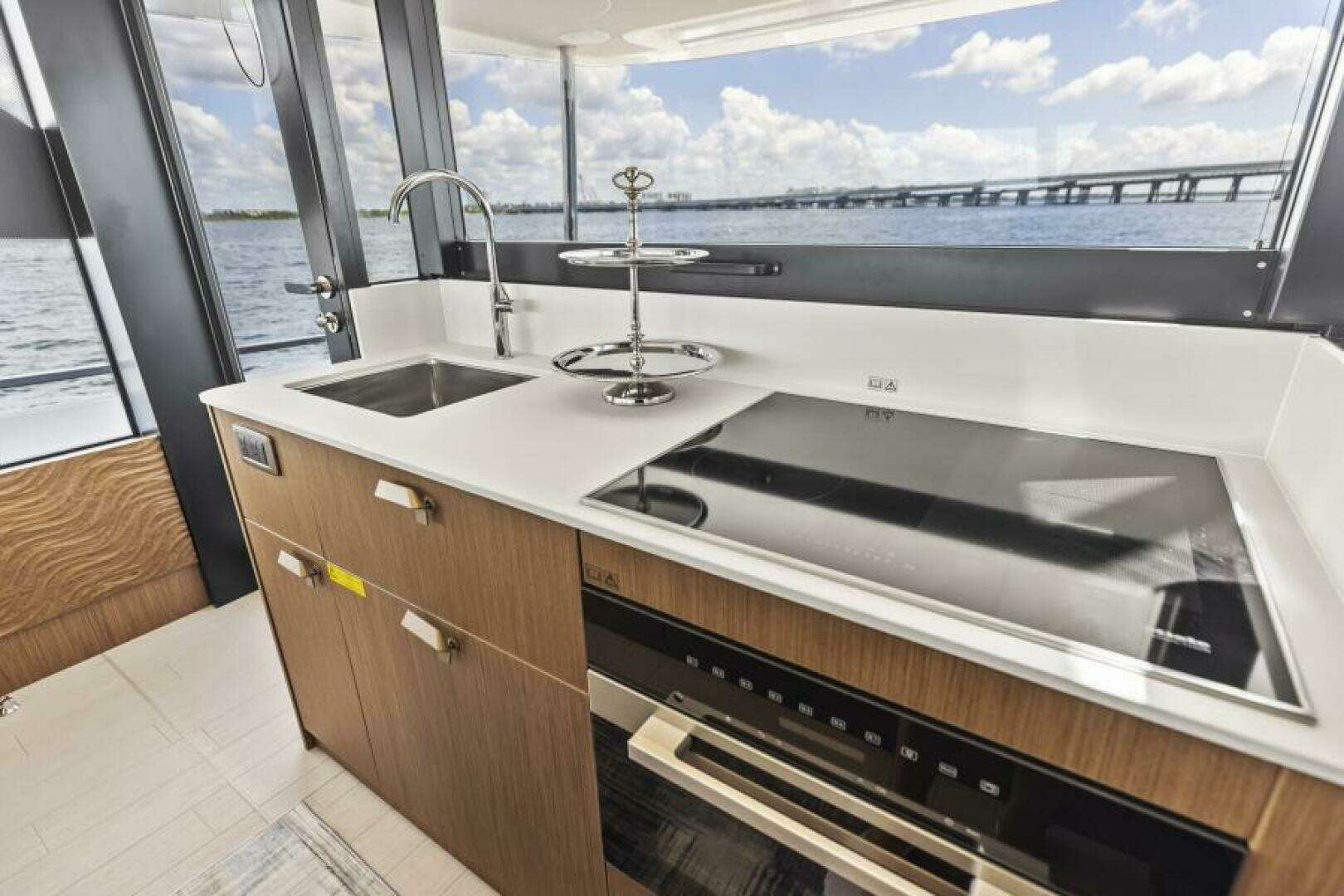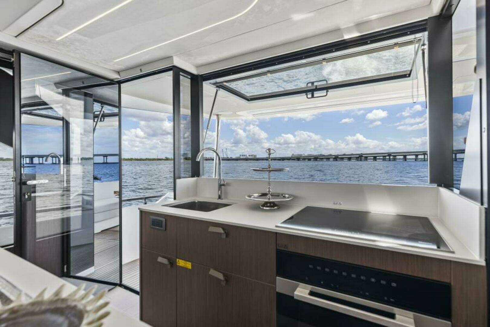 - A gourmet galley with premium appliances and a dining area provides an excellent space for onboard dining experiences.