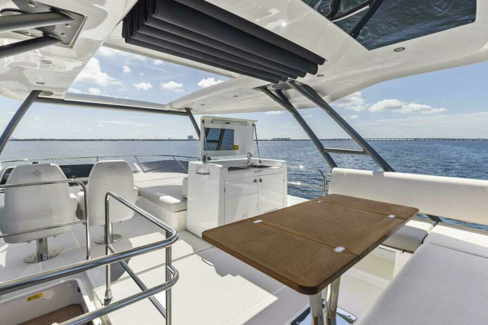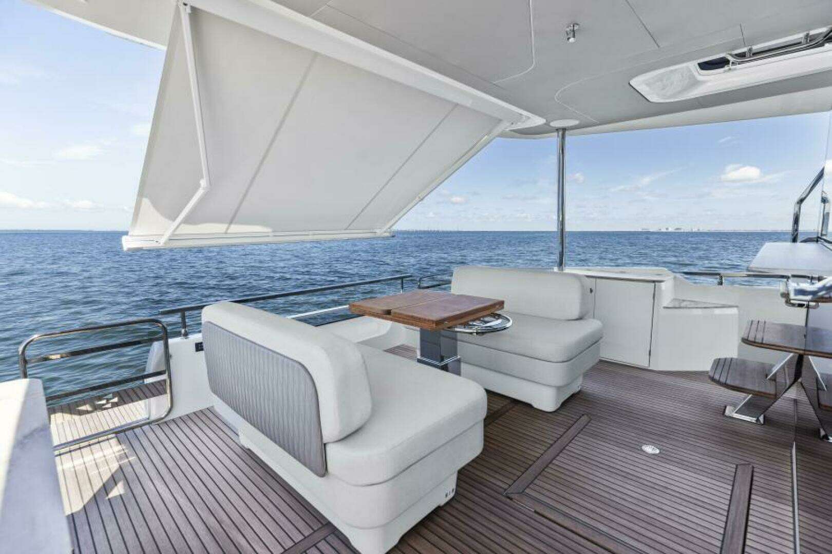 - Outdoor spaces include a spacious aft deck with seating and dining areas, perfect for alfresco dining and socializing.