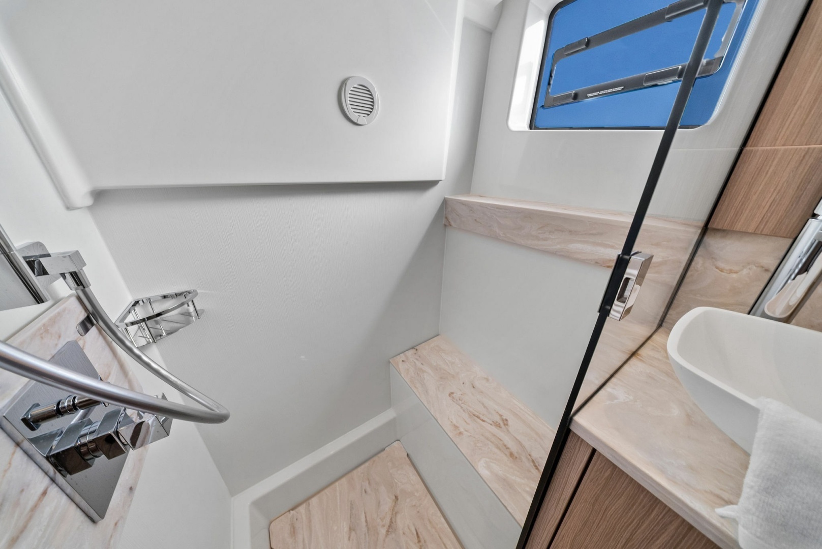 - Freshwater/saltwater wash down system in cockpit and anchor locker with dedicated pump