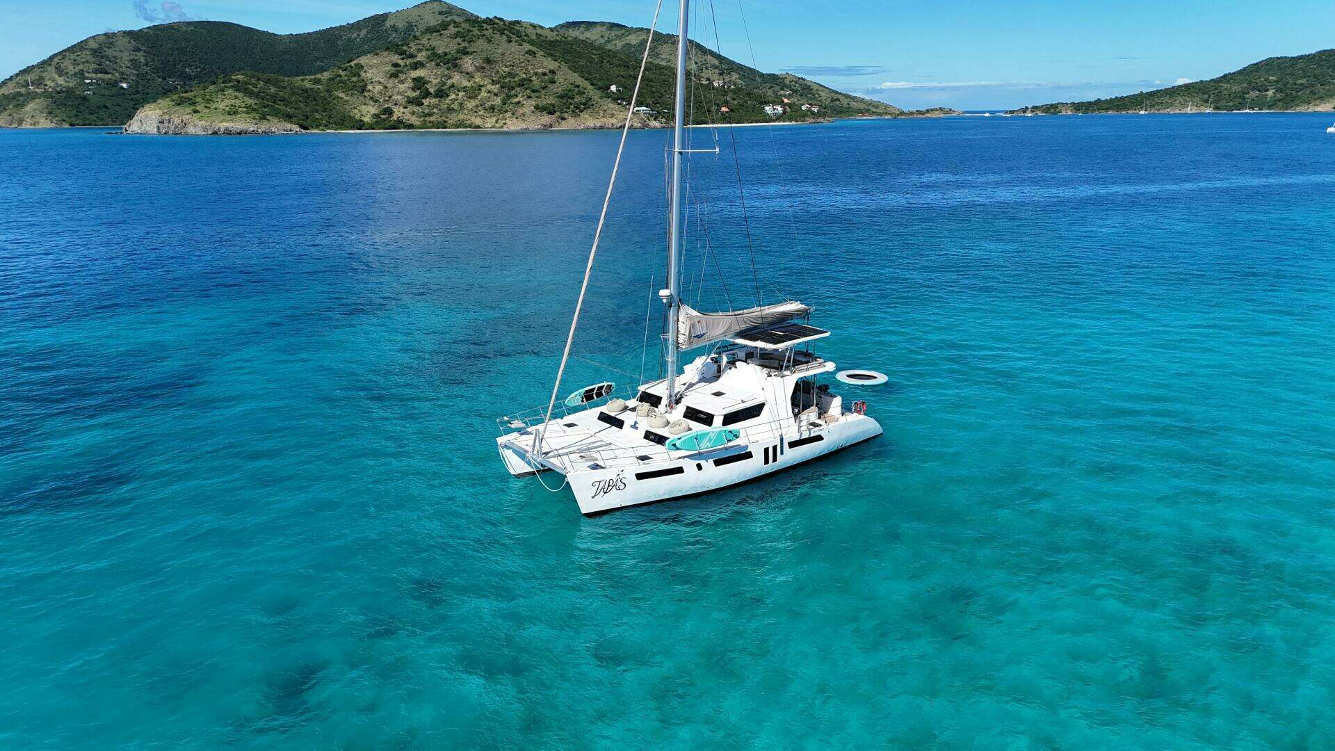 Royal Cape 570 "TAPAS" offers a rare opportunity to own a catamaran of distinguished pedigree. Ordered new by her current owner, who was deeply involved in the build process, *Tapas* reflects meticulous craftsmanship at every stage. The owner personally crewed her maiden voyage from South Africa to Florida and then back to the Virgin Islands after outfitting here for charter, ensuring unmatched attention to detail. With an impeccable charter reputation in the Virgin Islands, "TAPAS" is not only a luxurious family yacht but also a profitable charter asset, earning up to circa $50,000 per week during peak holidays, making her an ideal blend of leisure and investment.