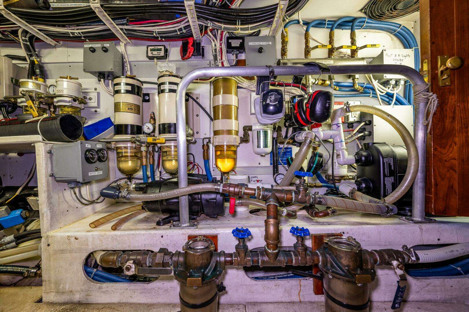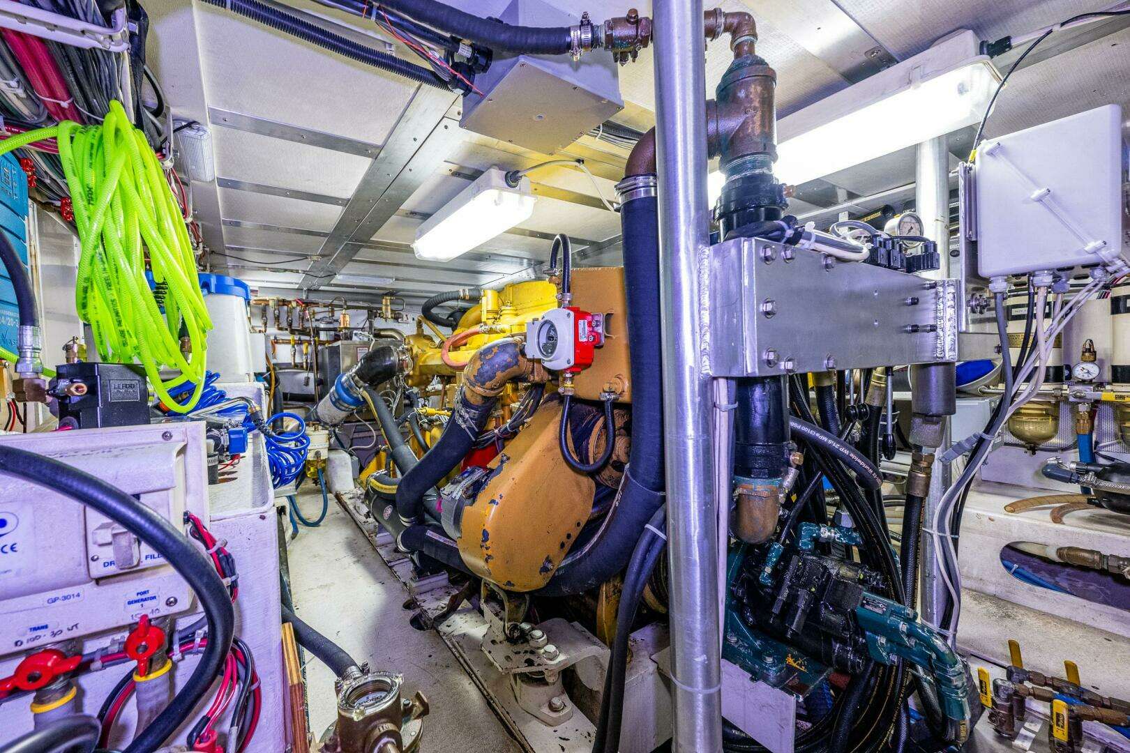 The well appointed Engine Room is located aft of the forward guest cabins. The engine room boasts ample room to preform maintenance on all systems.