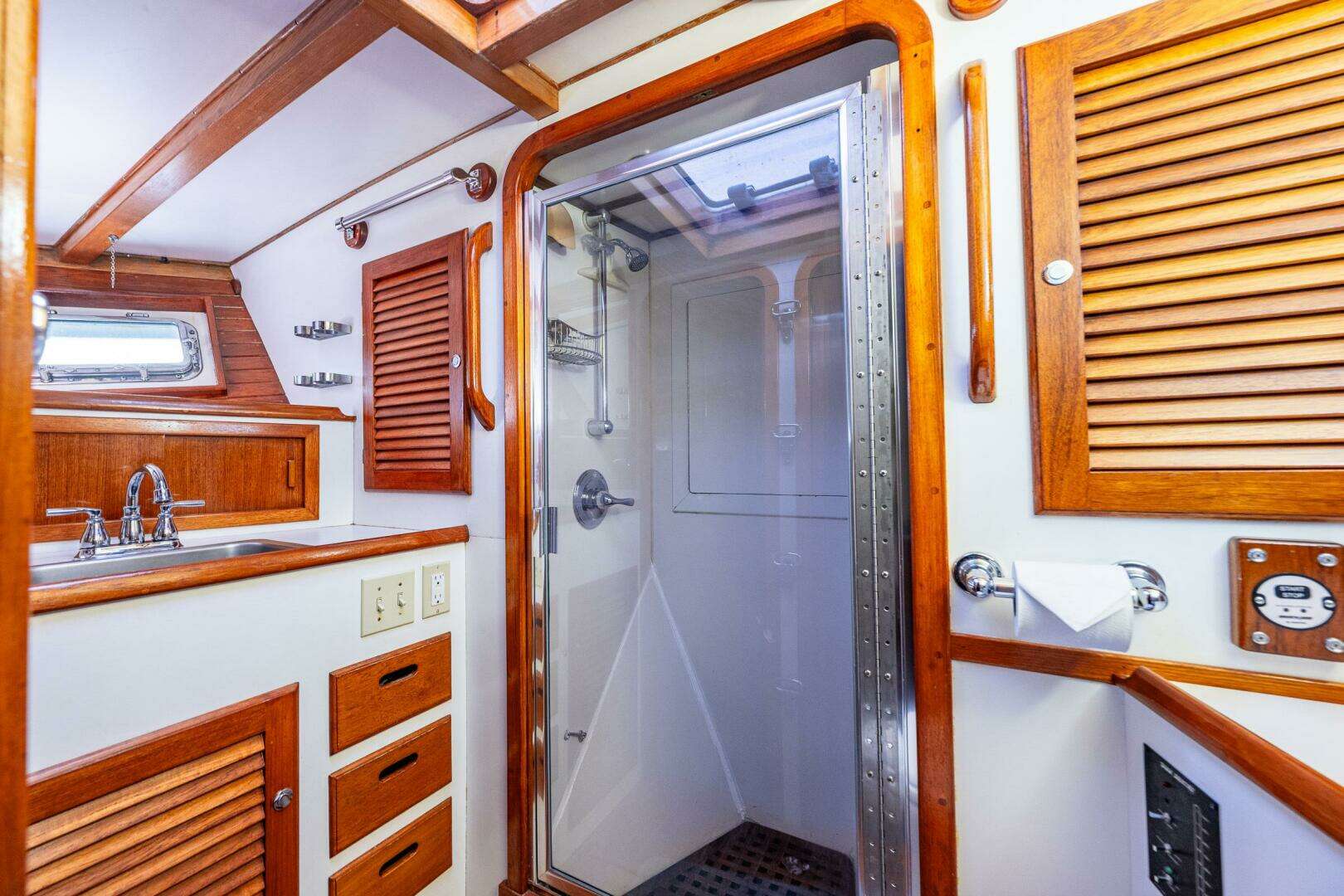 The hull is overbuilt for expedition cruising with a hull thickness of 3" from Keel to waterline. This vessel has been meticulously cared for and maintained, which shows as you step on board! She has done 2 trans-Atlantic crossings and several Kodiak, AK to Washington passages. She is a proven seaworthy vessel that can maintain speed in up to 8' seas!
