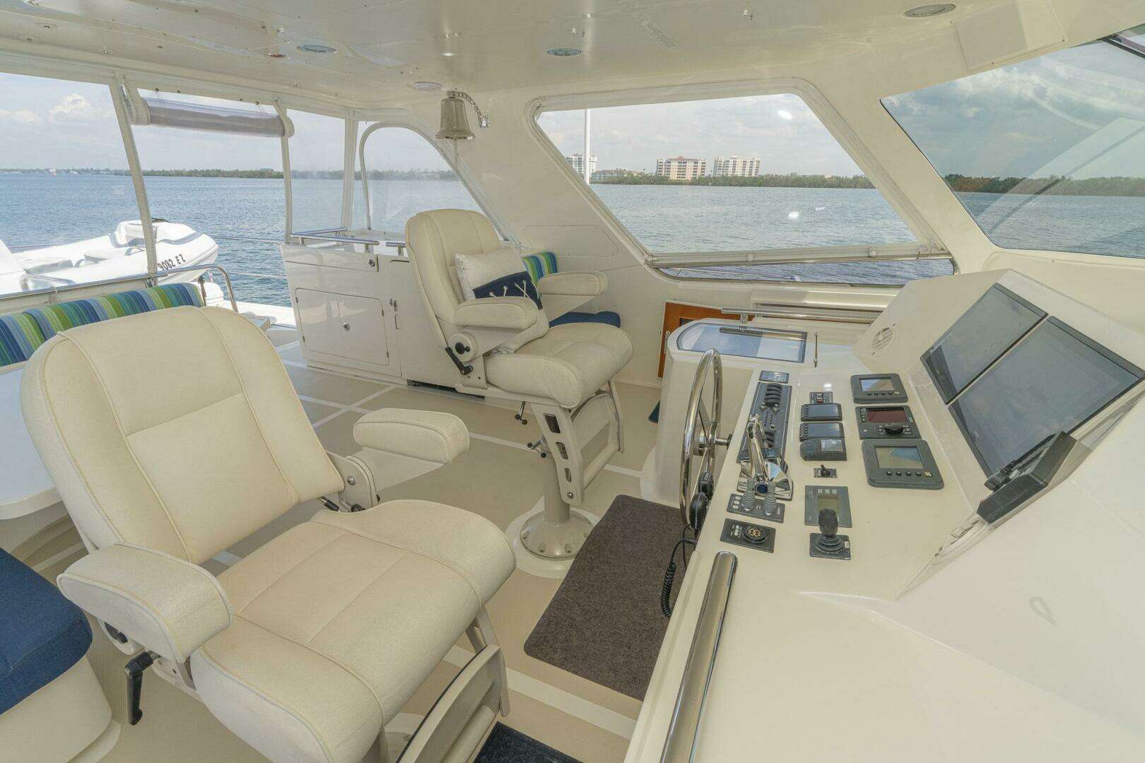 Heading back up to the Semi- Enclosed Fly-bridge level you will notice the 360° sight lines from up here. The helm station here is equipped with an impressive array of electronics and provides a great view whether you are cruising or at anchor. She has folding radar arches on the hardtop which make her Loop Ready as this brings the bridge clearance to well under 19’6”.