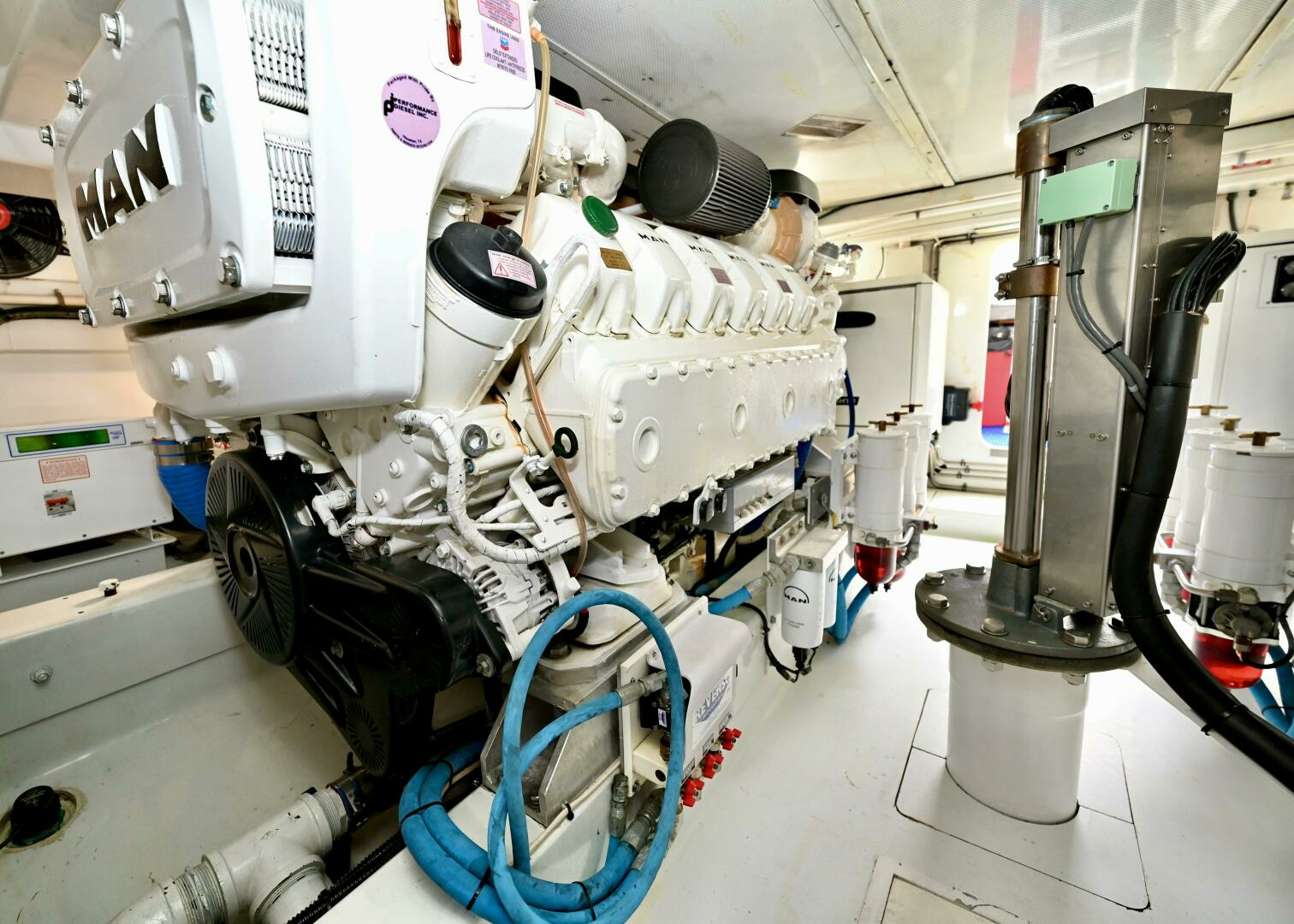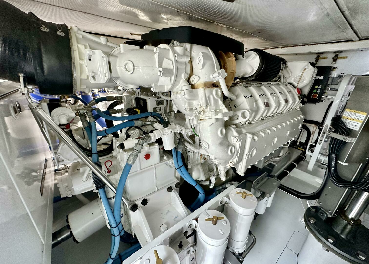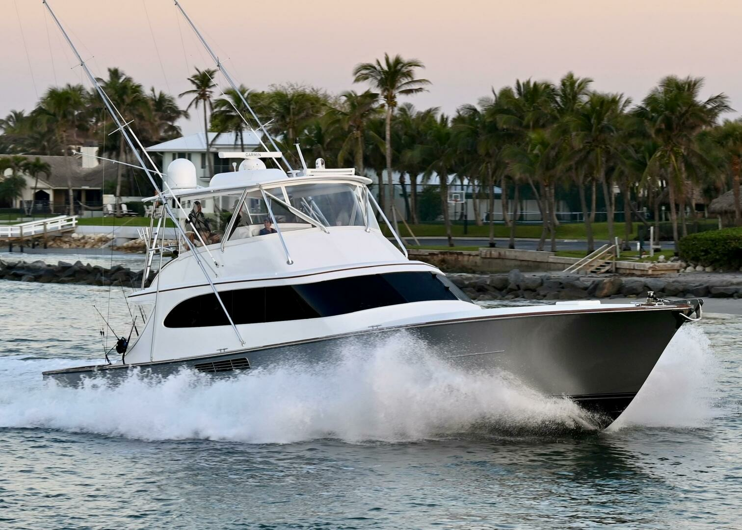 | Notable Upgrades: New Twin MAN V12 1550hp Engines (2021) (With the extended warranty) New Northern Lights Generators (2021) New Electronics (2021) and the Furuno Omni 8L Sonar Exterior Paint (2021) Custom Palm Beach Hard Top (2021) New Teak decks (2021) Full Mezzanine (2) Sea Keepers New Garmin electronics |