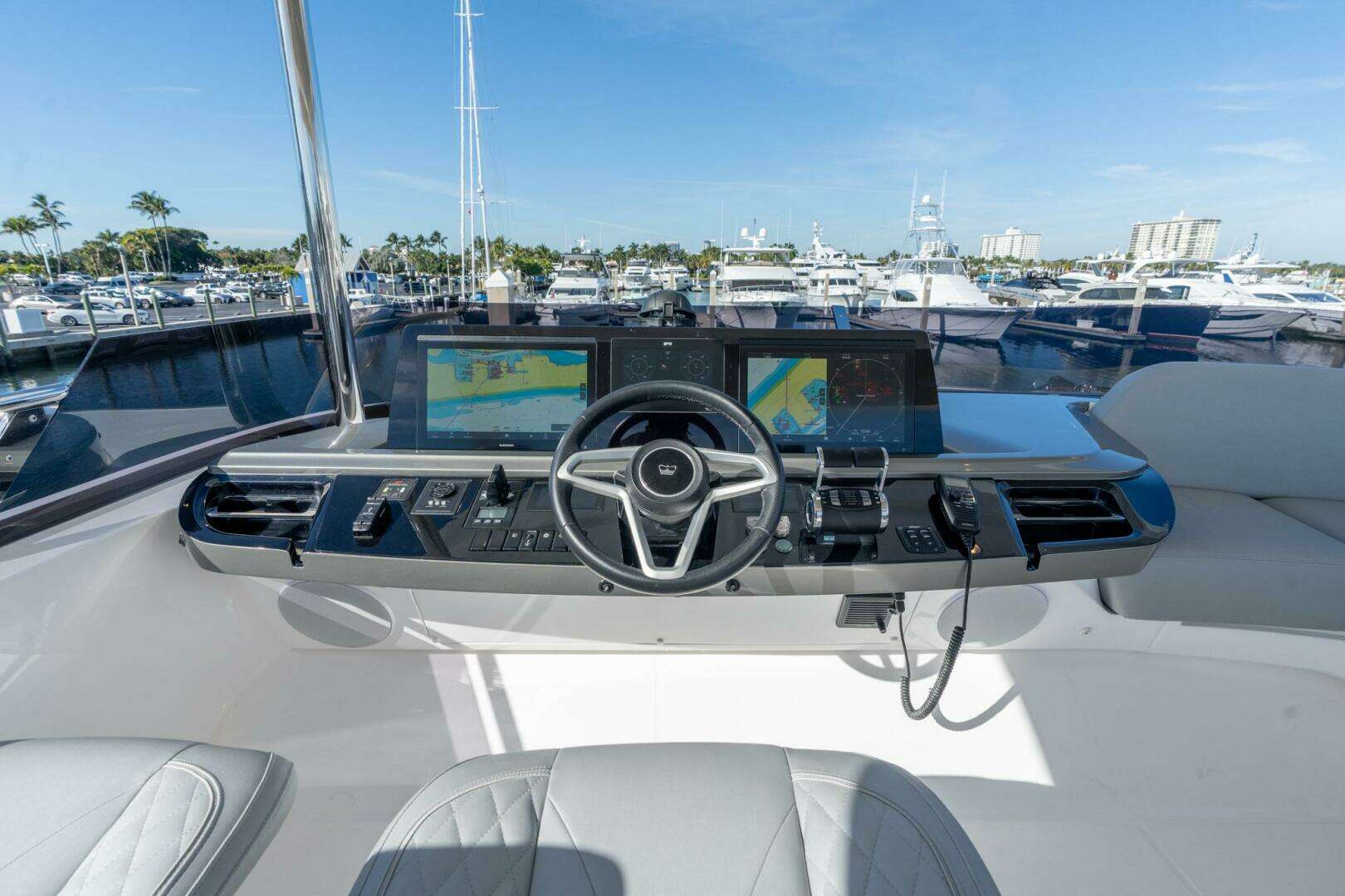 - Flip-up arm rests to flybridge helmsman seating (1 each side)