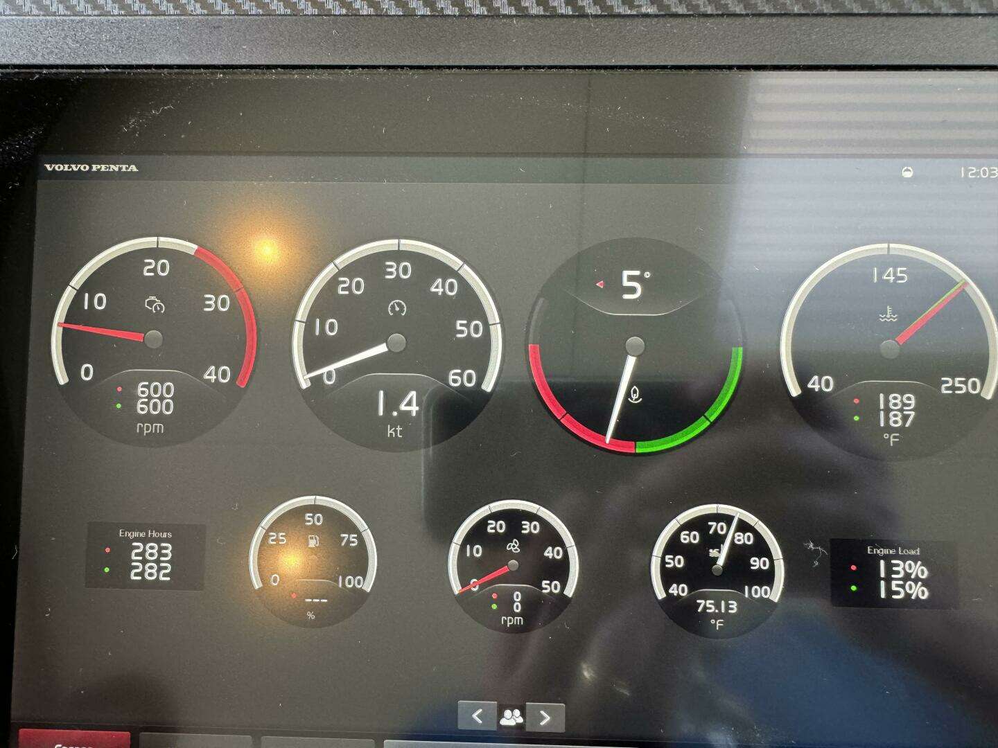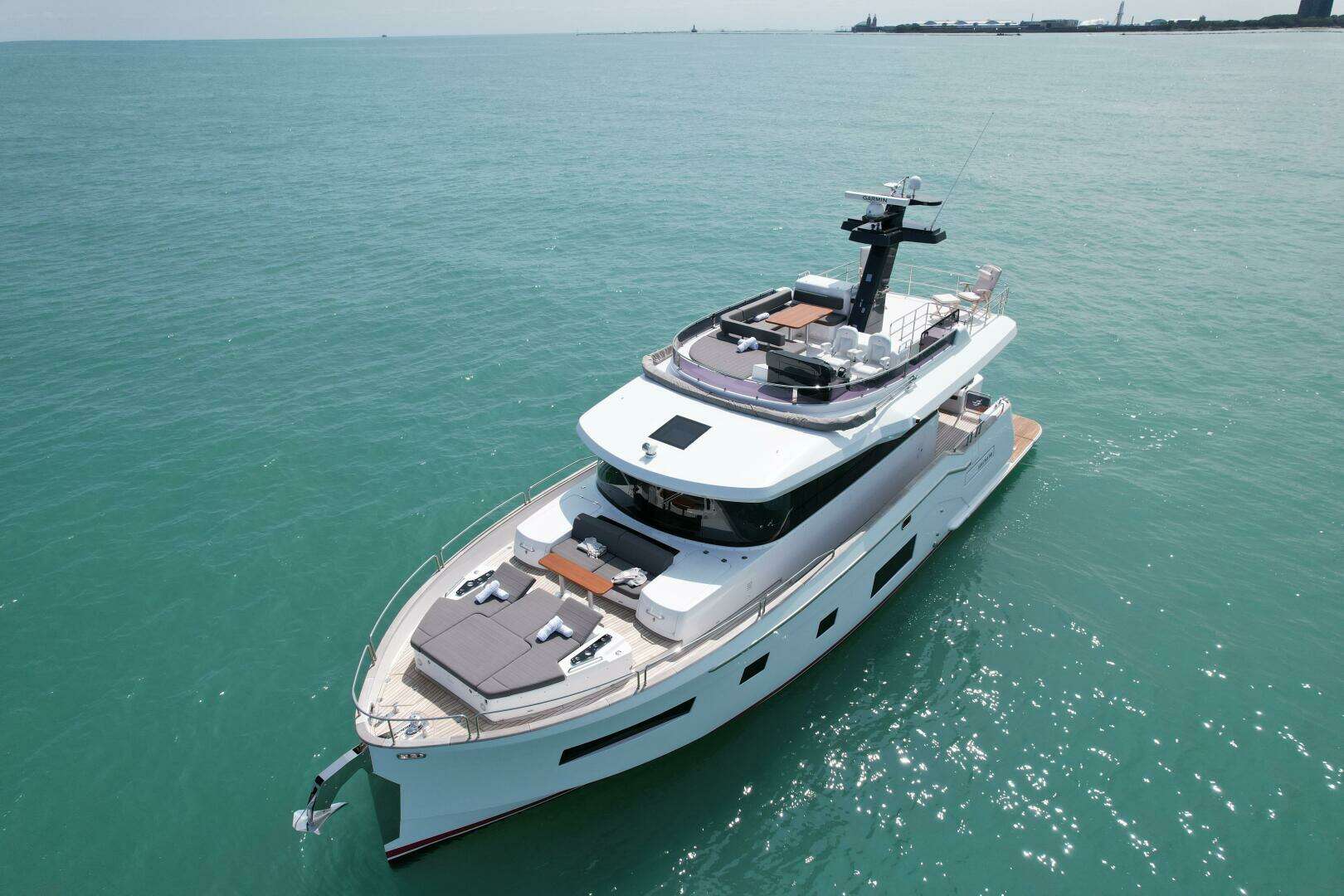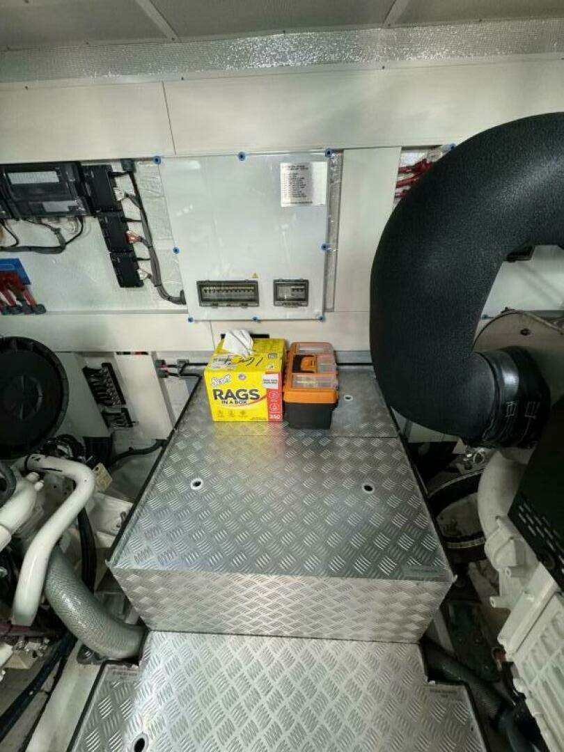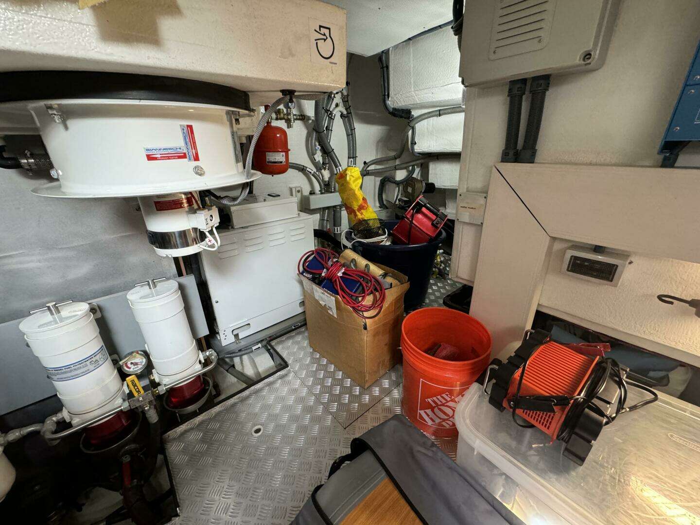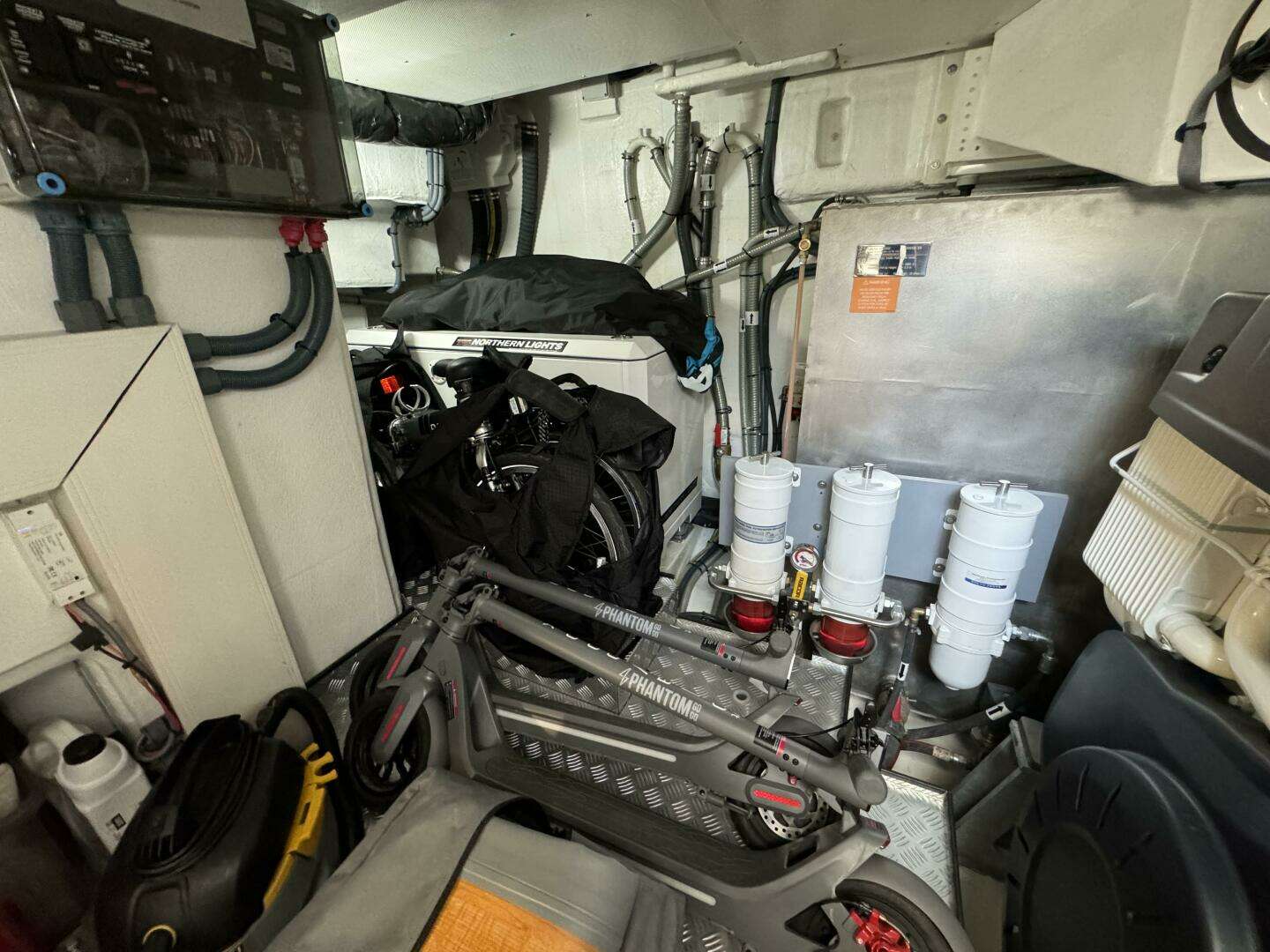 Halogen free and self-extinguishing cables Bounding system with two sacrificial anodes Grounding systemGalvanic Isolator and to prevent galvanic corrosion 115/230V AC - 60 Hz with 2 x 63A shore connection 24V DC - 12V DC with negative groundedReverse polarity indicatorInverter 2400W - 24V / 110V - 60HzShore power socket 115/230V - Nr. 2 63APower lines procted by dedicated GFCI circuit Shore power cableGlendinning cable master CM8Northern Lights Generator 21.5Kw - 60 HzCruiseAir zone controlled reverse cycle system - 99.000 BTU/hServo electric power assisted steering system and autopilot systemGarmin autopilot systemRudder blade in aluminium bronzeDynamic automatic trim control via interceptors8 Kw bowthruster - 24 DC, 9.8” diameterBATTERIESNr. 8 95Ah batteries for serviceNr. 4 140Ah batteries for engine startNr. 1 95Ah battery for generator startNr. 1 battery charger - 24V / 80A for serviceNr. 1 battery charger - 24V / 30A for starting batteriesNr. 1 battery charger - 12V / 15A for generator batteryBILGE SYSTEMNr. 1 x 24V electrical Bilge pump in engine roomNr. 1 x 24V automatic electrical bilge pump 24V in the accommodation areaNr .1 manual Bilge pump located at aft deck under mooring area. Two suction areas through a valve, one suction at accommodation area. One suction at engine room.Nr. 4 Bilge level alarmsNr. 2 Bilge high level alarmsEngine room emergency pump through a diverting valve fitted on engine seawater cooling line Each electric pump can be manually activated by switches placed in the helm stationFIRE EXTINGUISHING SYSTEMSeafire Novec manual ad automatic extinguishing agent in the engine roomAutomatic shut down systemAlarm panels on helm station and flybridge dashboardsFUEL SYSTEMNr. 2 stainless steel tanks (total 950 gal) located in the engine roomFuel level indicator for each tank on monitoring systemVisual level gauge on port and starboard tanksNr. 1 single Racor separation filter for generatorNr. 2 double VOLVO separation filter for enginesFRESH WATER SYSTEMNr. 1 HDPE tank (210 gal)Self priming fresh water pumpTank level indicator and empty status integrated in the monitoring system16 gal water heater 110V - 1200WHot and cold water in all head rooms, galley, cockpit, flybridge sink and fly showerCold water outlet in engine roomFilling cap on the side-walkingShore fresh water connectionBLACK WATER SYSTEMNr. 1 HDPE tank 120 gal capacityTank level indicator integrated in the monitoring system3/4 and full tank indication in the headsFresh water toilet flushingHolding tank discharge via suction on deckOverboard discharge of wastewater via a dedicated line at the exit of the holding tank GRAYWATER SYSTEMNr. 1 HDPE tank 60 gal capacity3 sump tanks under masterhead3/4 and full tank Indication in the heads and galley Water drainage from showers and sink into tank Level sensor integrated into the monitoring system Water drainage via manifold (24V membrane pump) Manual / Automatic overboard dischargeSEAWATER SYSTEMNr. 2 Seawater intakes with filters and valves for engine cooling systemNr. 2 Seawater intake with filter and valve for generator cooling systemNr. 1 Seawater intake with filter and valve for chain wash and deck wash systemWater maker predispositionENGINE GAS EXHAUST SYSTEMWater-cooled engine exhaust, thermal-insulated stainless steel manifoldsFiberglass muffler integrated into the hull structure, submerged outlets, and bypass line on hull sidesVENTILATION / EXTRACTIONAir inlet and outlet openings with a GRP cover on hull sidesNr. 2 24V air inlet fans at port side ventilation channelNr. 4 24V air extraction fans at port side ventilation channelMist eleminator at each channelOTHER EQUIPMENTSSix 40’ mooring lines in 3/4’ diameterNr. 8 fenders with 8 mm diameter linesNr. 2 leather fender hook