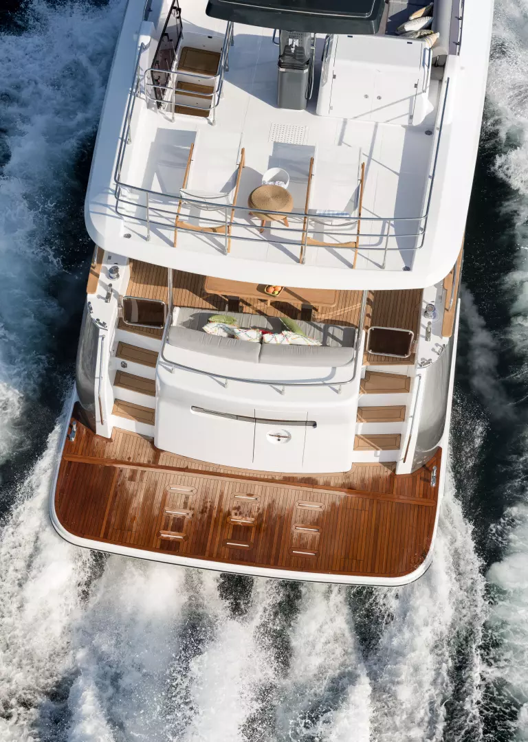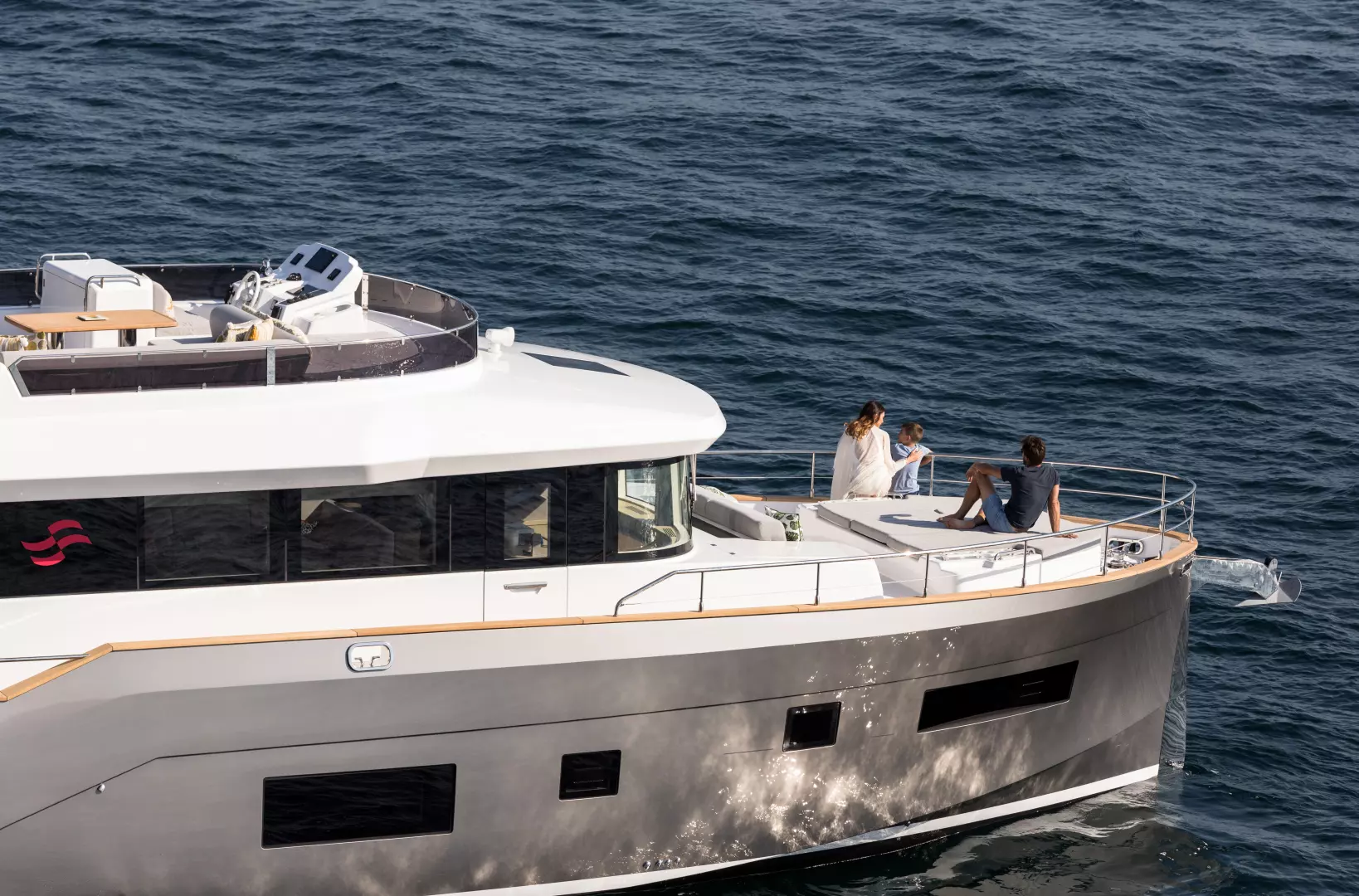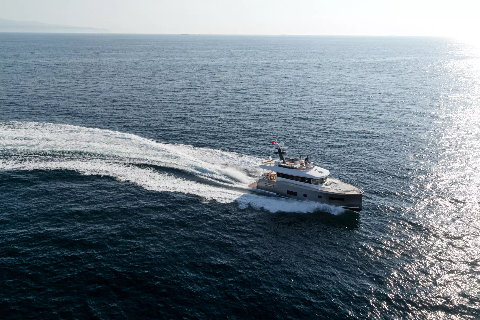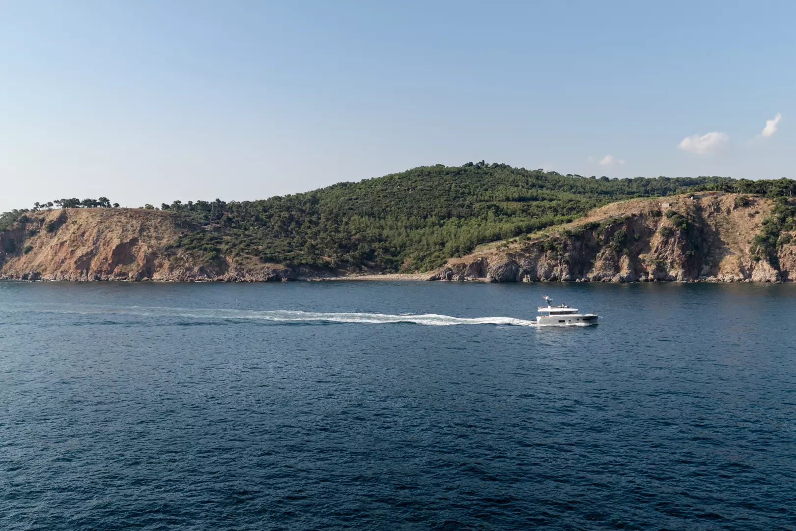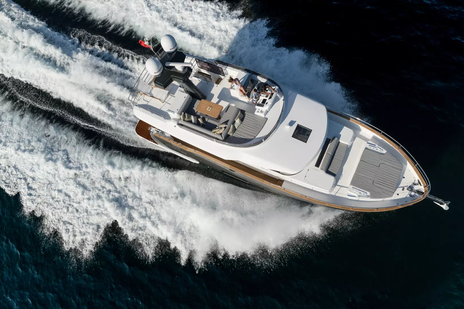SIRENA 58 benefits from the development of its efficient hull underbody, and having the best performance at a wide range of Froude numbers, from displacement mode up to planning condition.