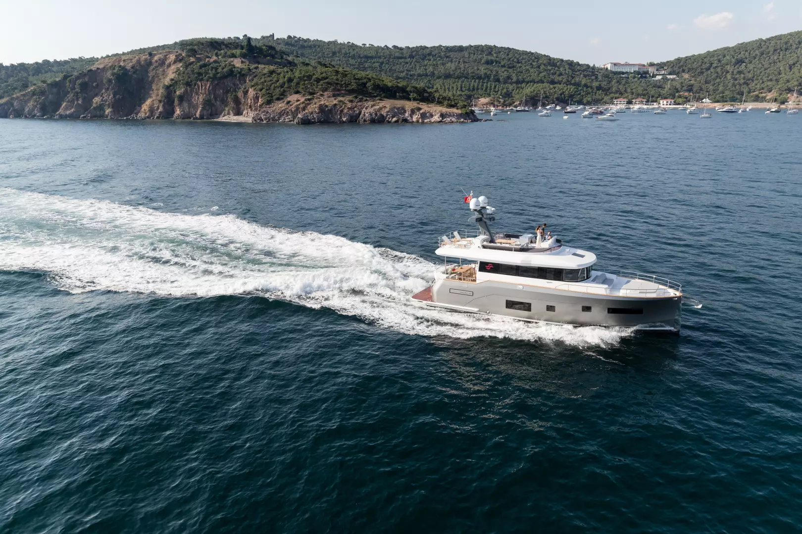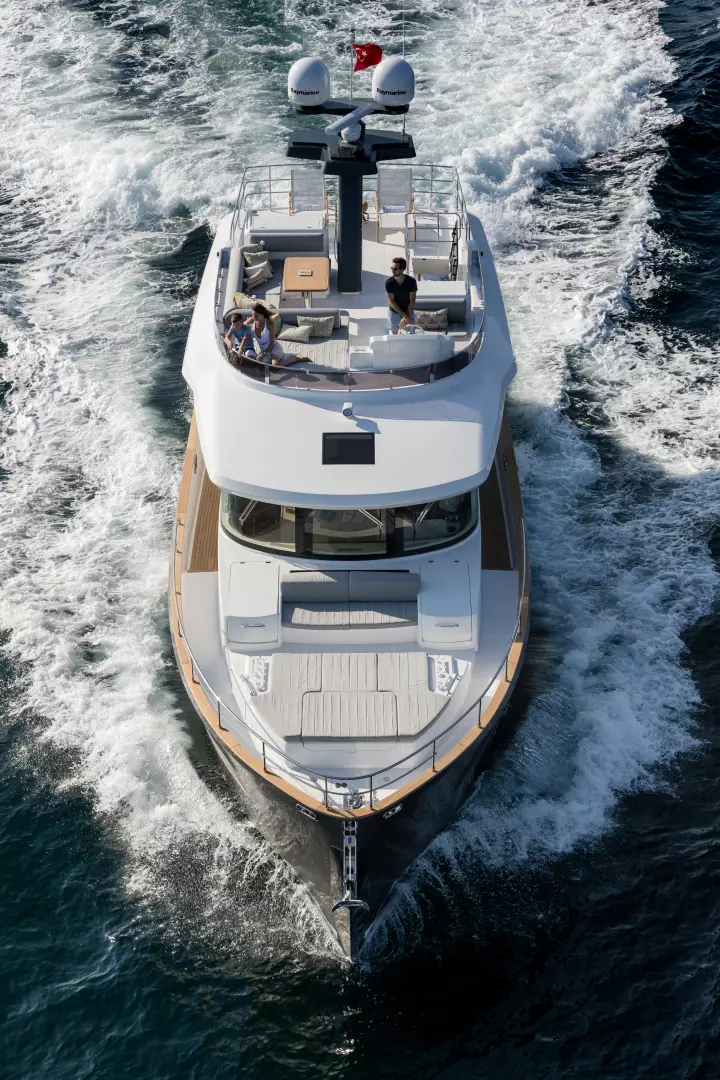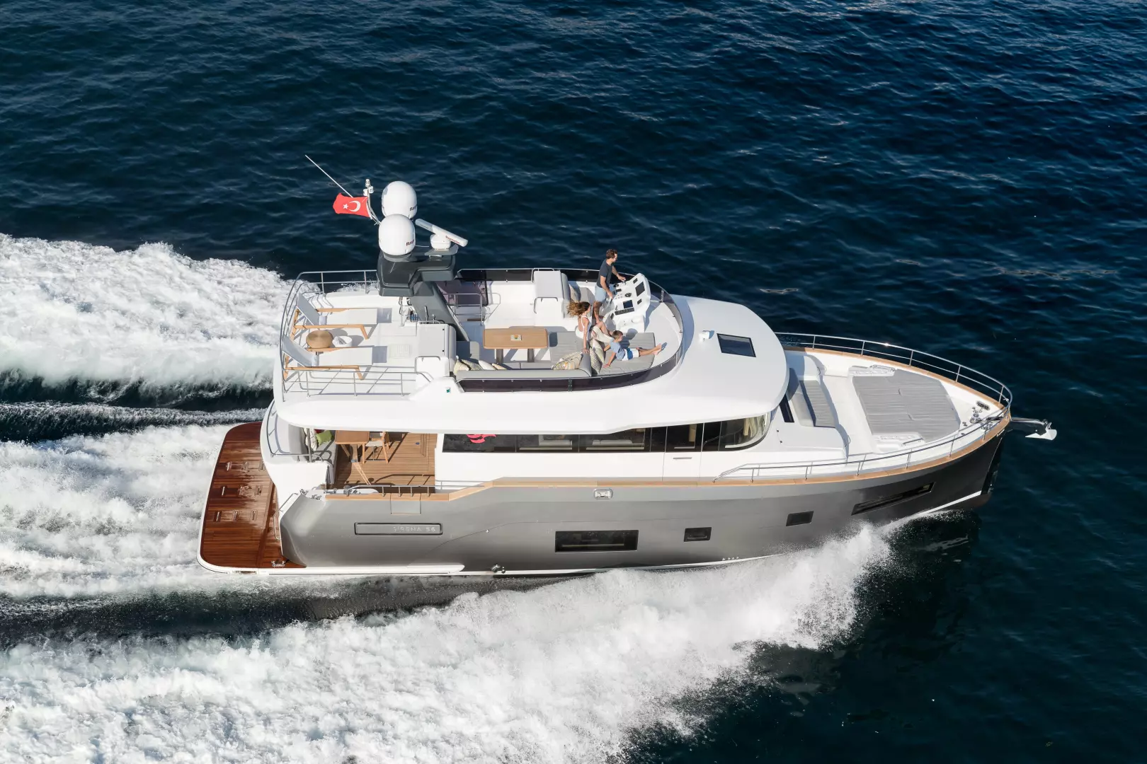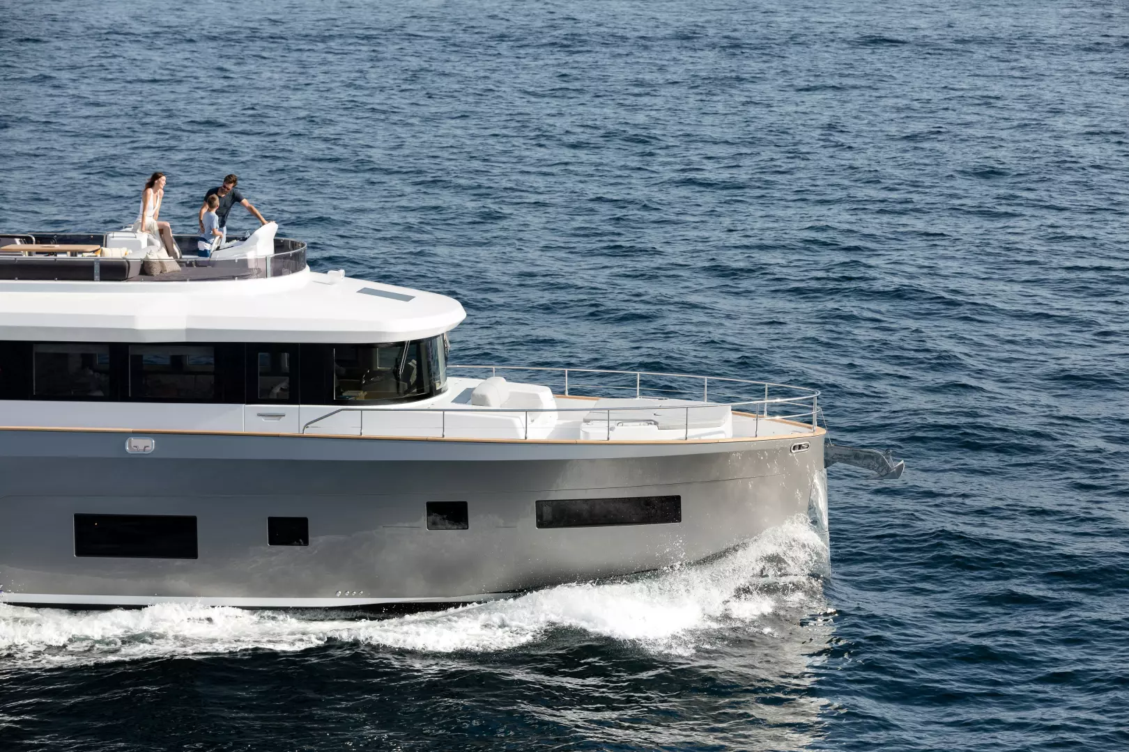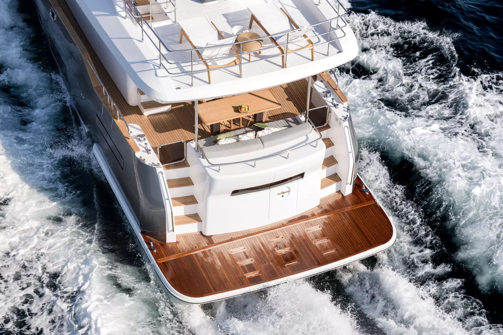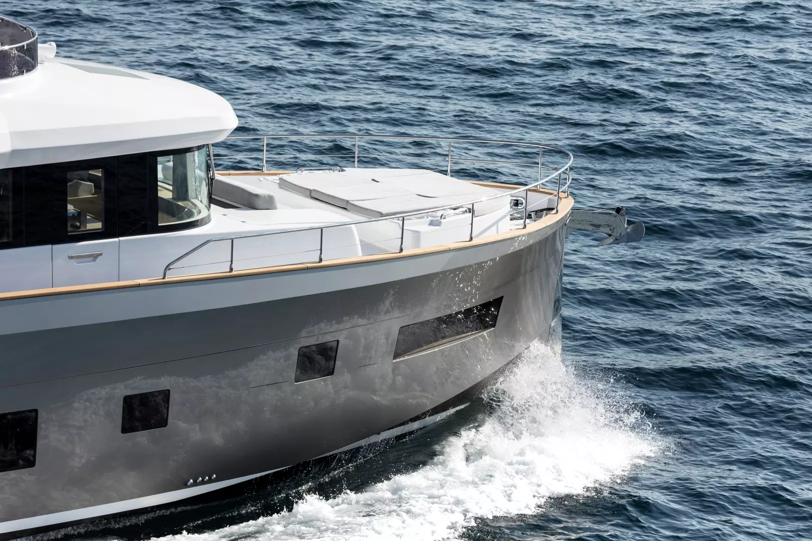 SIRENA 58 benefits from the development of its efficient hull underbody, and having the best performance at a wide range of Froude numbers, from displacement mode up to planning condition.