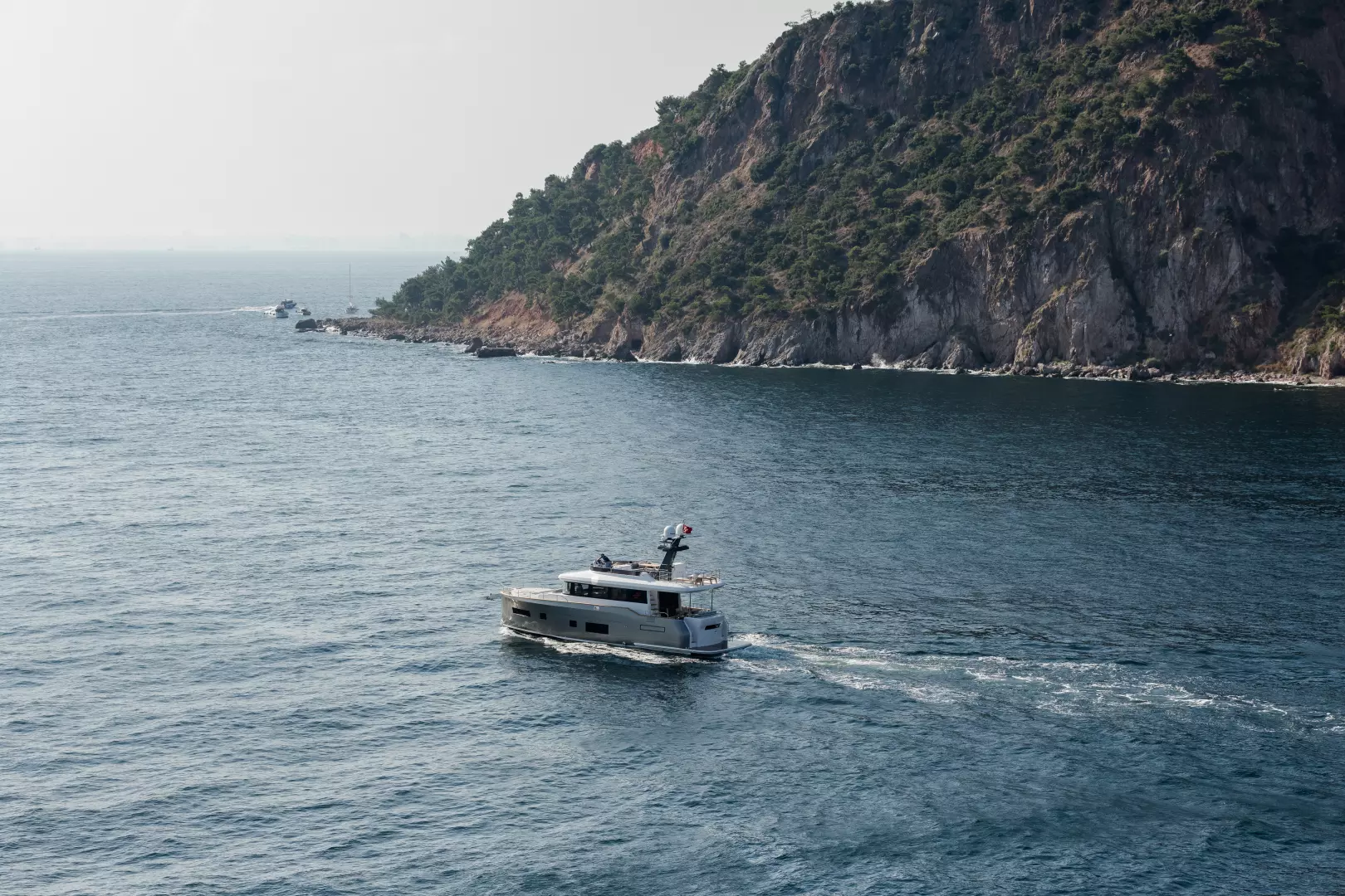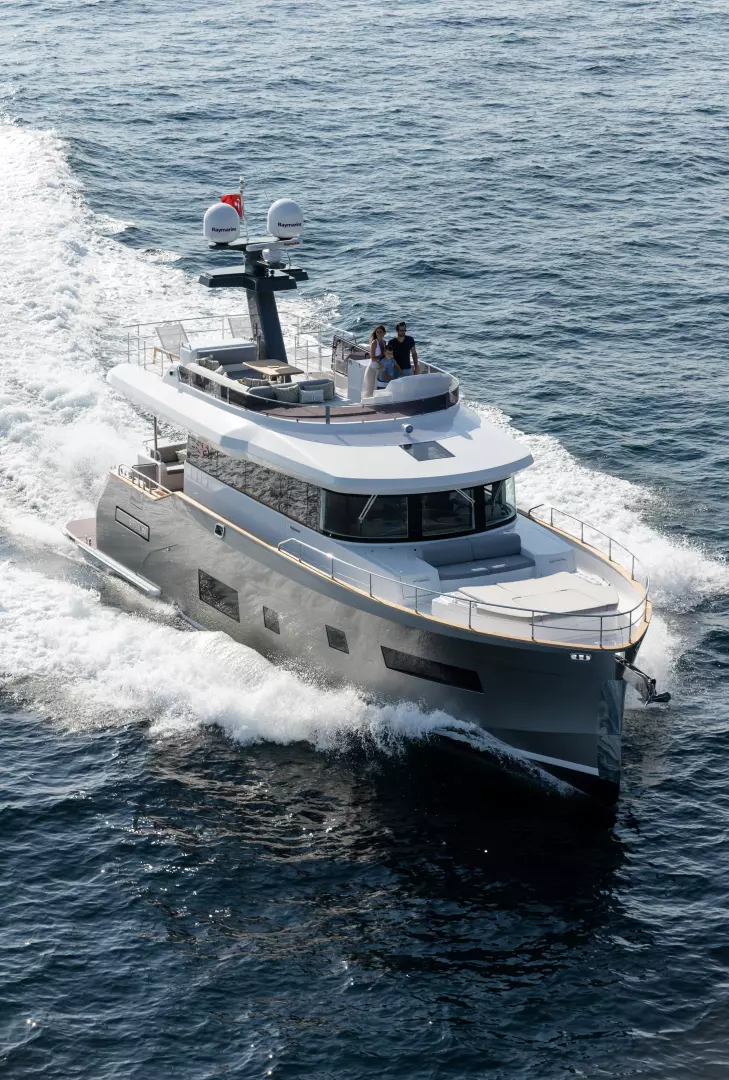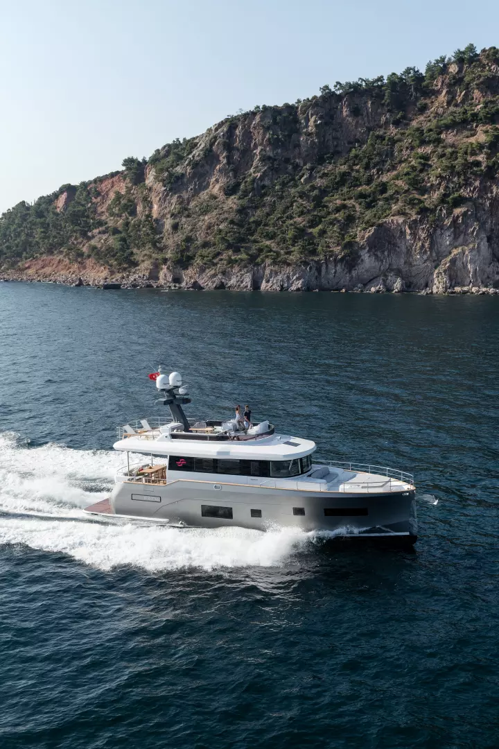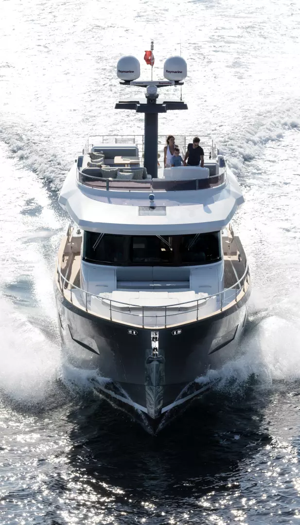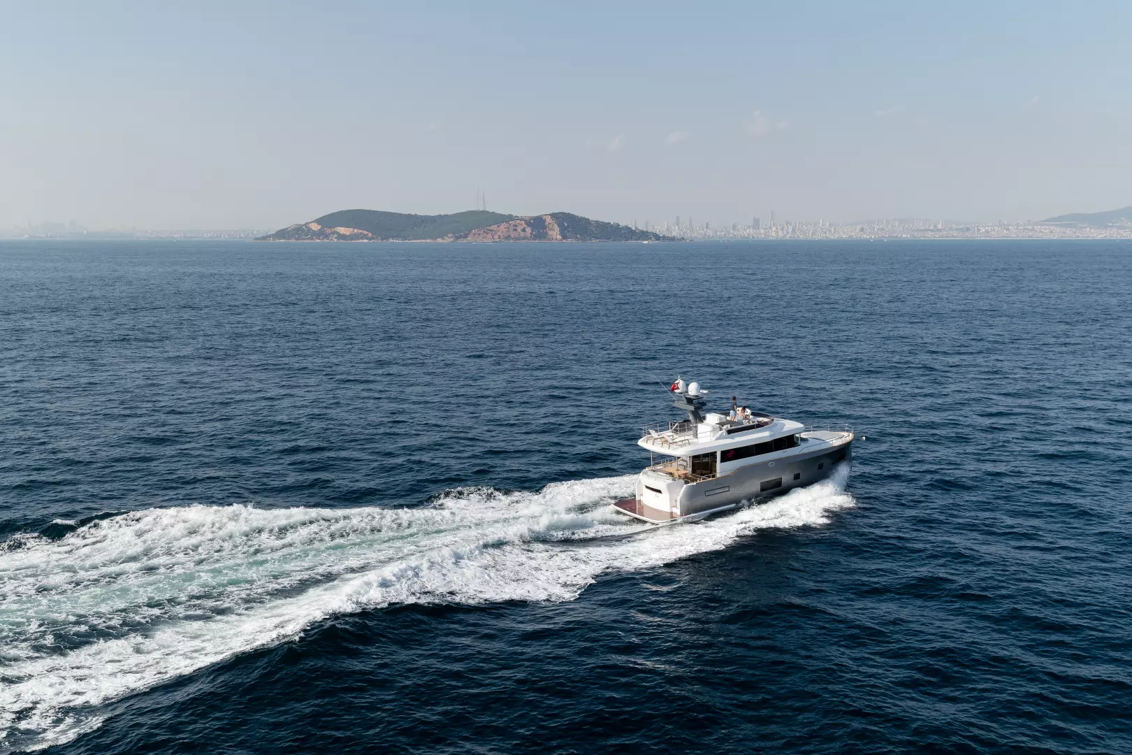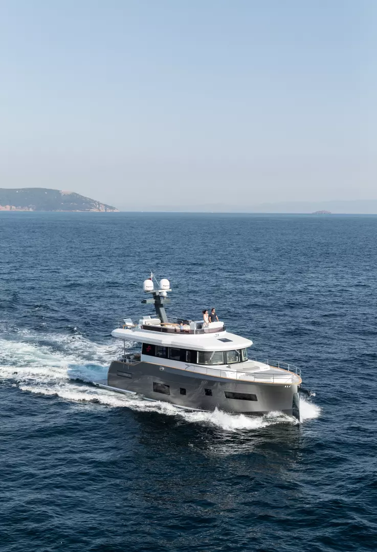 SIRENA 58 benefits from the development of its efficient hull underbody, and having the best performance at a wide range of Froude numbers, from displacement mode up to planning condition.