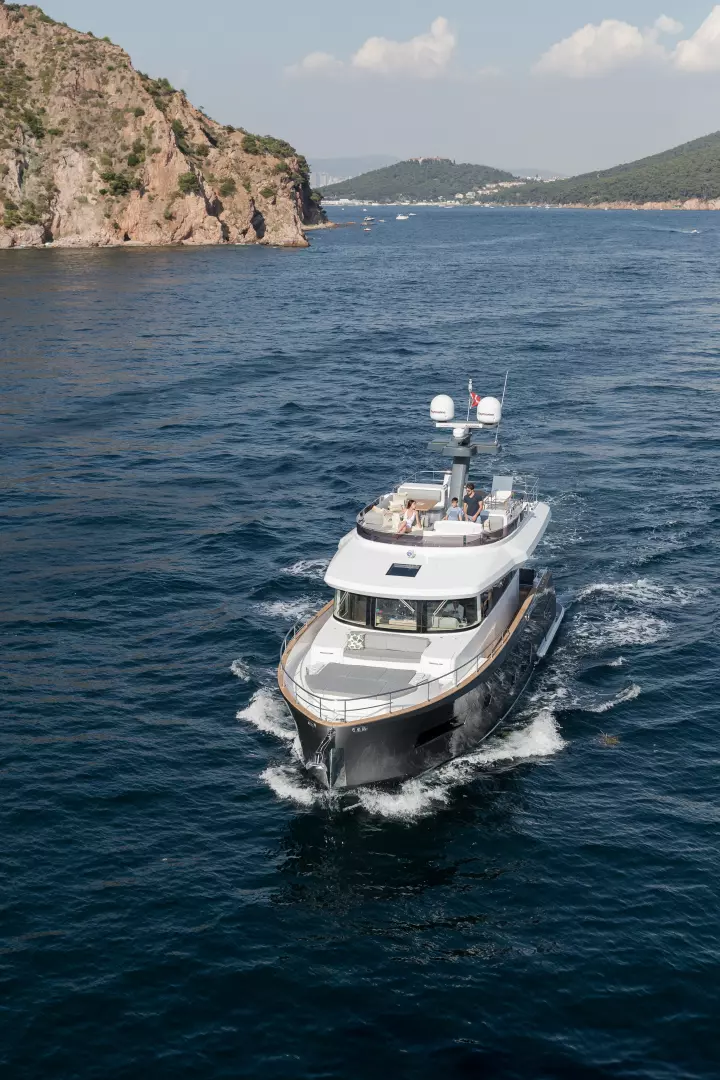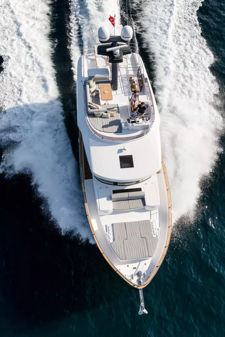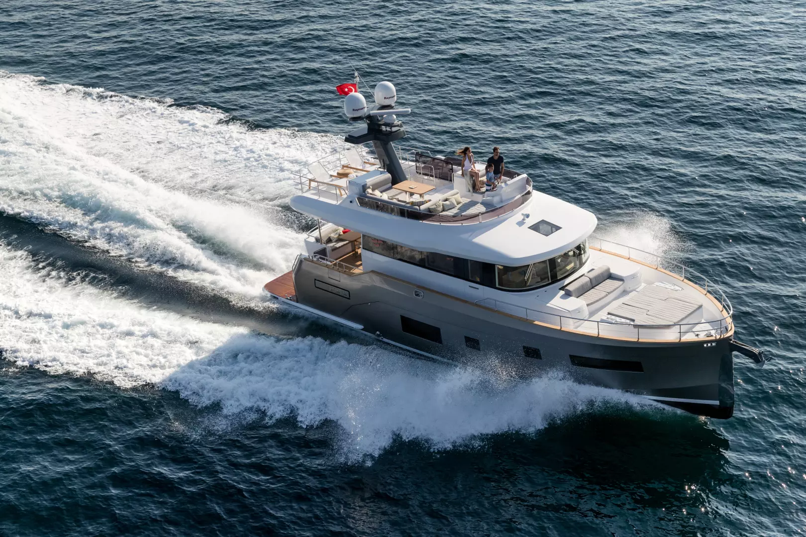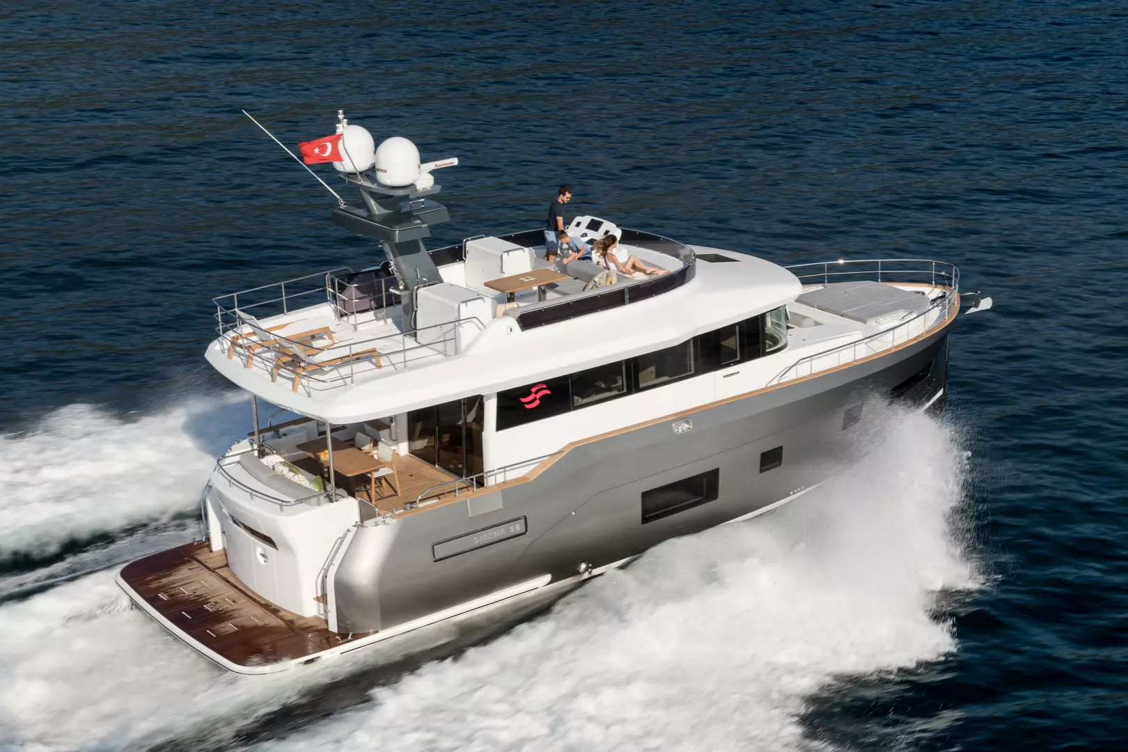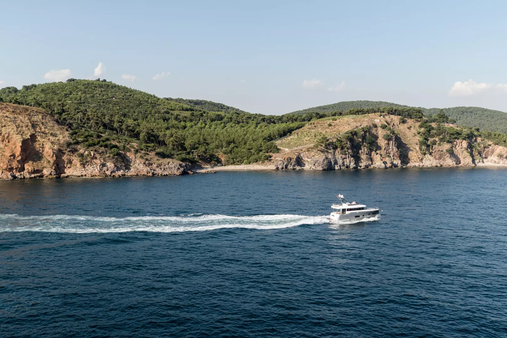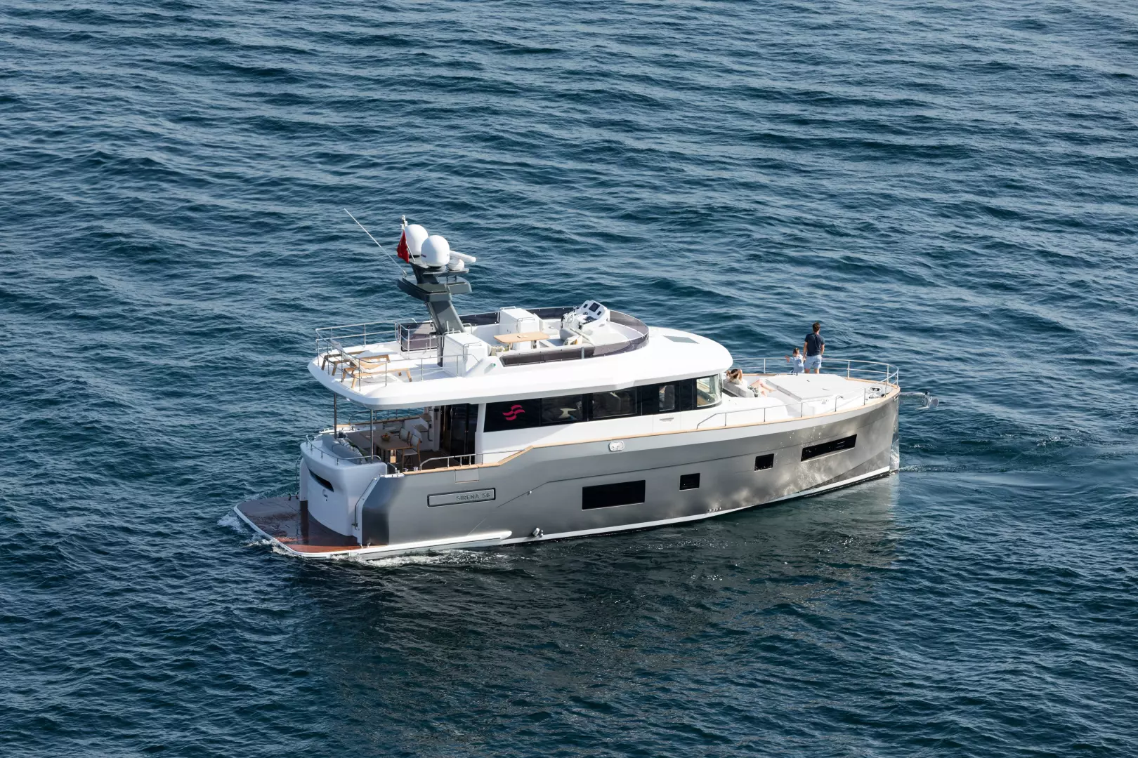 SIRENA 58 benefits from the development of its efficient hull underbody, and having the best performance at a wide range of Froude numbers, from displacement mode up to planning condition.