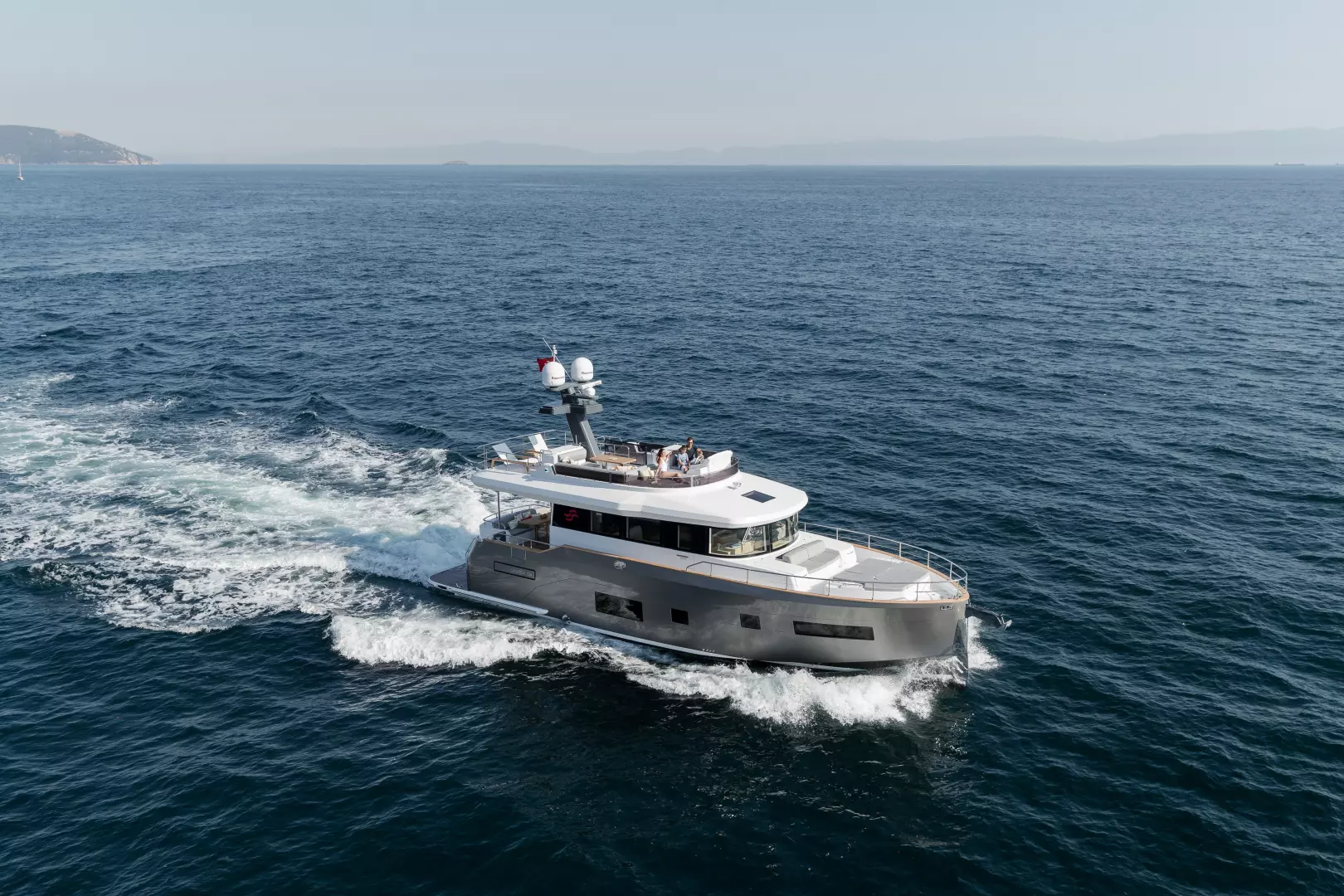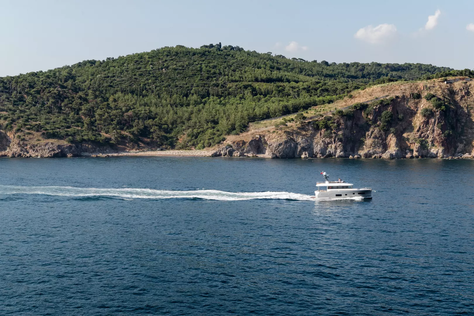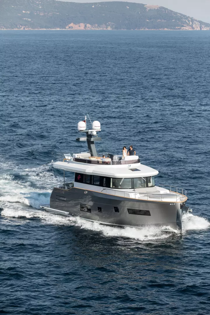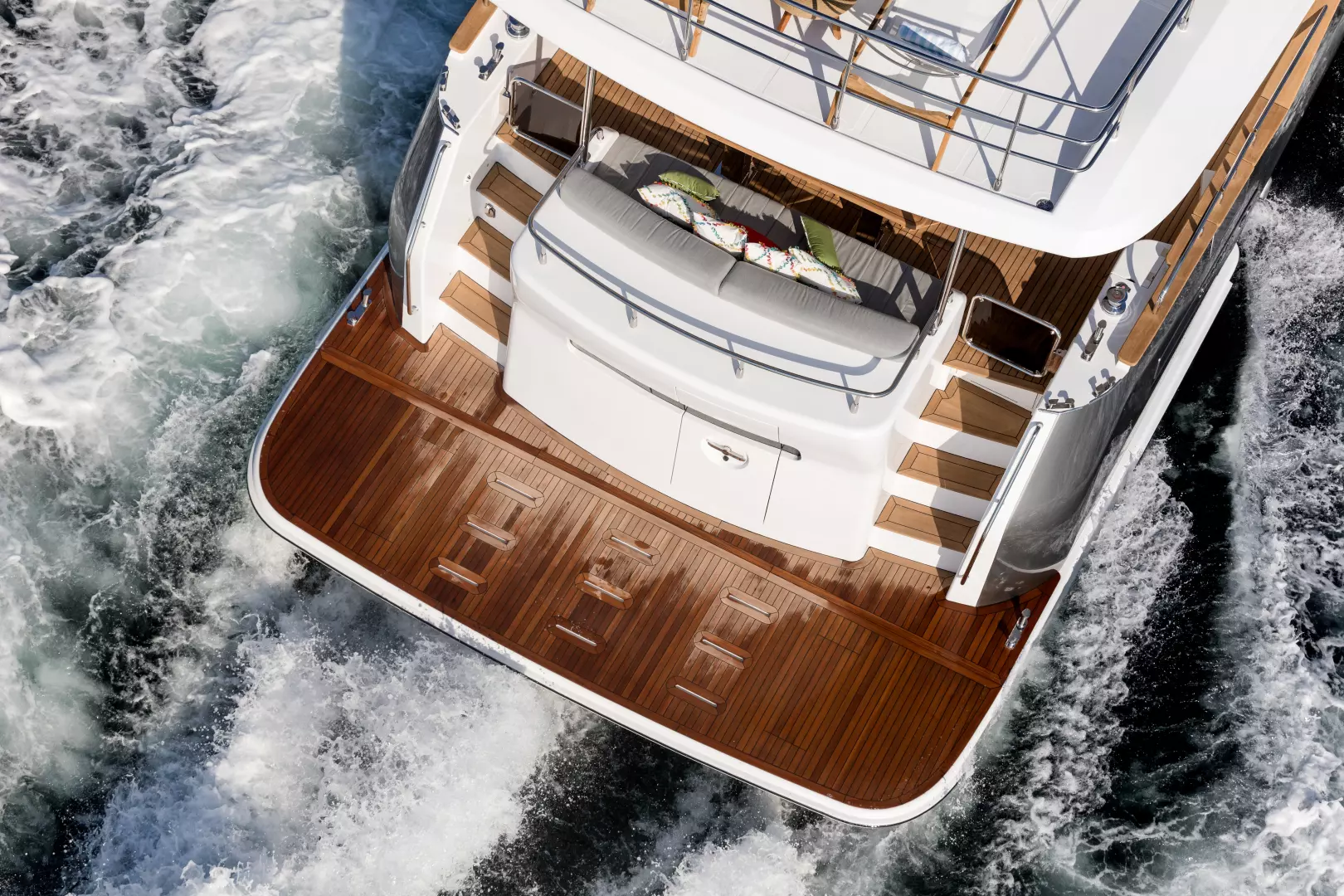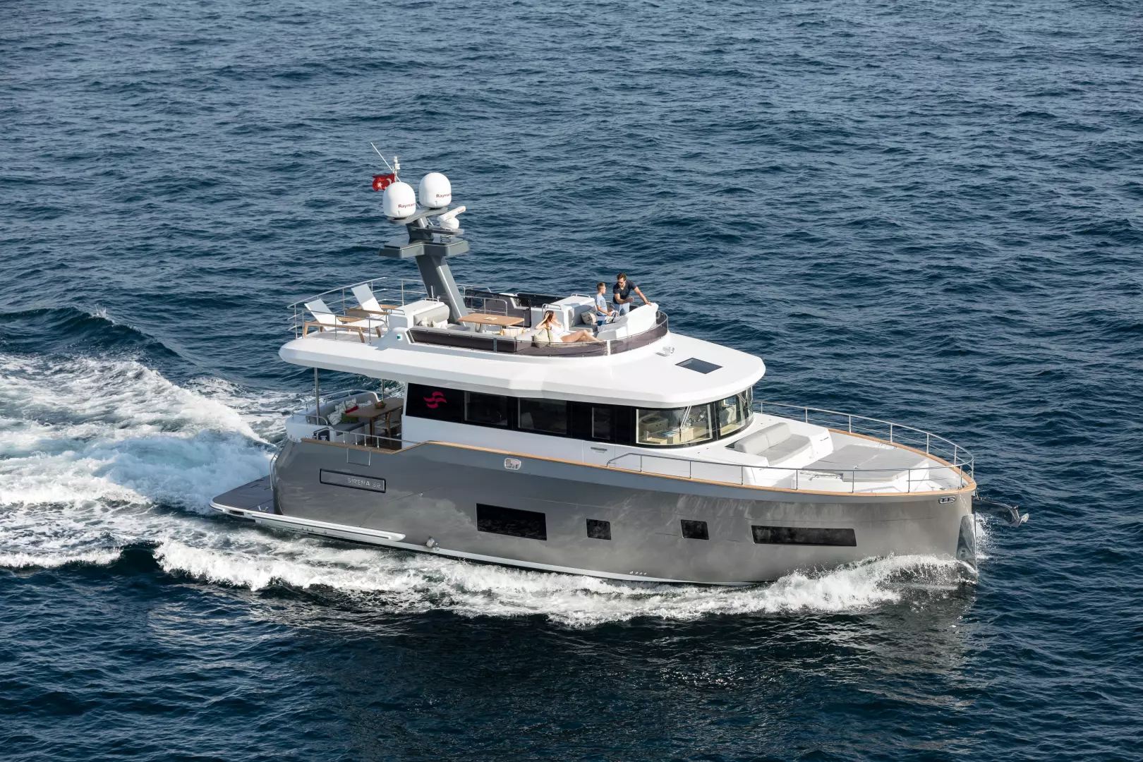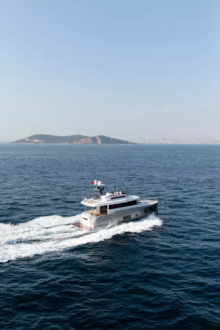 SIRENA 58 benefits from the development of its efficient hull underbody, and having the best performance at a wide range of Froude numbers, from displacement mode up to planning condition.