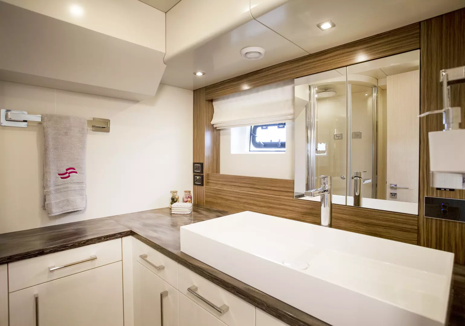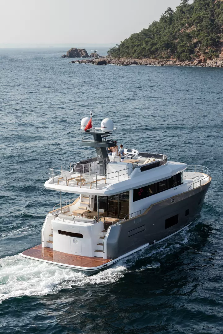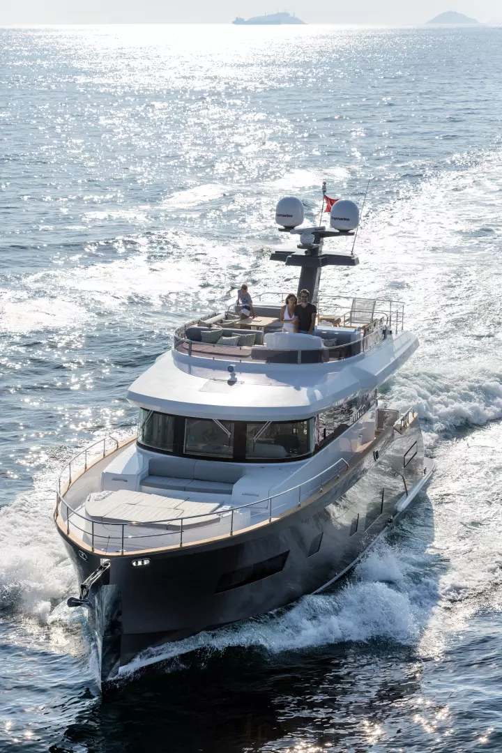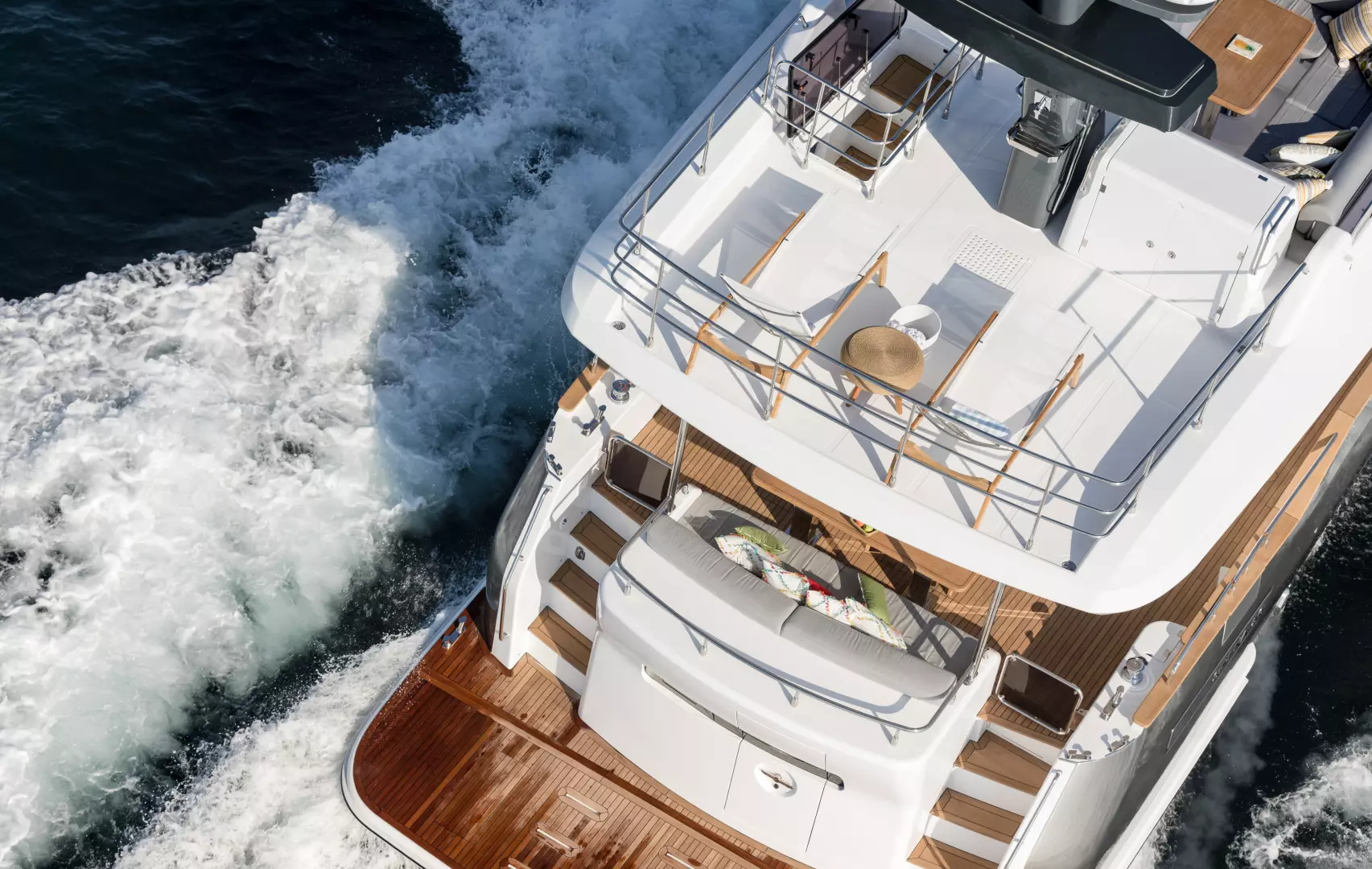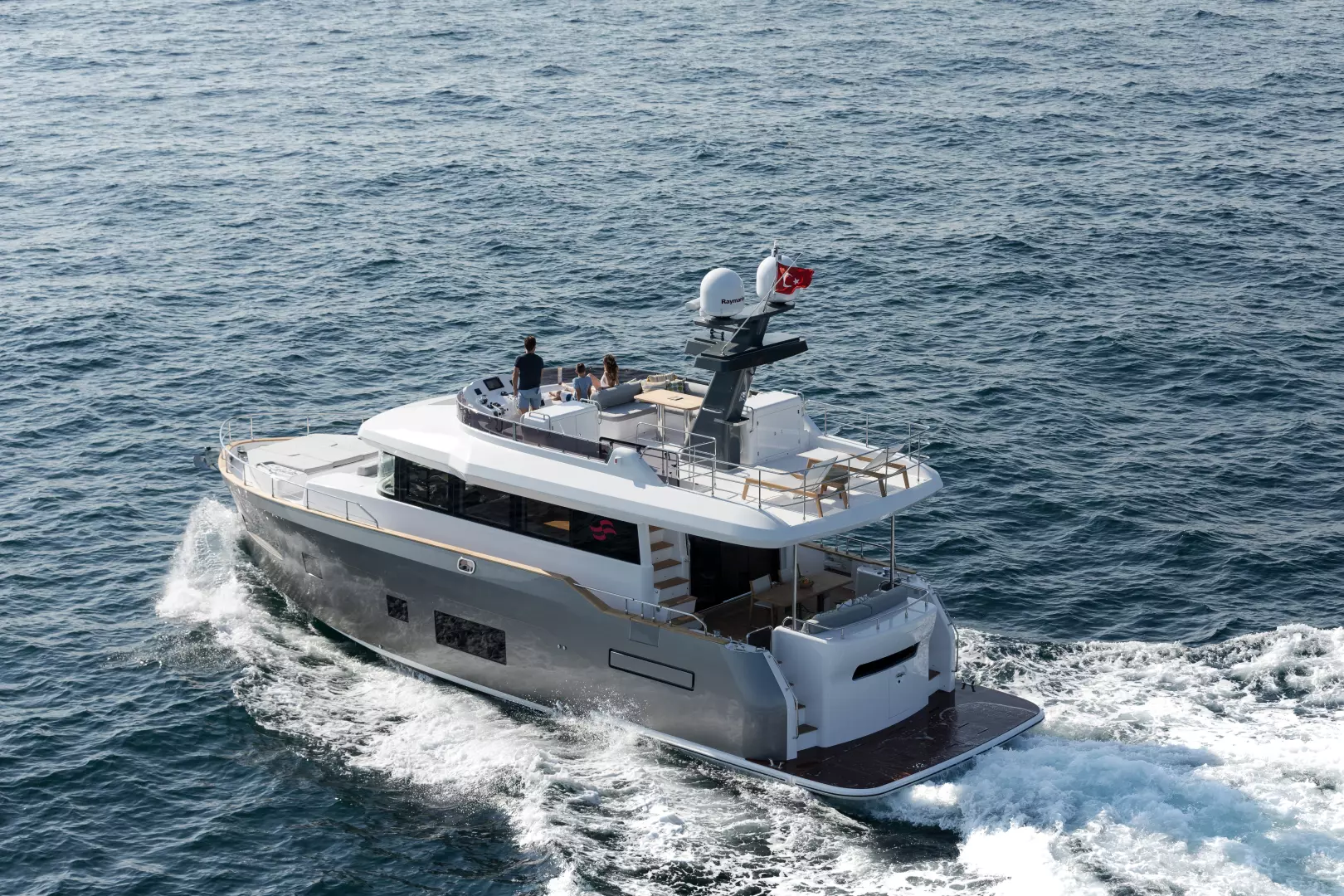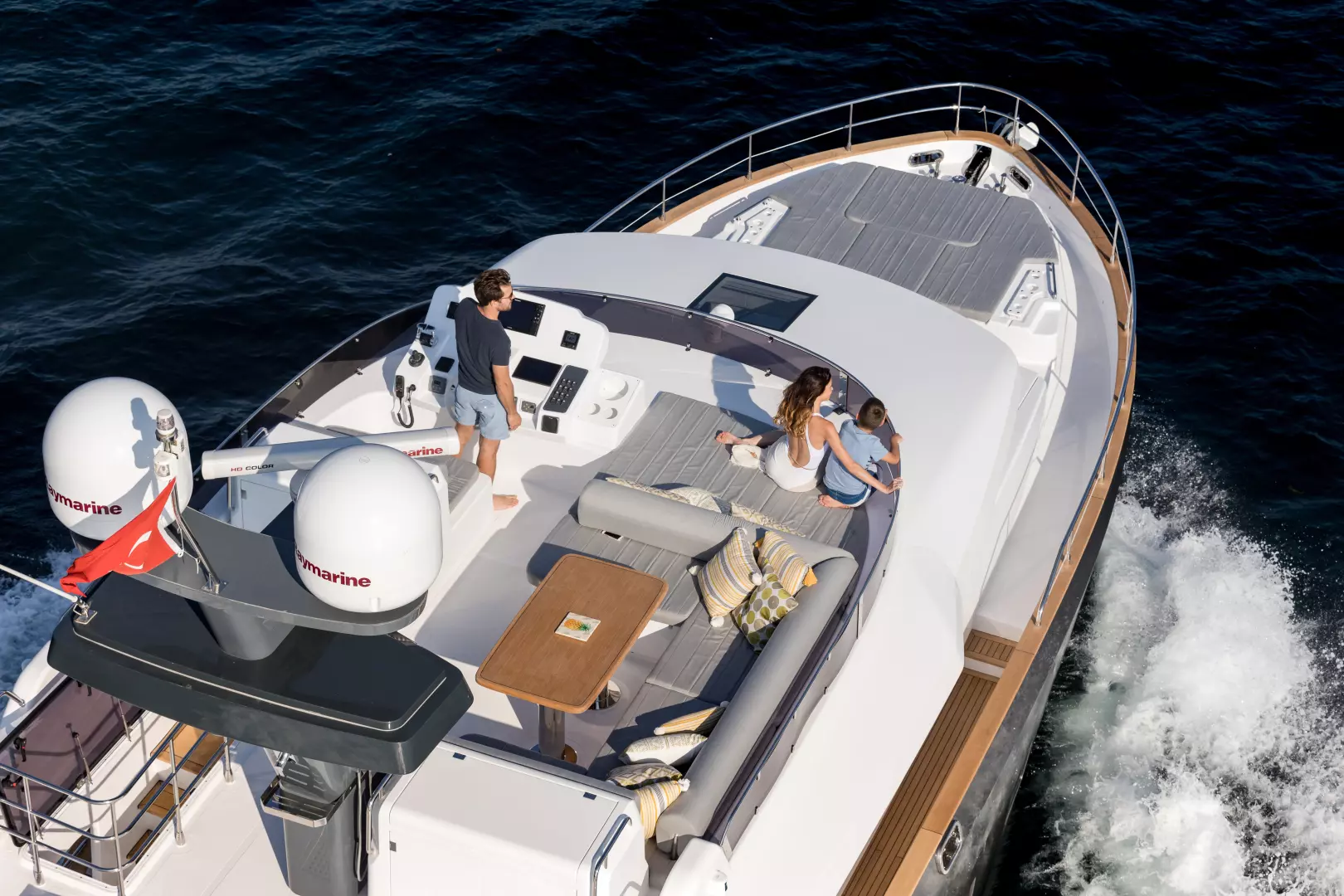 SIRENA 58 benefits from the development of its efficient hull underbody, and having the best performance at a wide range of Froude numbers, from displacement mode up to planning condition.