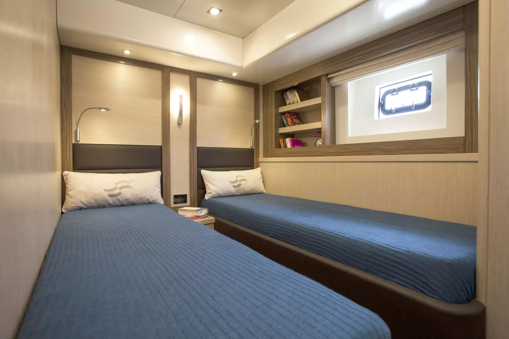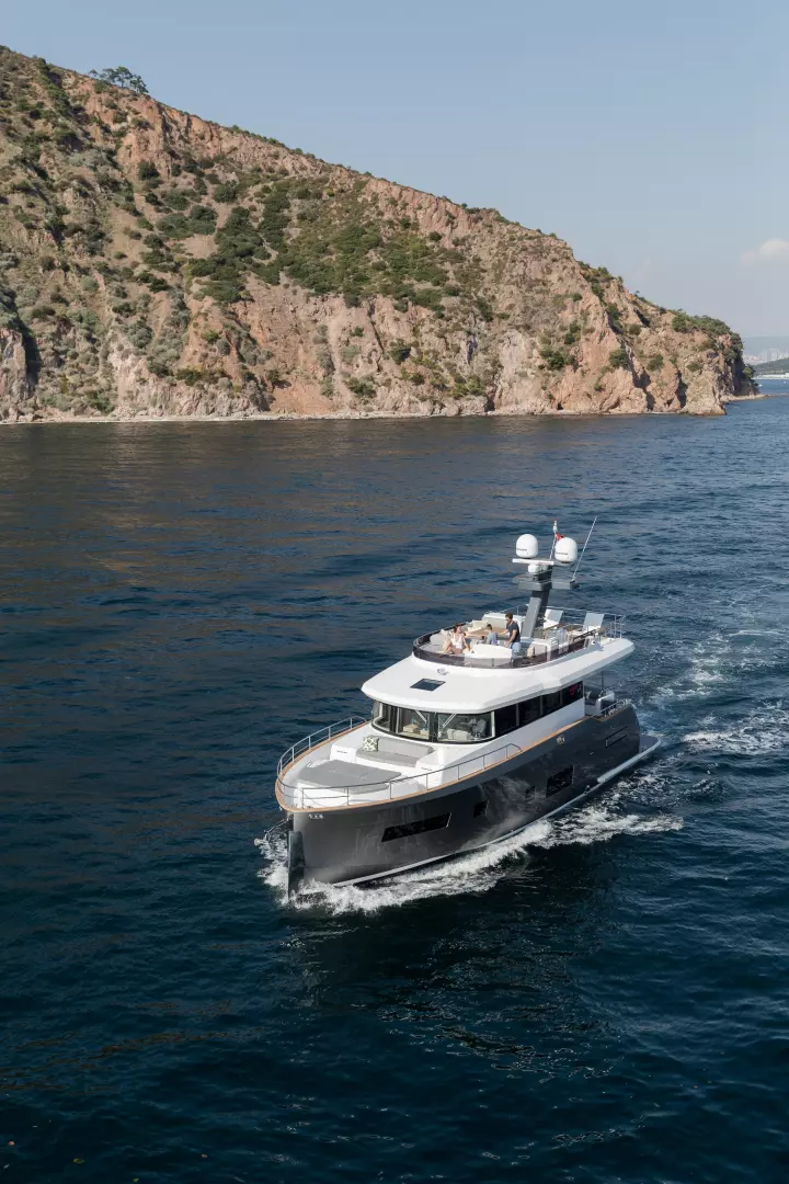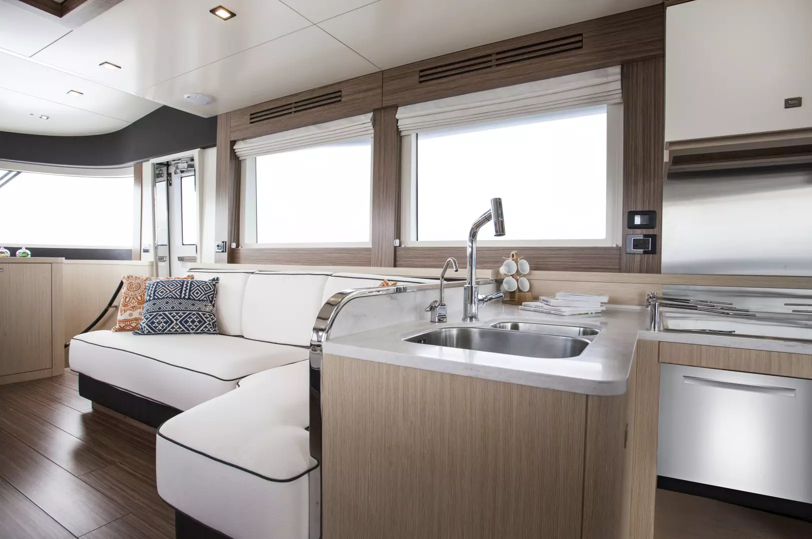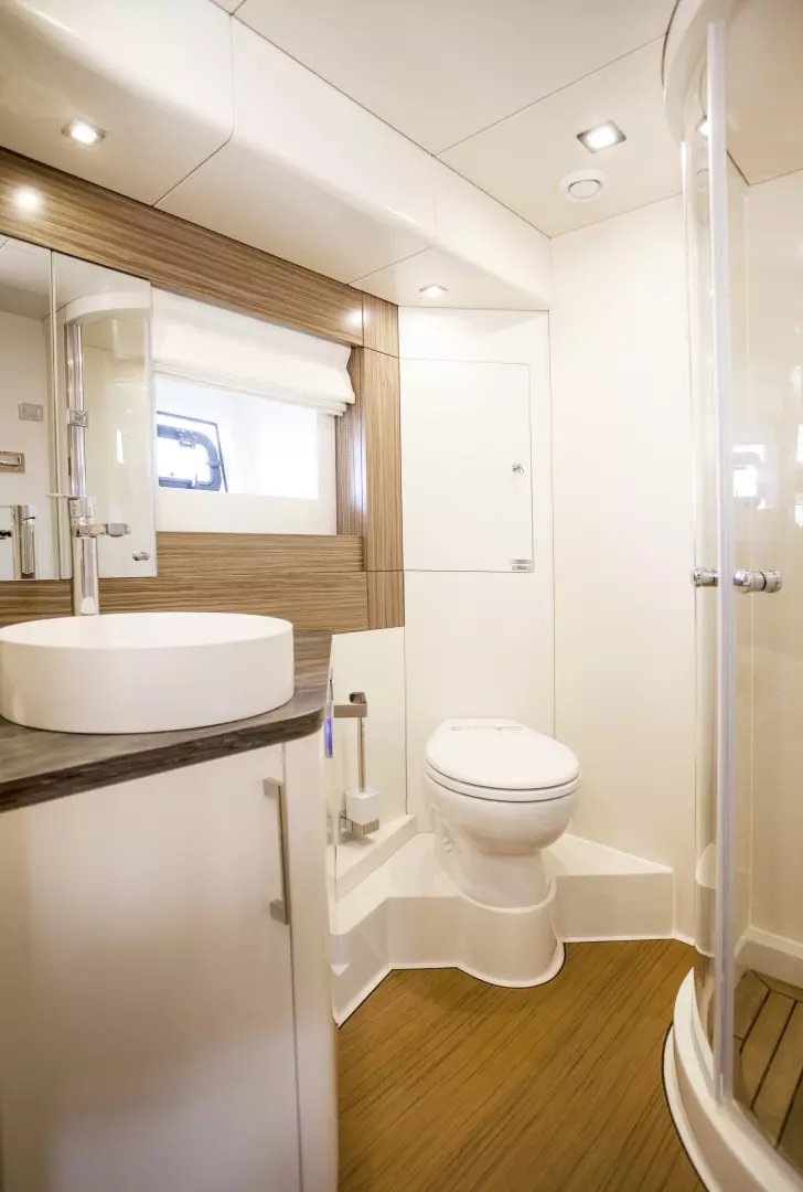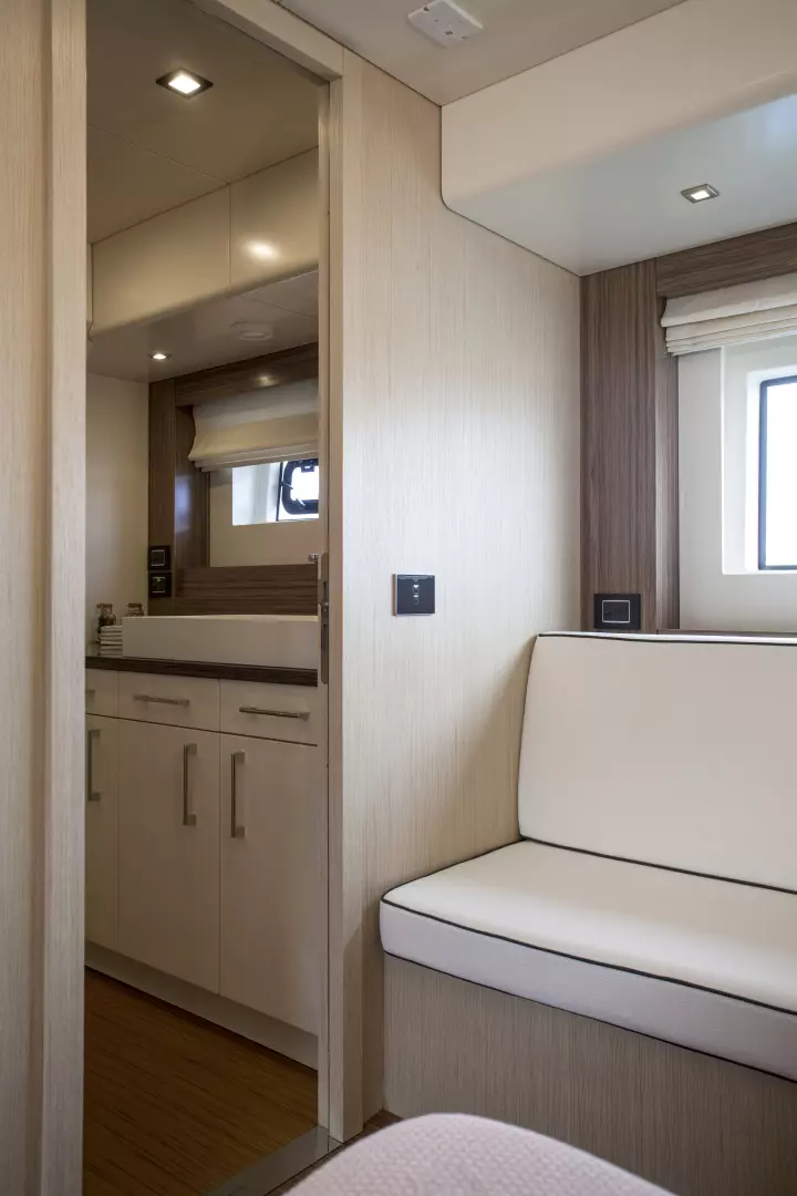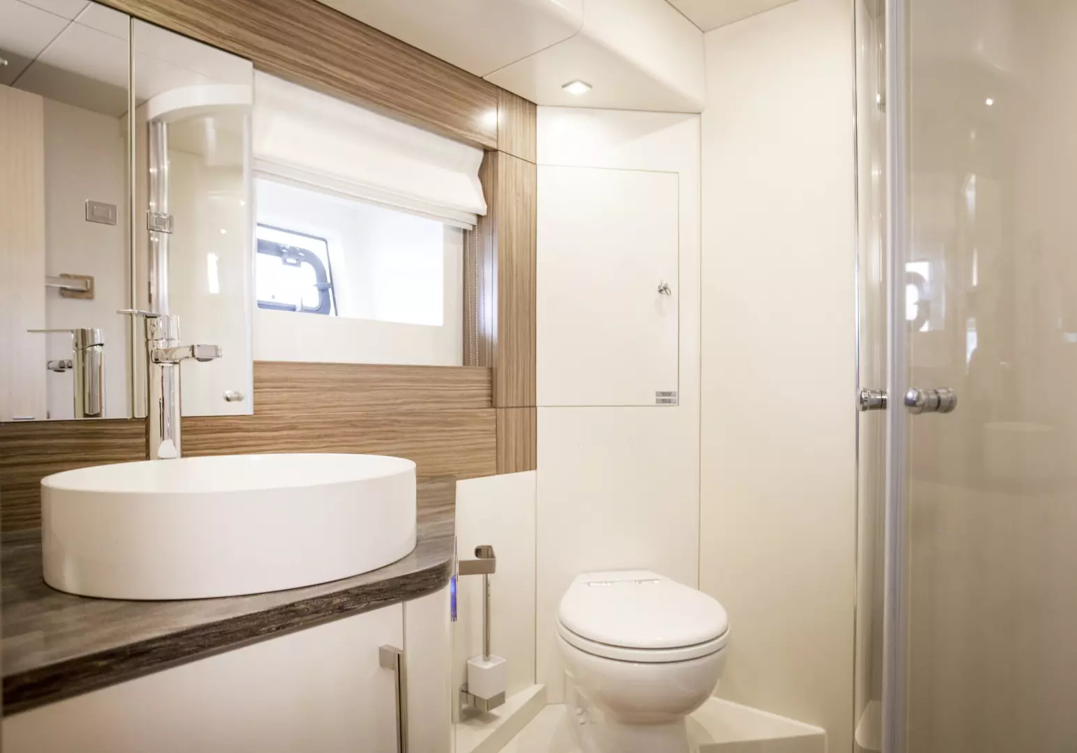 SIRENA 58 benefits from the development of its efficient hull underbody, and having the best performance at a wide range of Froude numbers, from displacement mode up to planning condition.