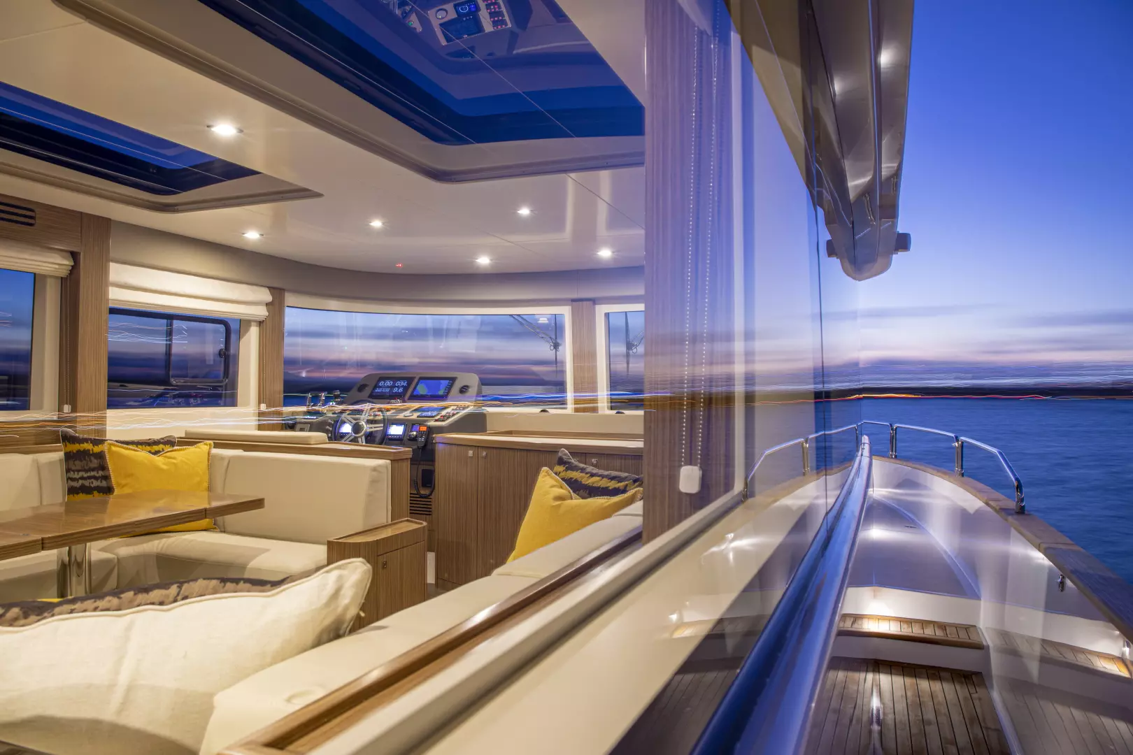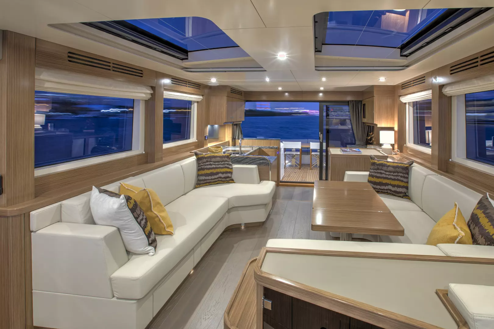 The timeless interior of the Sirena 58 is designed by Tommaso Spadolini of Design Studio Spadolini and offers spaces equally suited to the intimate gathering of family and entertaining larger groups of friends.
