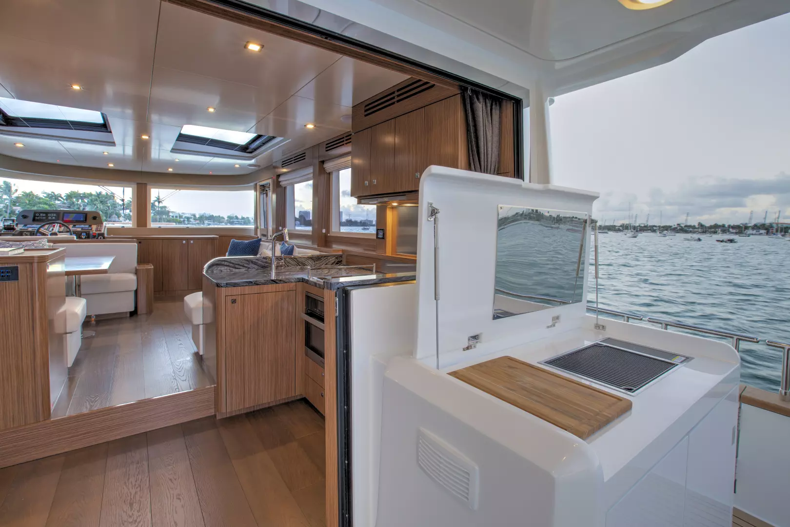 A seakindly hull with a slippery underbody allows for efficient travel at a range of speeds, including a top end approaching 30 knots with optional power. At the same time, seakeeping and bluewater passages come into play with a displacement speed cruise that offers a generous cruising range. A comfortable layout with welcoming accommodations rounds out the onboard experience.