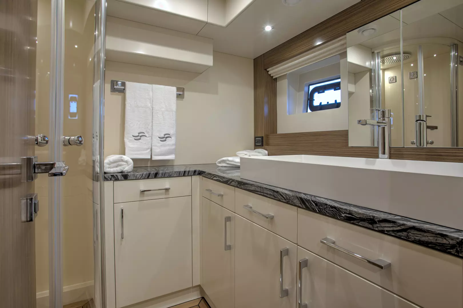 Hot and cold water in all head rooms, galley, cockpit, flybridge sink and fly shower