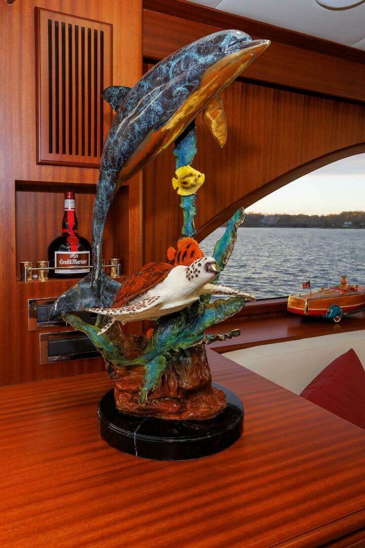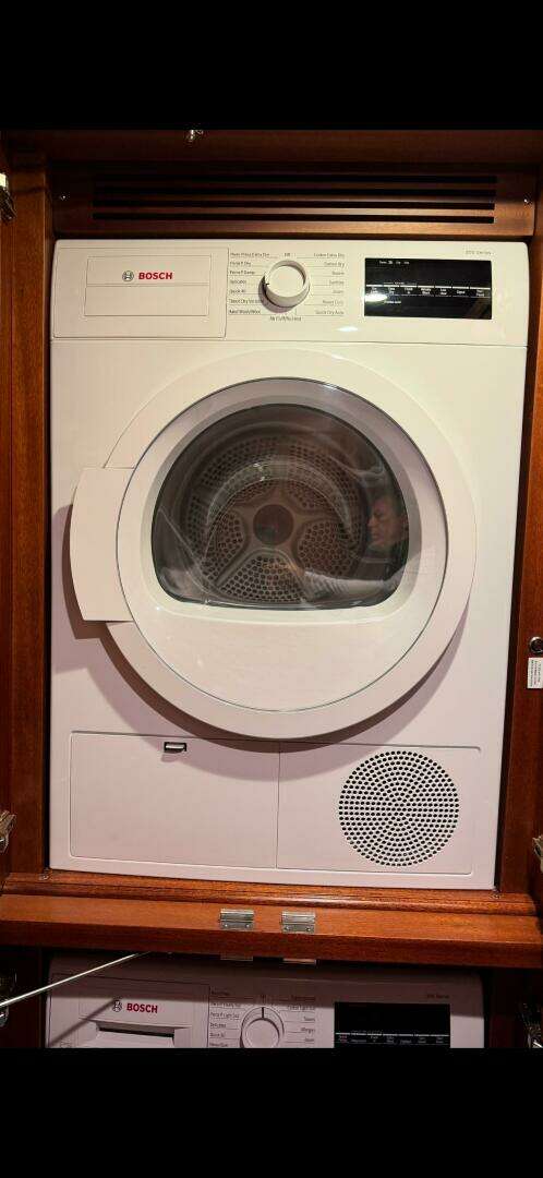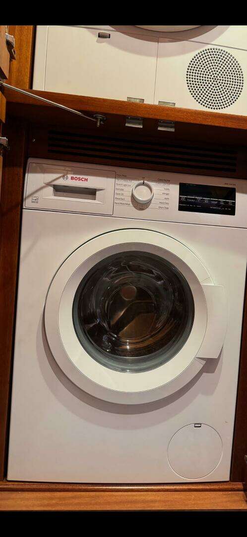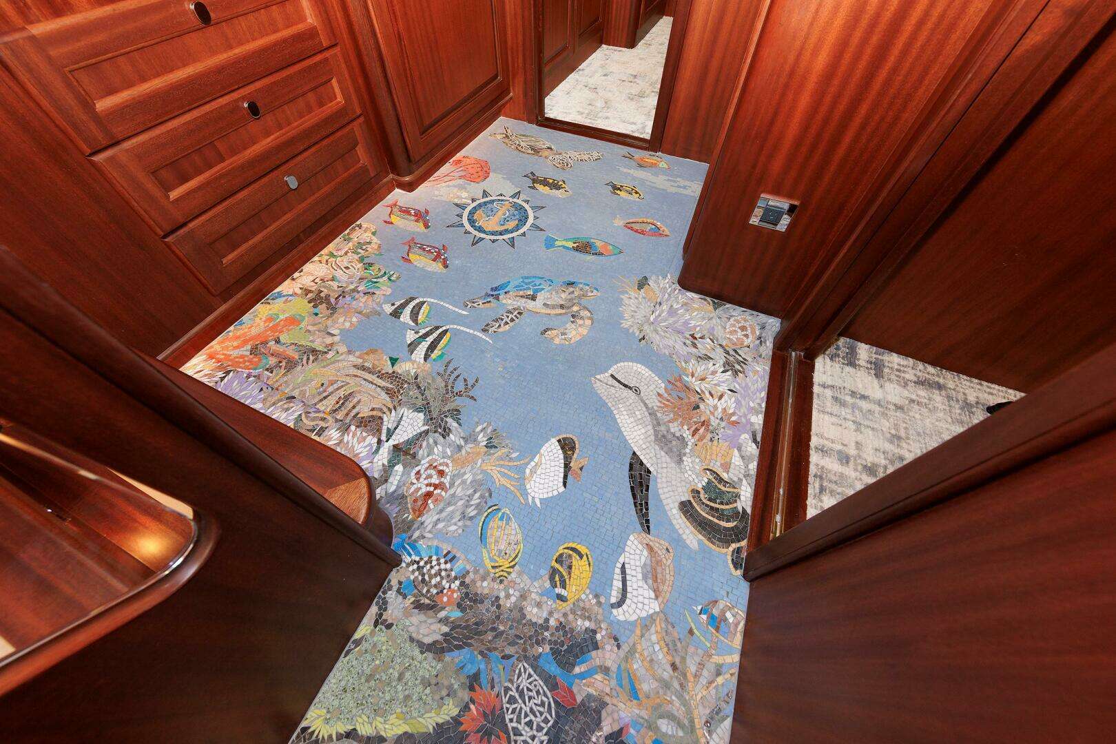 A unique design feature on MONA LISA is her lower deck configeration. A lower foyer, with the custom mosaic, provide the much needed storage often not found on this level as well as built-in separate Bosch washer and dryer units. The eye level electric panel is outboard of the staircase, making it much easier to access than other designs.