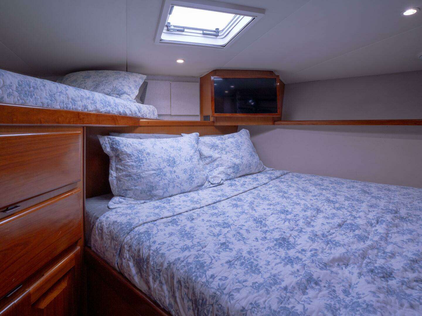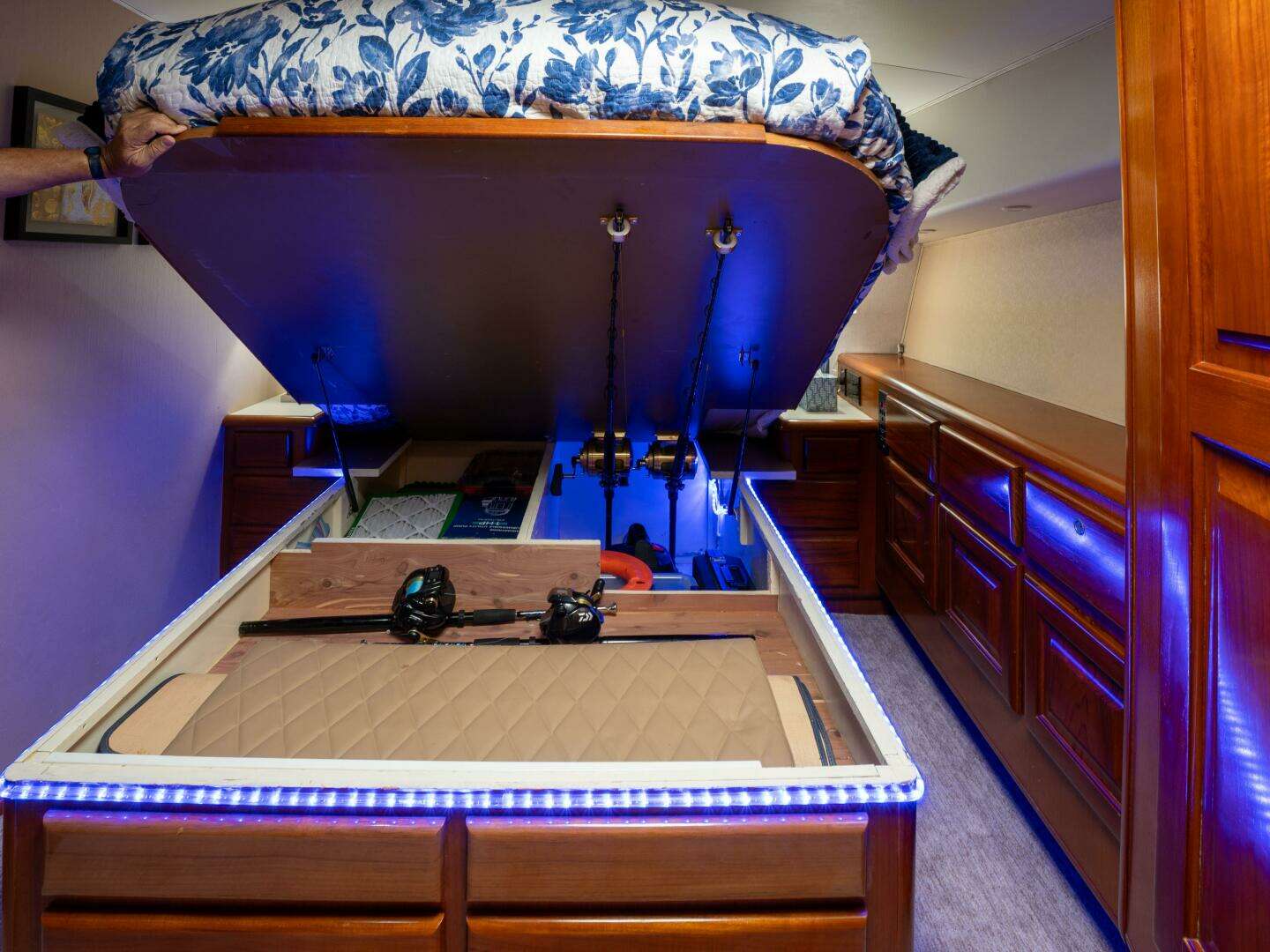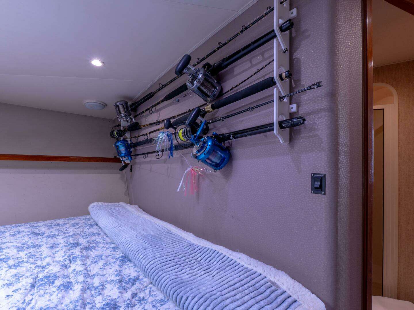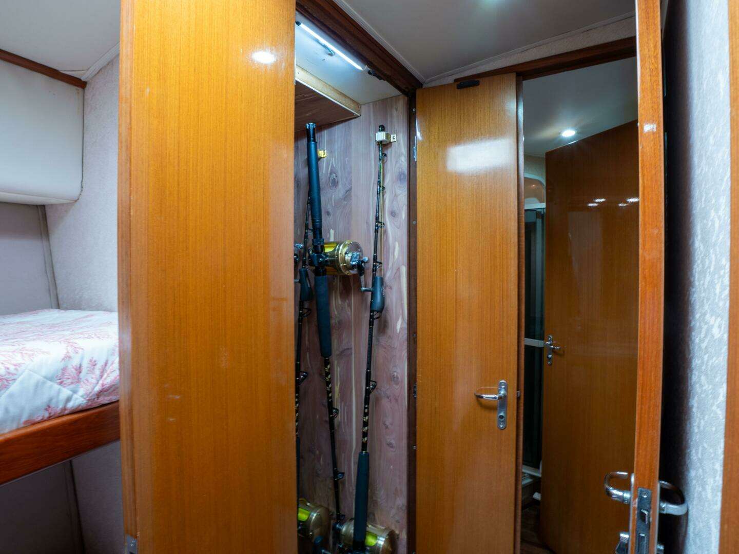 - Custom rod storage under master berth
