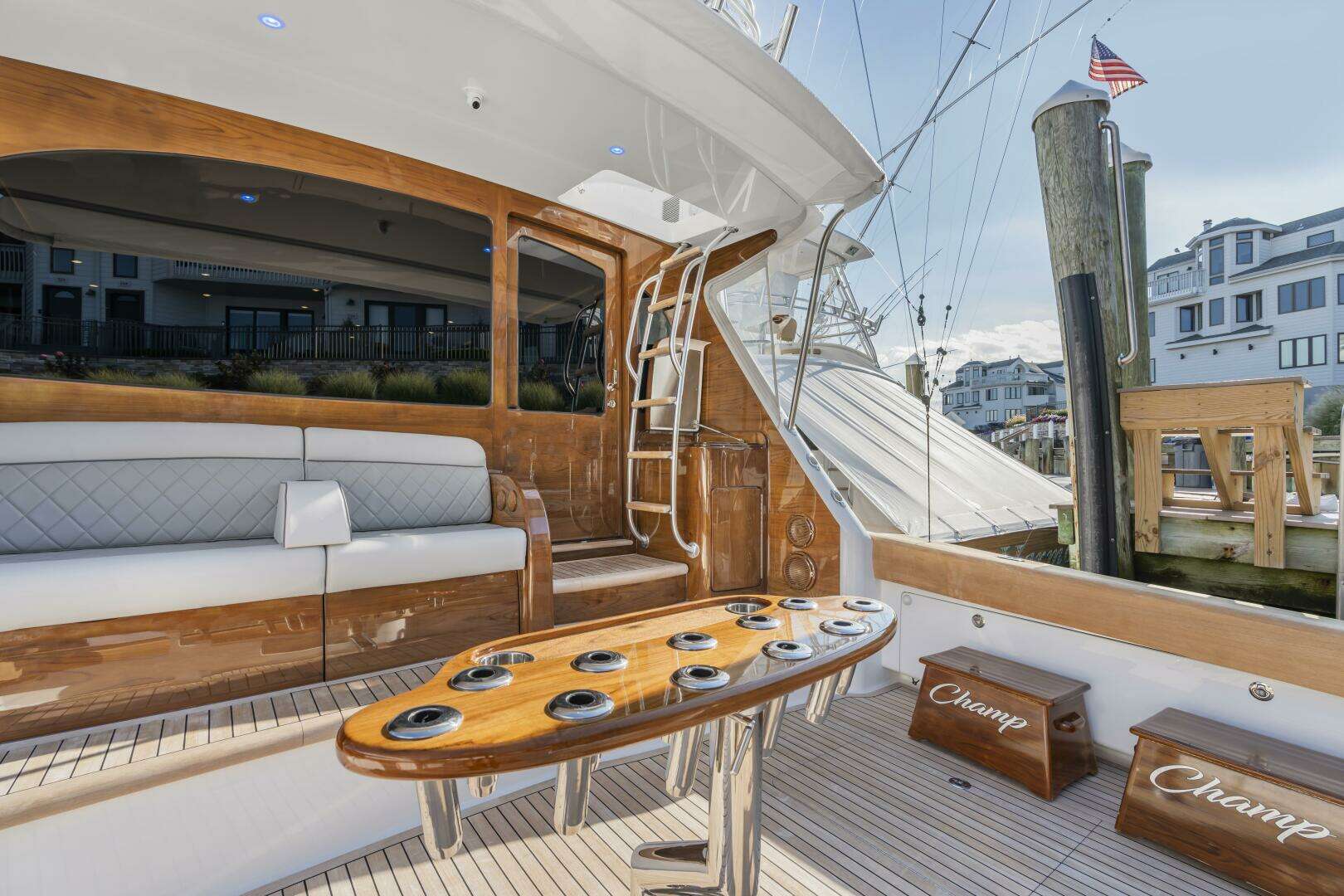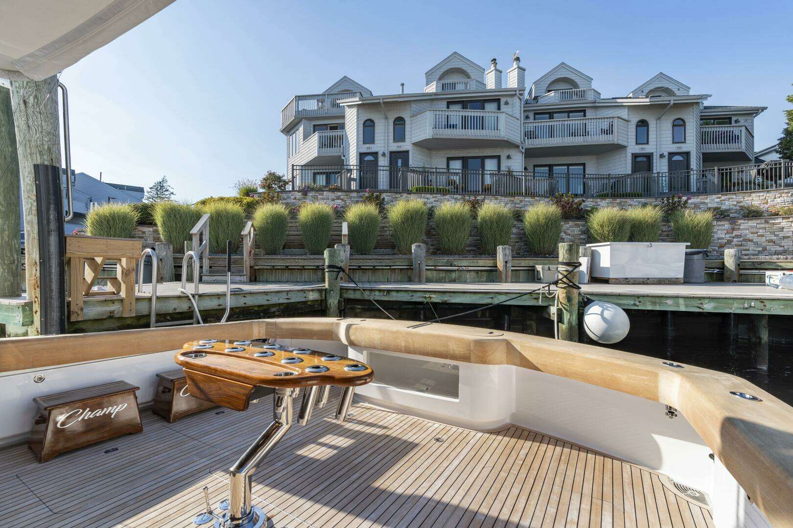 Step aboard "Champ" and experience the ultimate in outdoor luxury with its teak cockpit and mezzanine, faux teak bulkhead providing the perfect setting for entertaining guests or relaxing in style while enjoying the days fishing or dockside party.