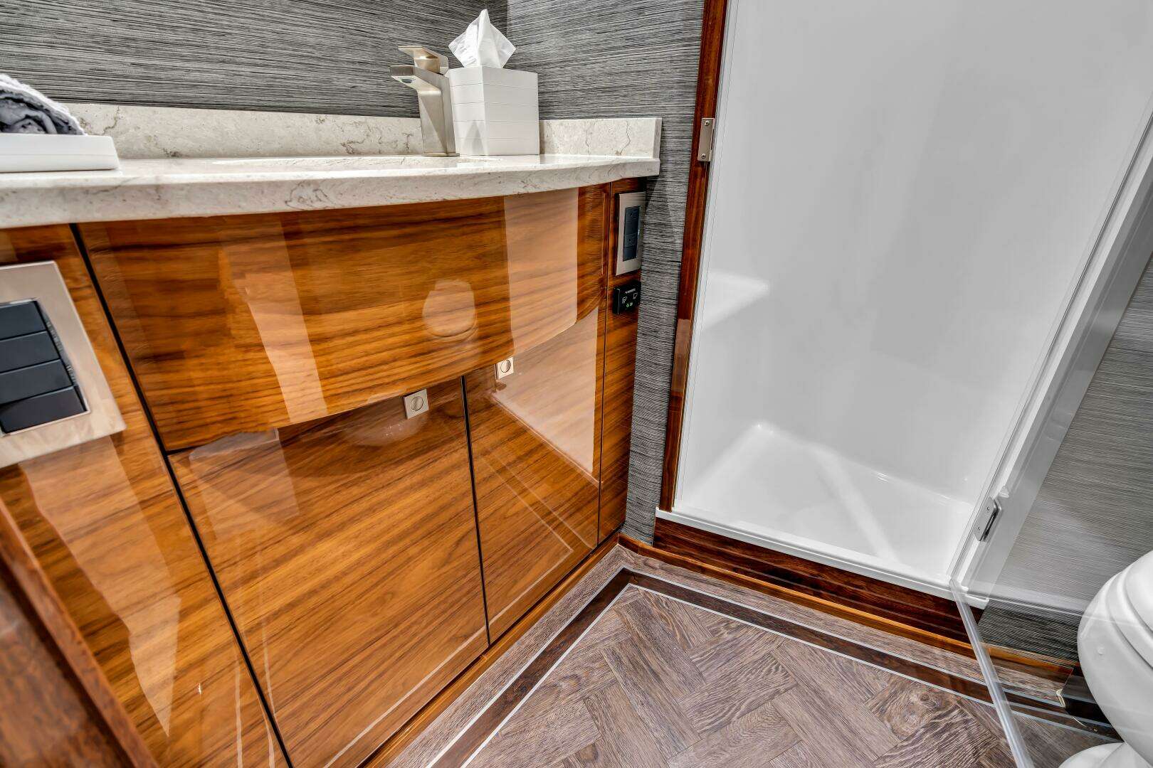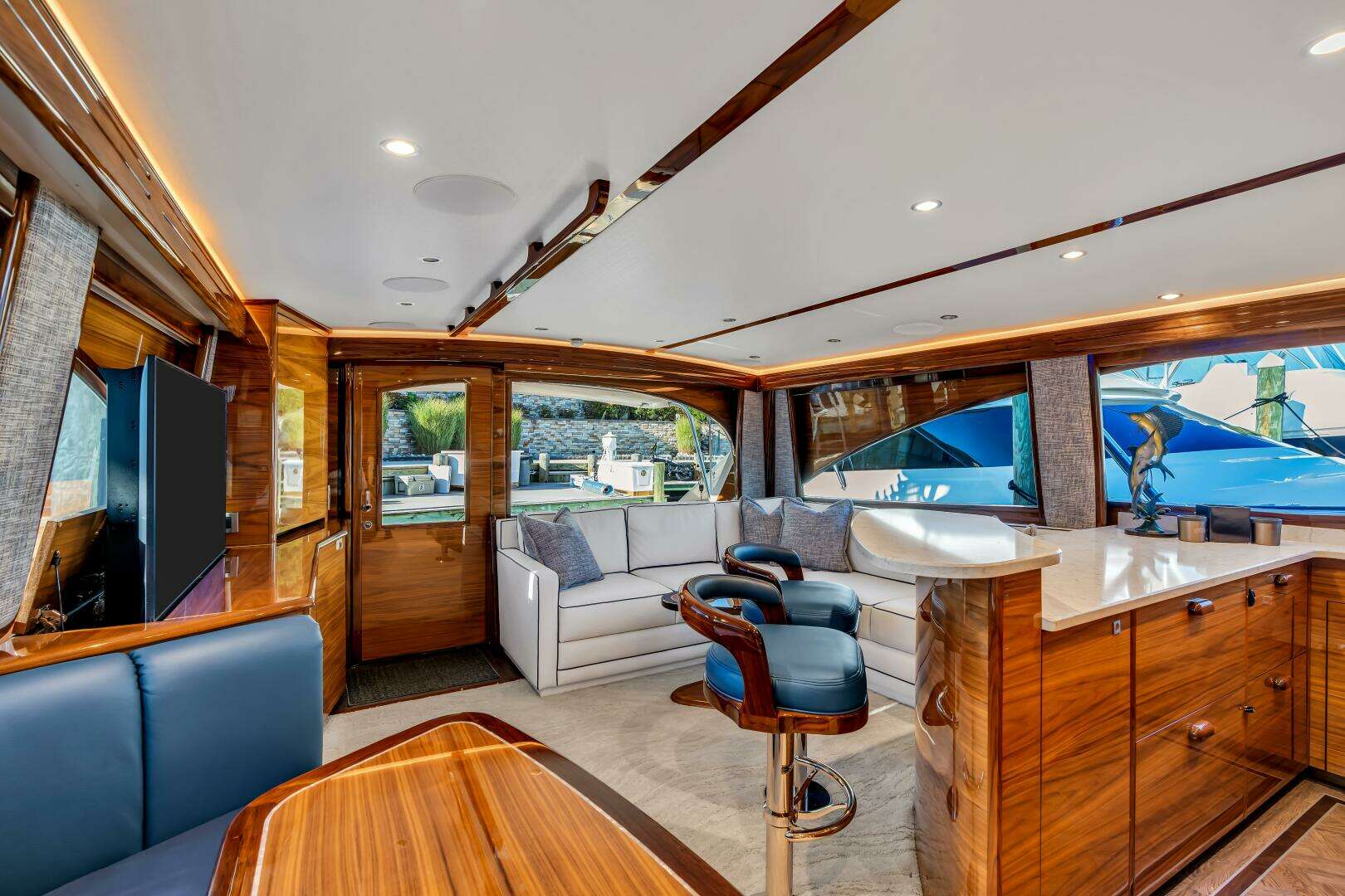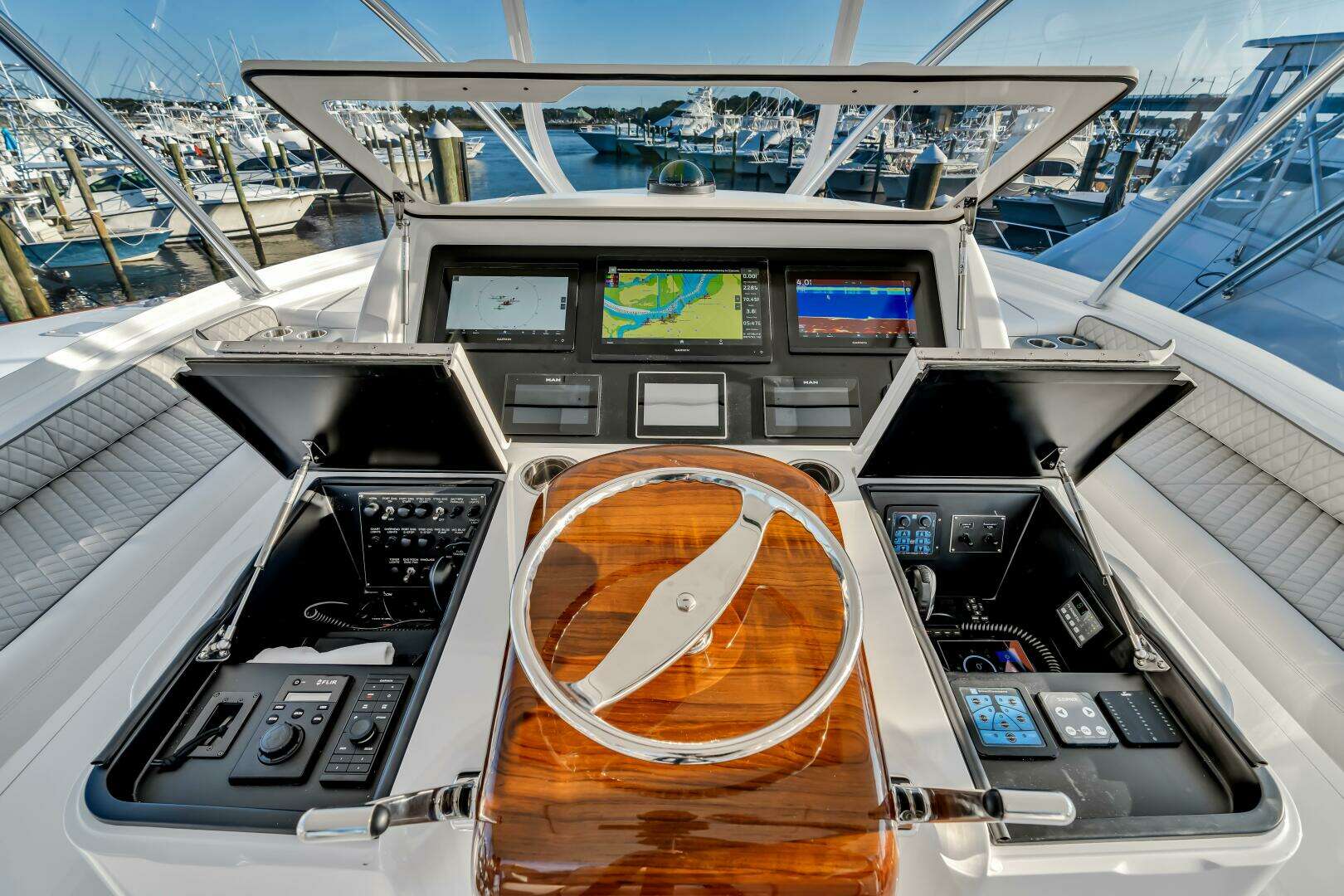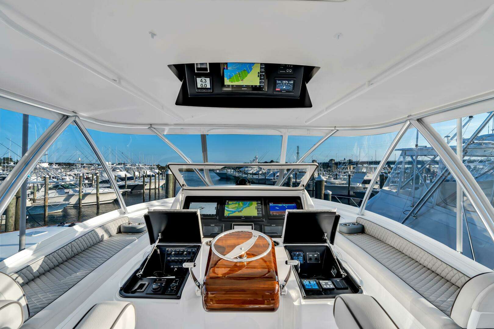 Featuring a custom electronics package from Atlantic Marine Electronics, including state-of-the-art navigation systems and communication equipment, offering cutting-edge technology at your fingertips, enhancing safety and convenience during every trip.