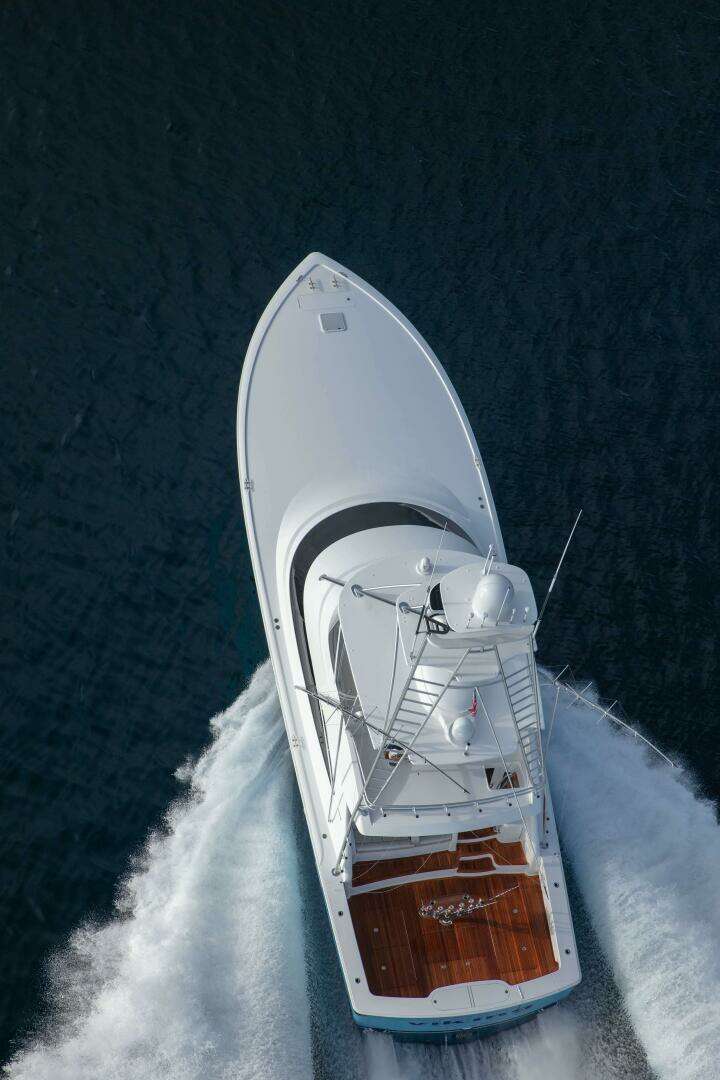 The performance of the new 58 C has been its most lauded attribute so far. The boat has exhibited an incredible ability to keep spray down, running clean with its molded strakes guiding the water to break just aft of the house windshield. These performance attributes are due, in part, to the aggressive positioning of the strakes as well as their downturned angle and radiused shape.