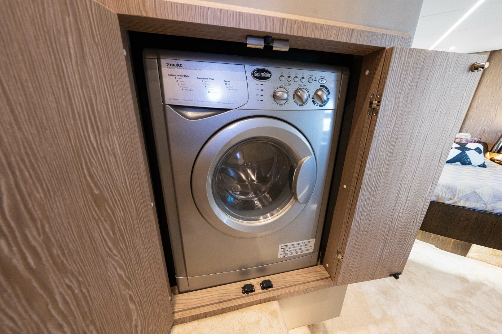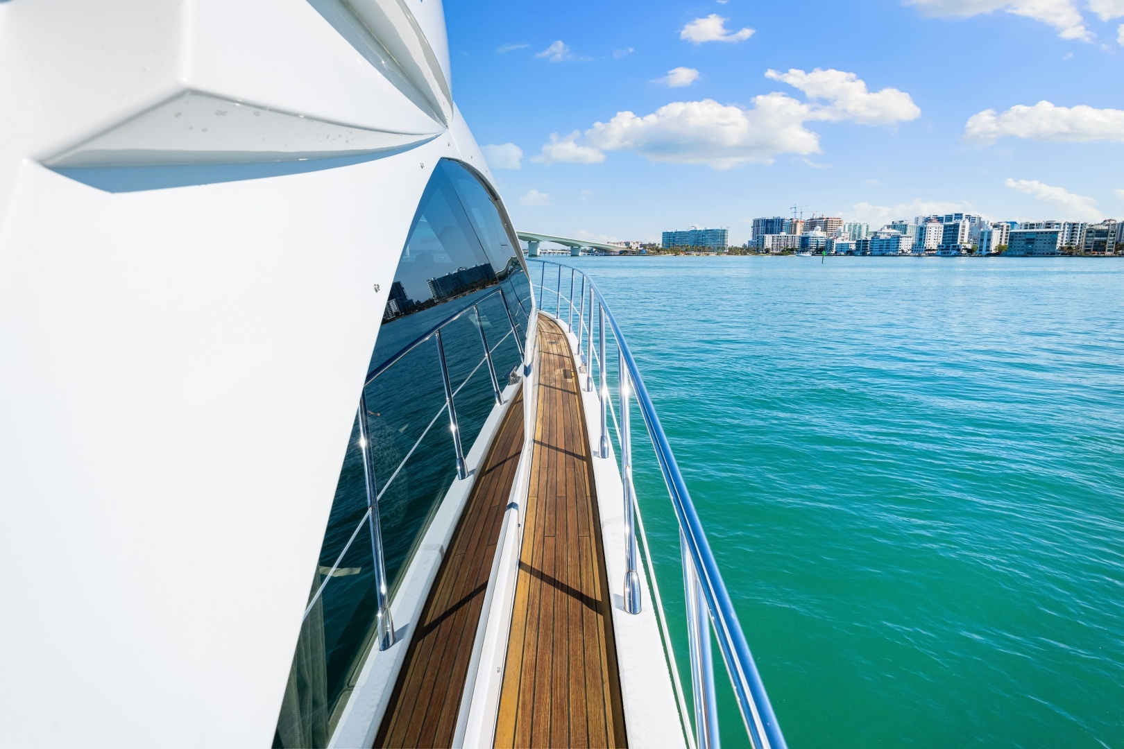 Miss Kym is loaded with many upgrades from the factory like a Sea Keeper Stabilizer, Bow Thruster, Washer/Dryer, Garage with AB Jet tender, Glass Panel in Skyroof, Teak on Side Decks, Telescopic Gangway, Underwater Lights, to name a few!