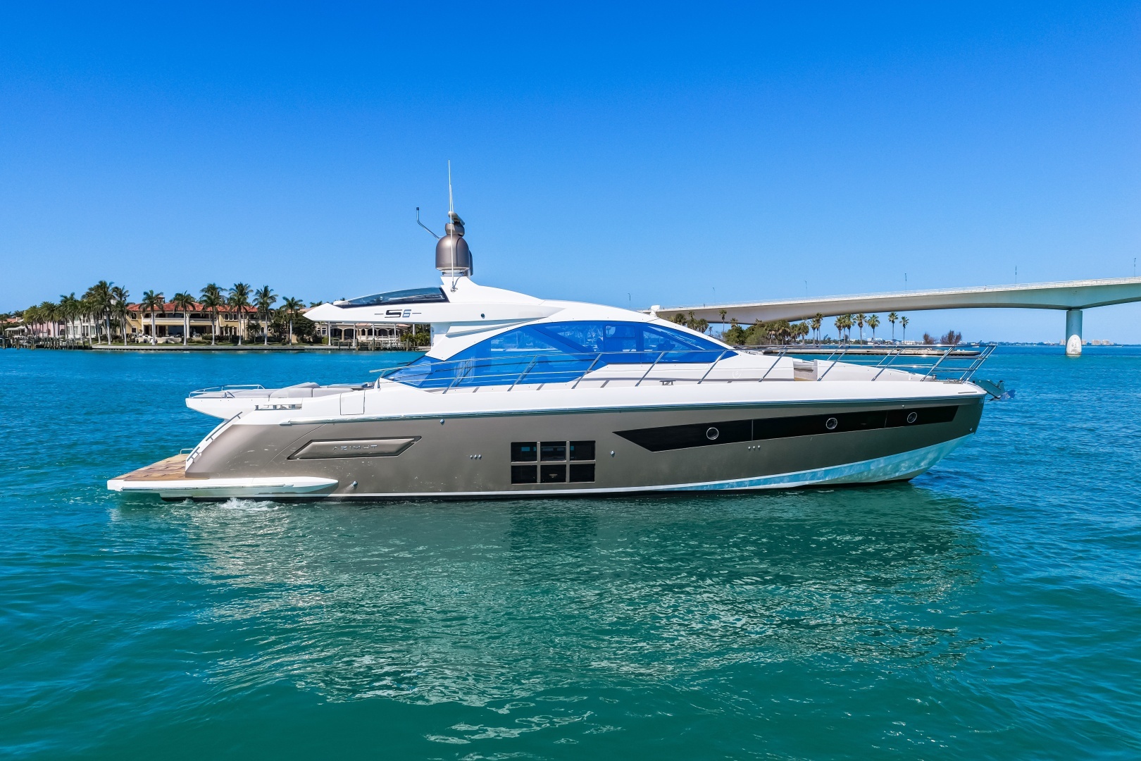 Miss Kym, an S6 59 foot Azimut Sport Motor Yacht is in impeccable condition. She captain maintained and completely turnkey with Sea Keep Gyro Stabilizer, Tender Garage, hydraulic Swim Platform to name a few options. Great Electronics! She is easy to see located at Marina Jack in Sarasota!