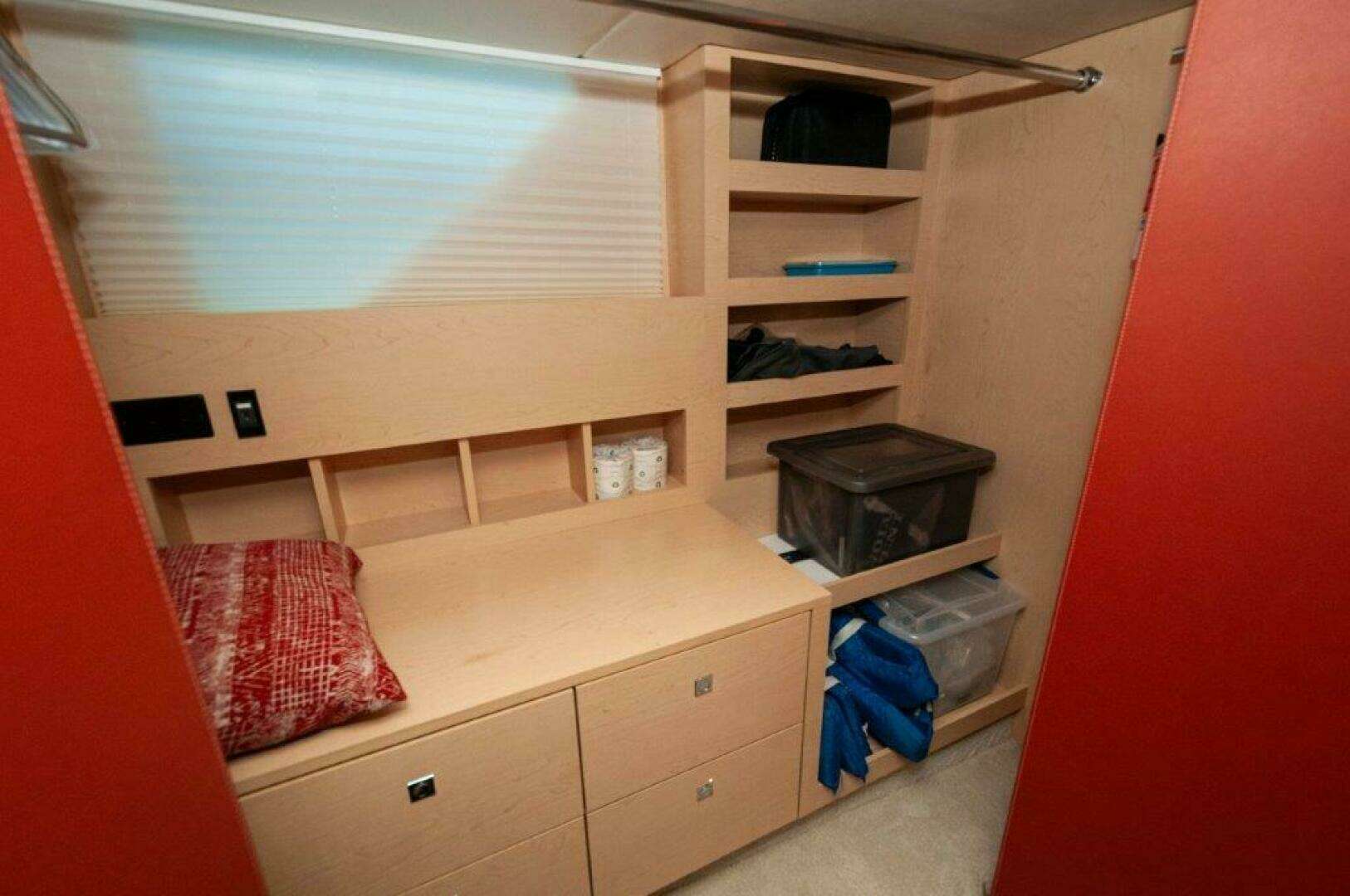 Below deck, the full-beam master stateroom offers a king-size bed with therapeutic foam mattress, walk-in closet, and an ensuite head with shower and his-and-hers sinks. Additional highlights include a Spot-Zero water system, 23 kW Onan generator with sound shield, and a clean, well-organized engine room. American-made and thoughtfully outfitted. "After Five" is a strong choice for buyers seeking performance, comfort, modern systems in a well maintained turnkey 60-foot yacht.