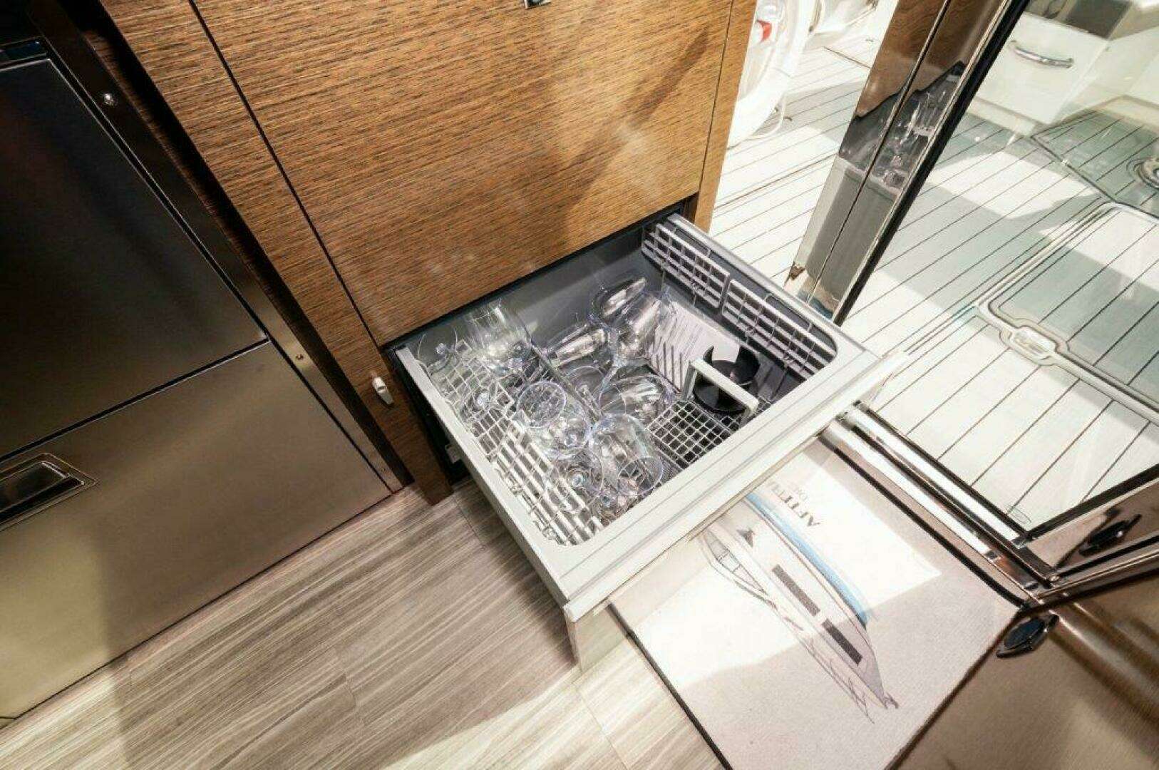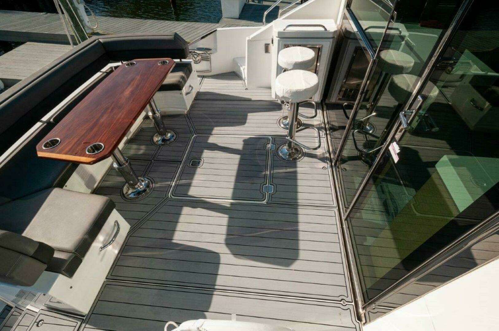 Powered by Volvo D11 IPS engines, "After Five" delivers strong performance along with joystick docking and Dynamic Positioning for stress-free handling. The glass cockpit features Garmin GPS and sonar, dual 17” Volvo displays, HD radar, autopilot, and VHF for confident navigation.