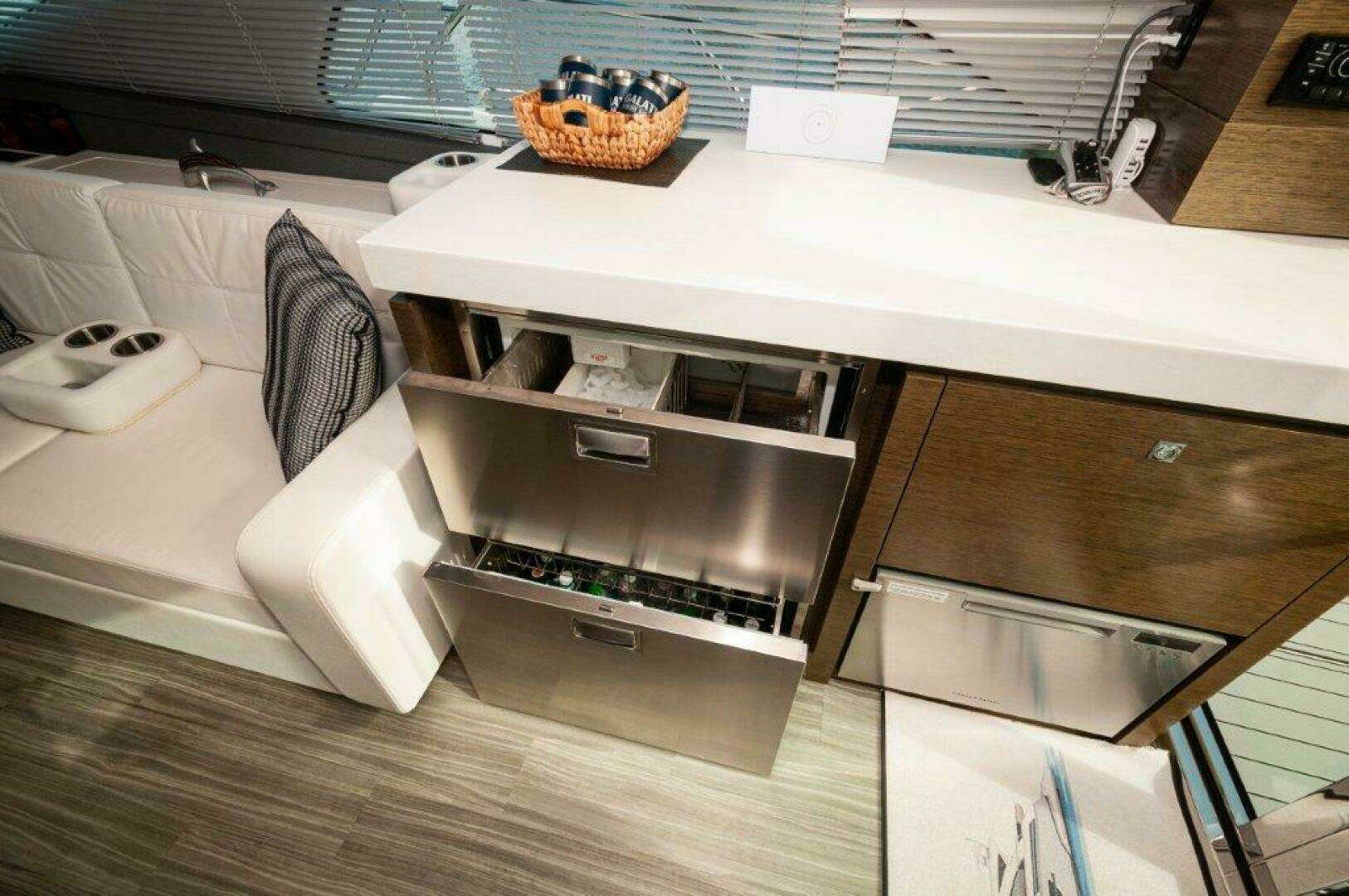This 2019 Cruisers Yachts 60 Cantius "After Five" is a clean, well-equipped express yacht designed for comfortable cruising and easy ownership. The painted hull gives her a sharp, modern look, while the retractable sunroof and large windows create a bright, open salon with plenty of space to relax or entertain. A Seakeeper stabilizer keeps the ride smooth and comfortable for short trips or extended cruising.