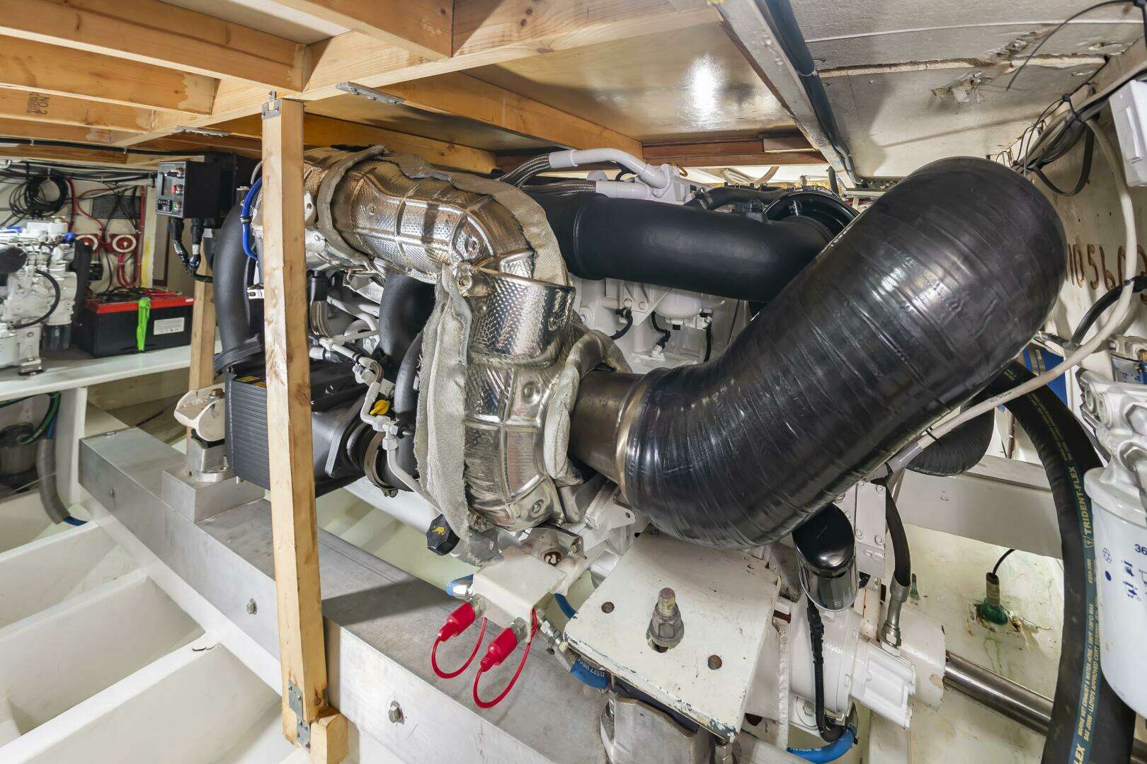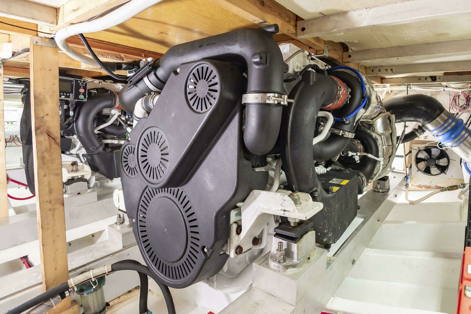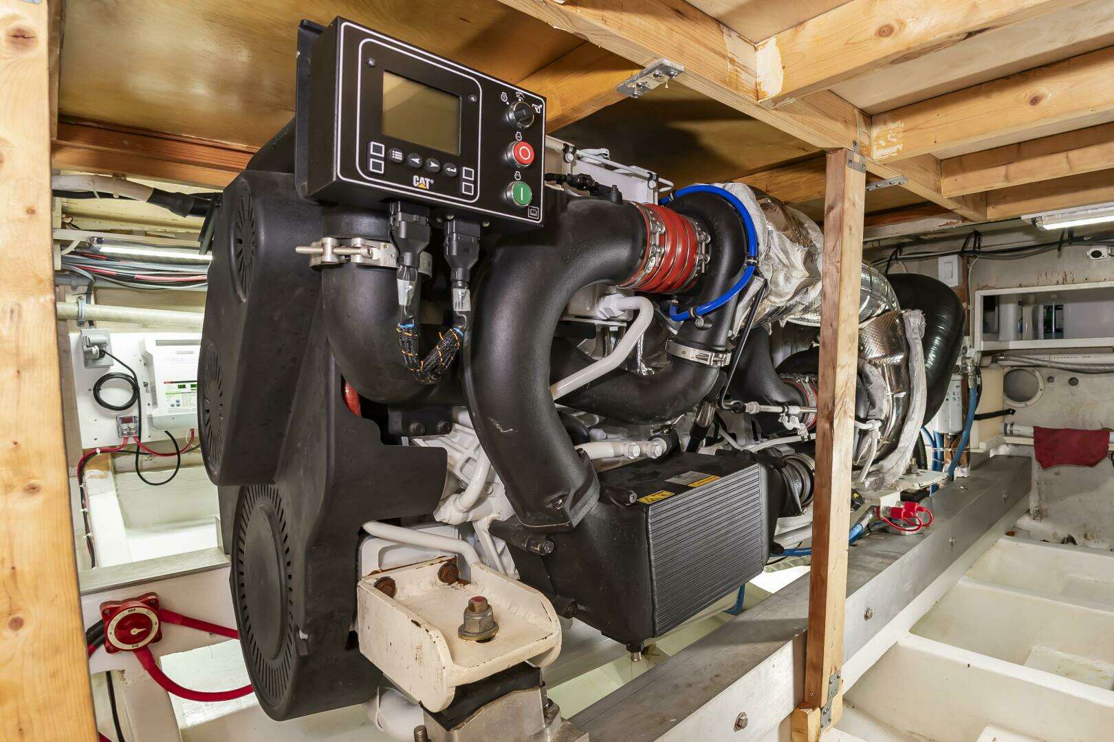 In 2022, she underwent a comprehensive mechanical refit that transformed her capabilities. Highlights include a conversion from a single engine to twin Caterpillar 12.9s producing 1,000 hp each, along with new transmissions, shafts, struts, rudders, and props. Additional upgrades include a new generator, new HVAC system, freshly repainted hull and topsides, new bridge-deck hardtop and frame, new fuel tanks, and much more.
