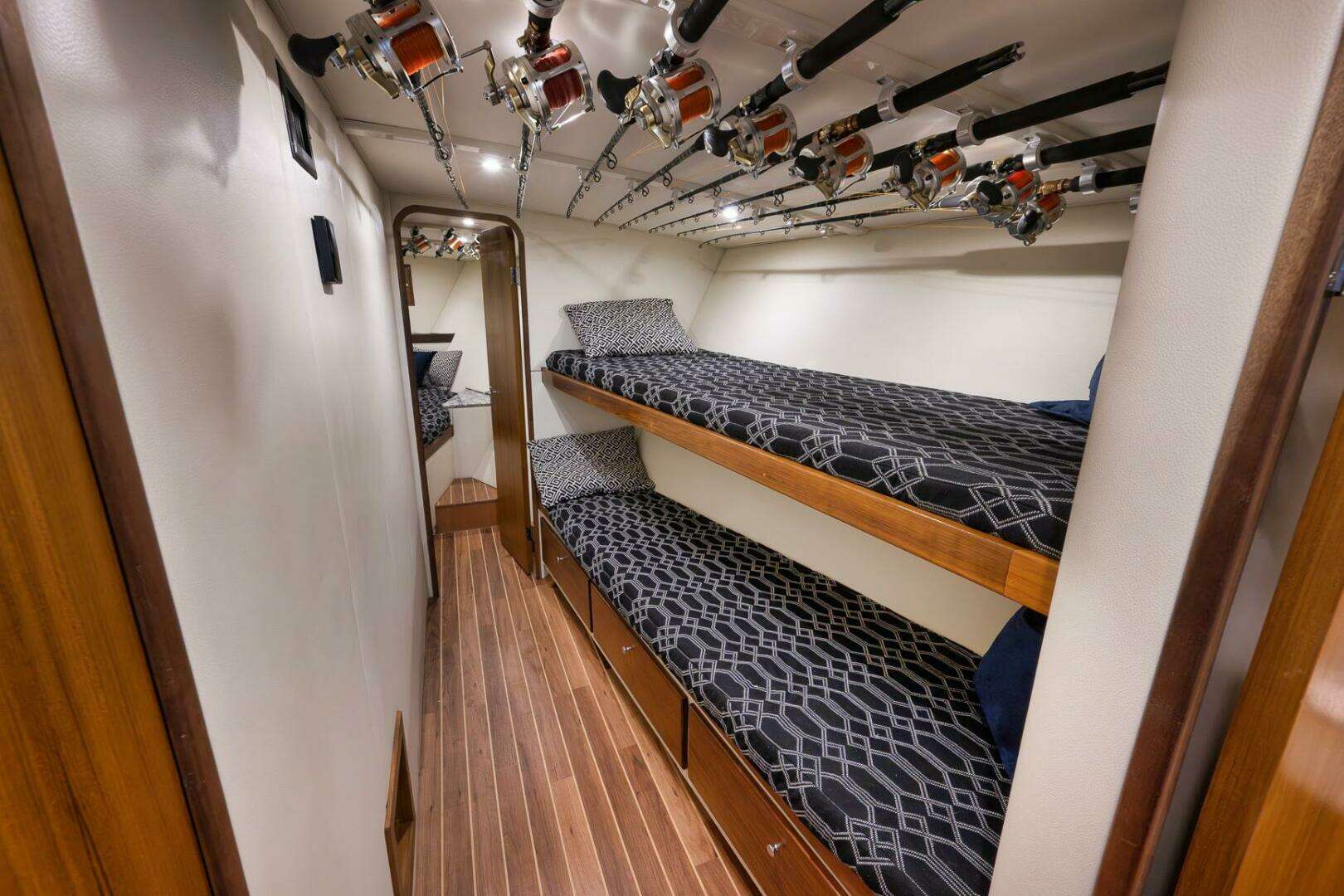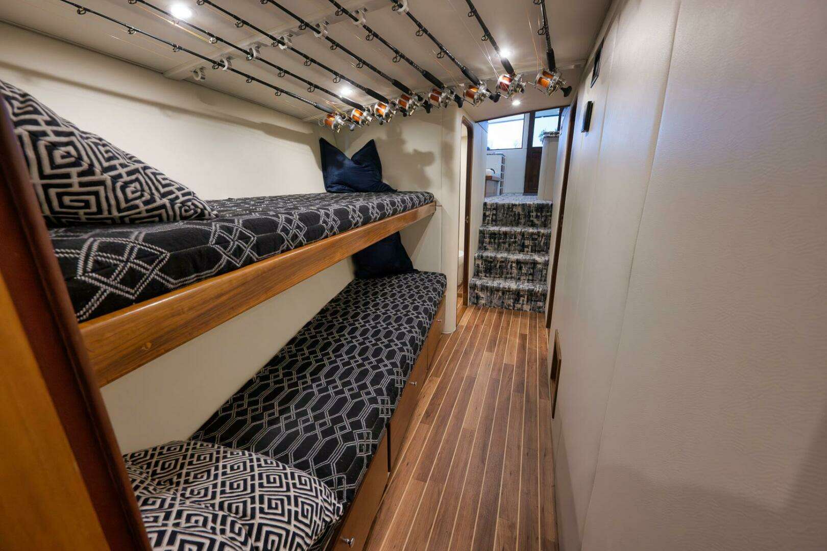 Two staterooms, two head layout with additional over/under crew berths. All new padded wall panels, headliner, upholstery, lighting, granite countertops, added custom cabinetry and under counter refrigeration.