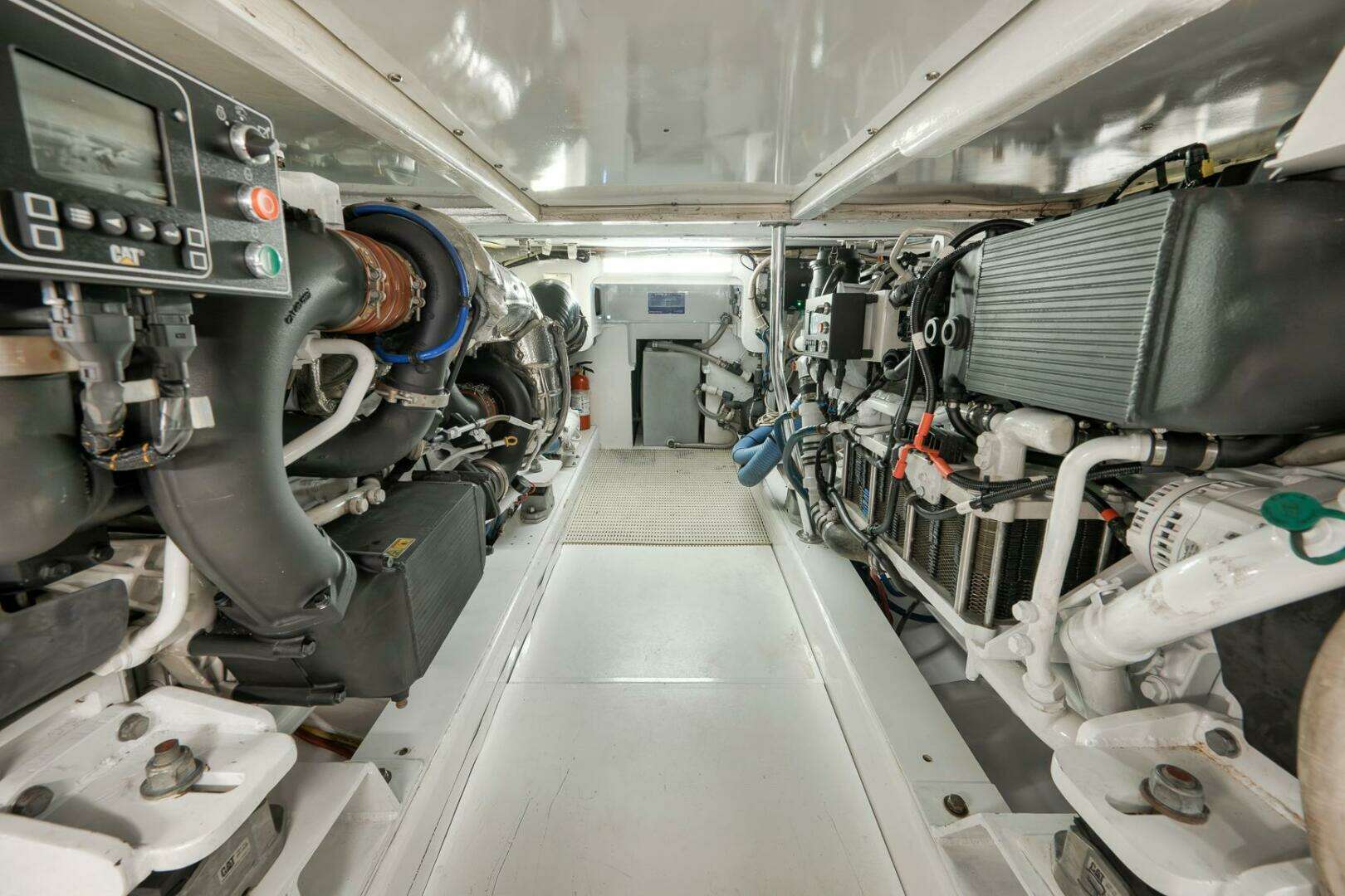 Twin CAT C12.9s at 850 HP have warranty and provide an economical 27 kt. cruise burning less than 60 GPH.
